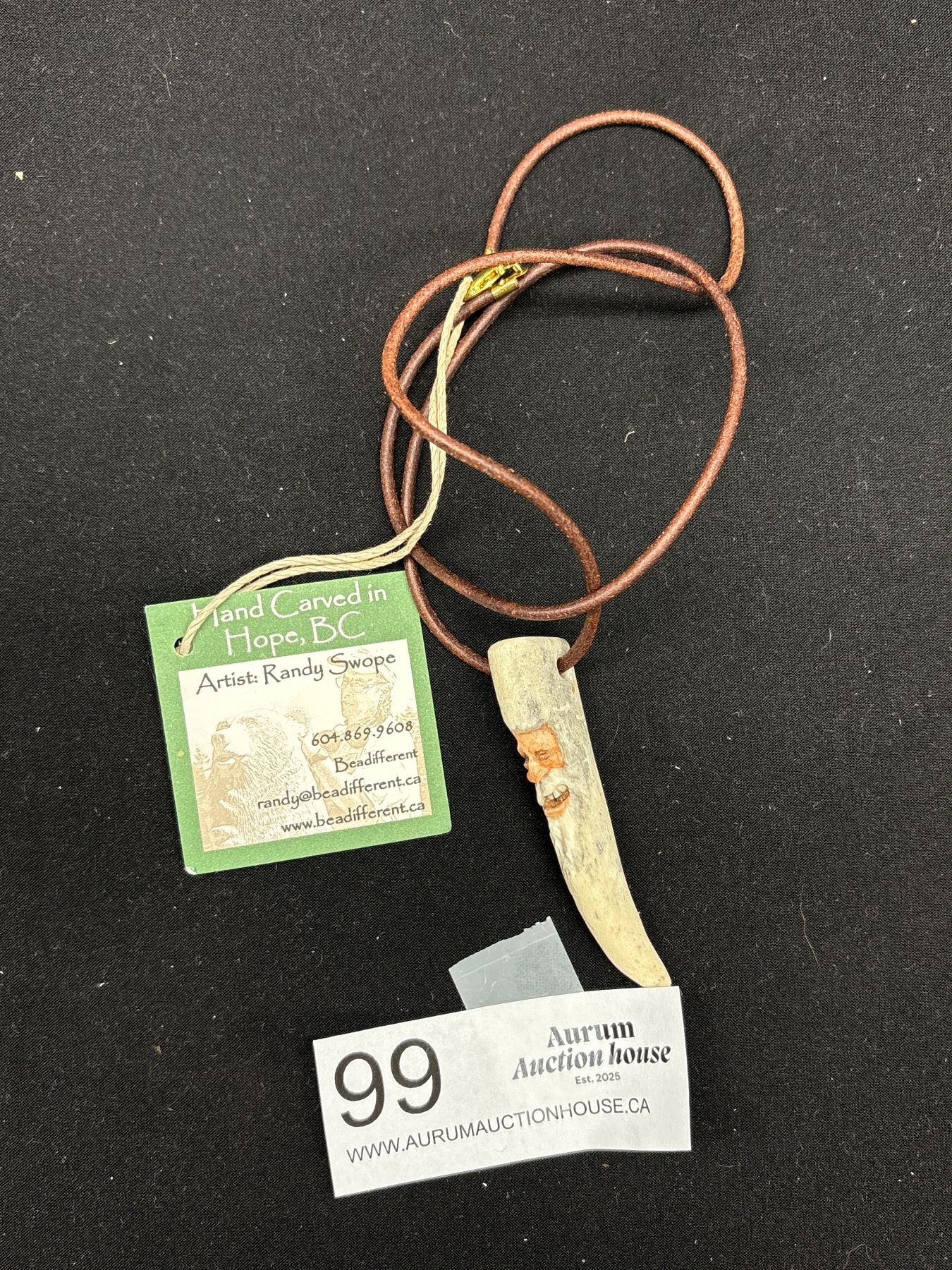 Vintage Hand Carved Antler Pendant - Artist Randy Swopes