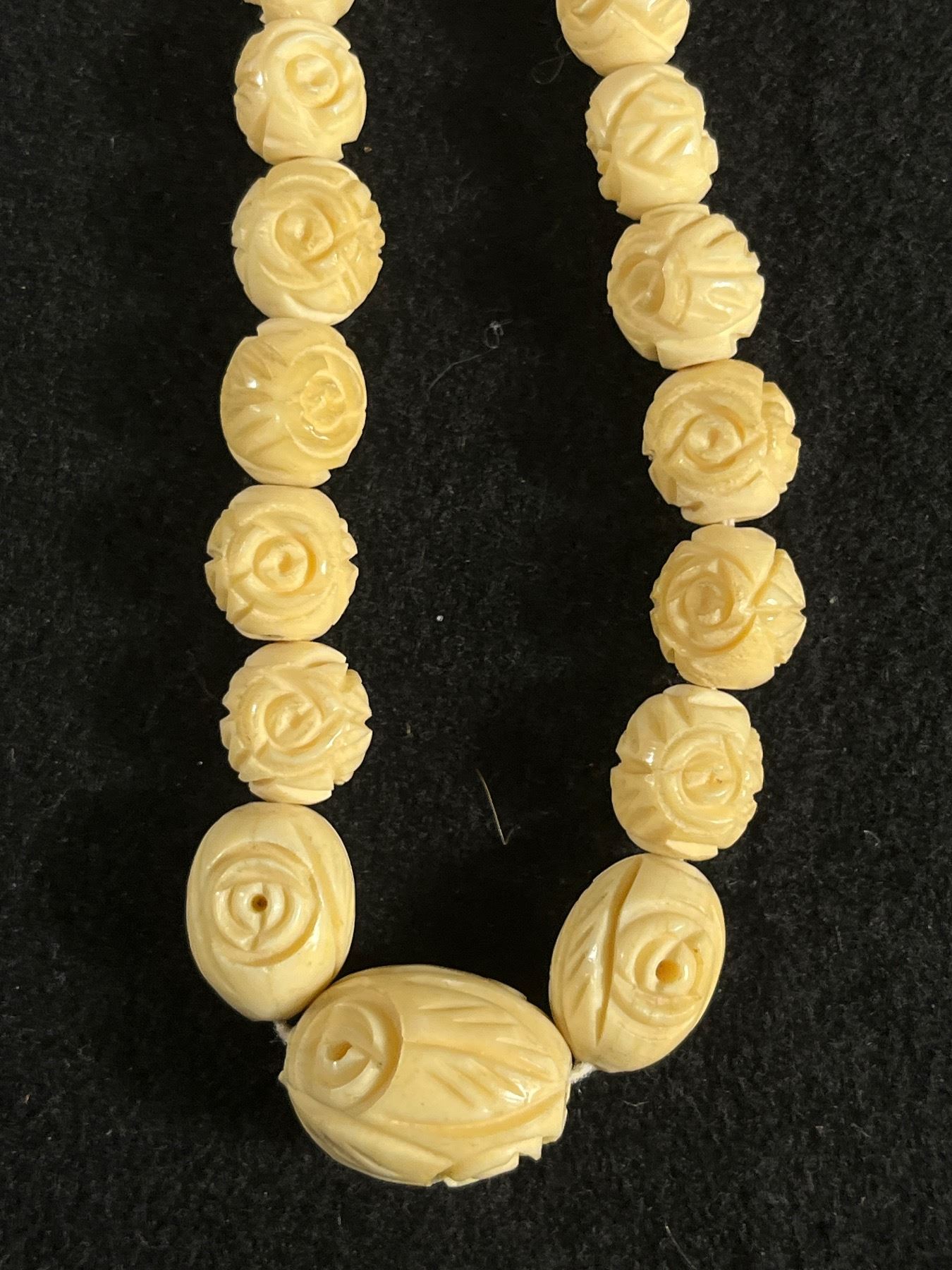 Vintage Hand Crafted Bone Beads Necklace. Graduated Extra Length