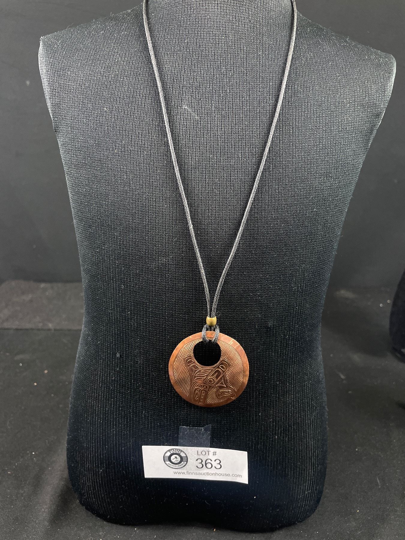 Vintage Hand Crafted Haida Copper Pendant with Black Cord Necklace