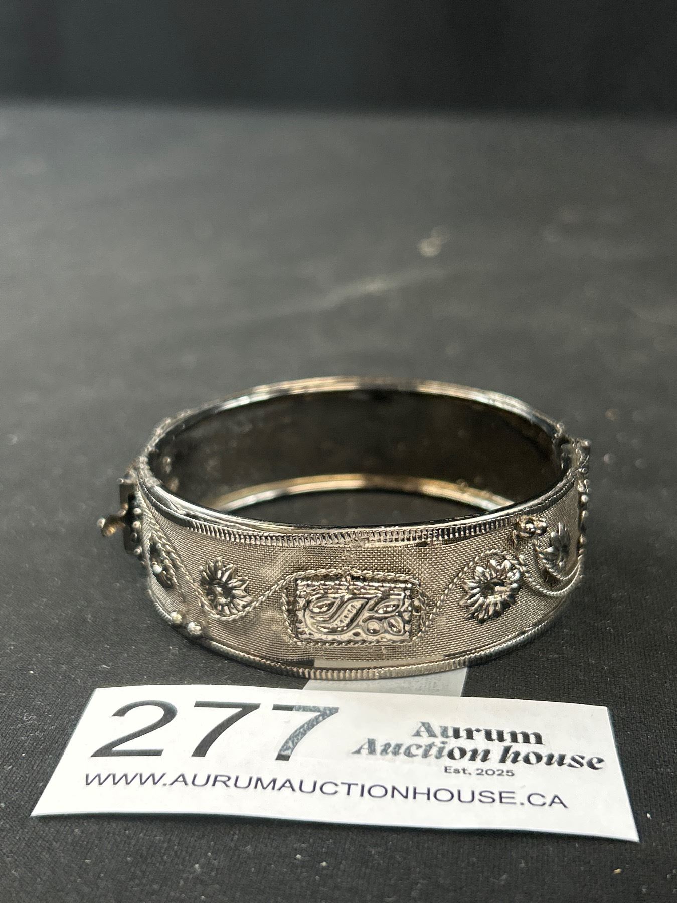 Vintage Hand Crafted Silver Bangle Hinged Original Patima
