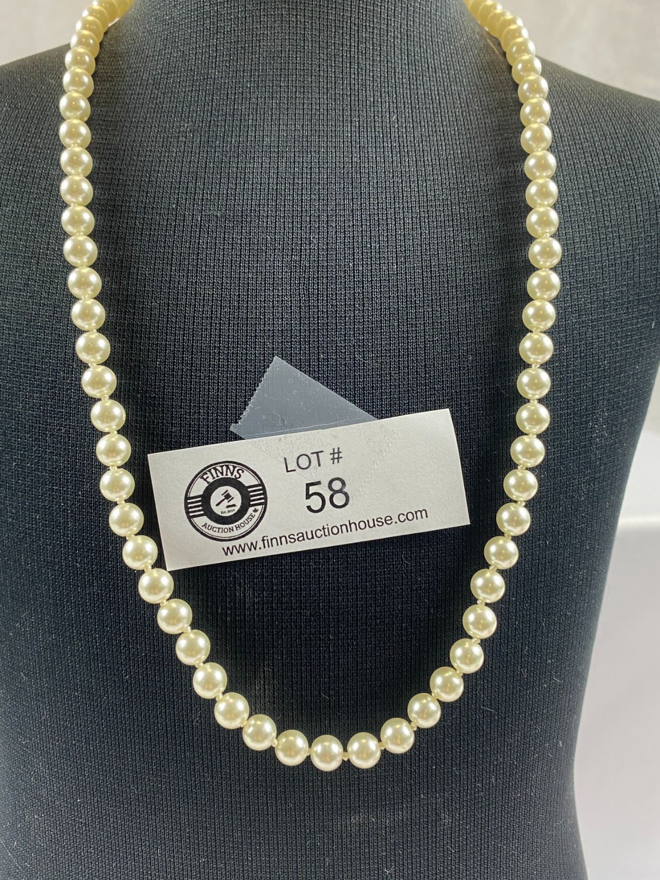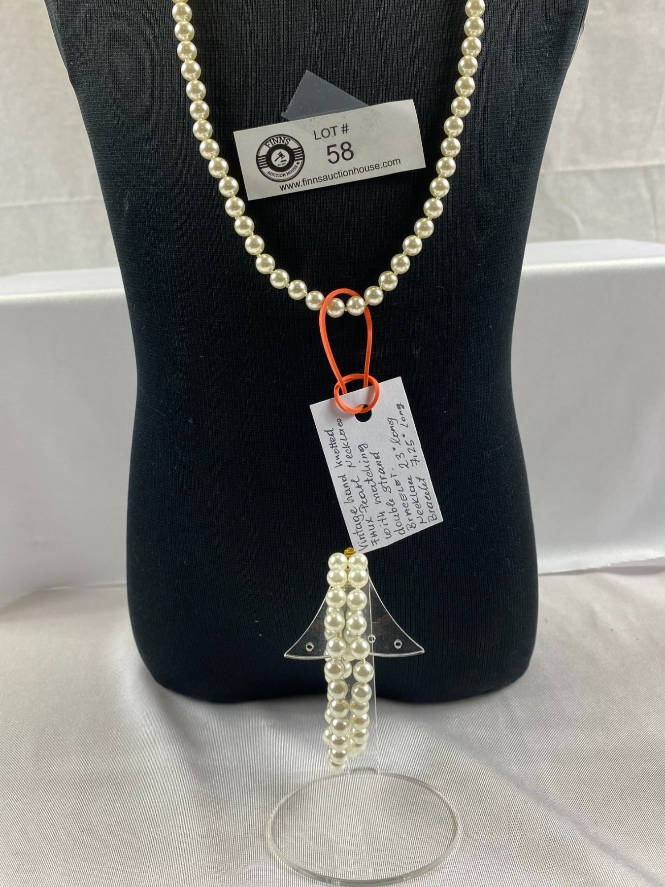 Vintage Hand Knotted Faux Pearl Necklace 23'' long with matching double strand bracelet 7.25''