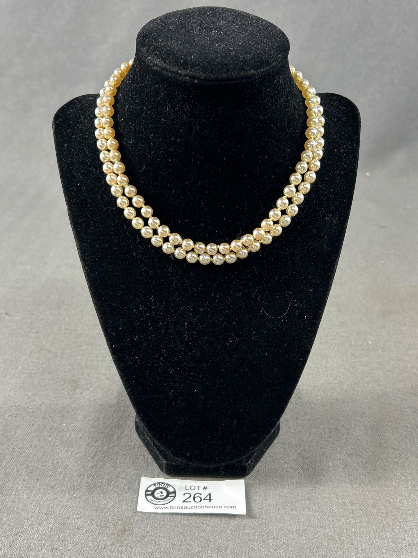 Vintage Hand Knotted Genuine Pearl Necklace with Original Clasp