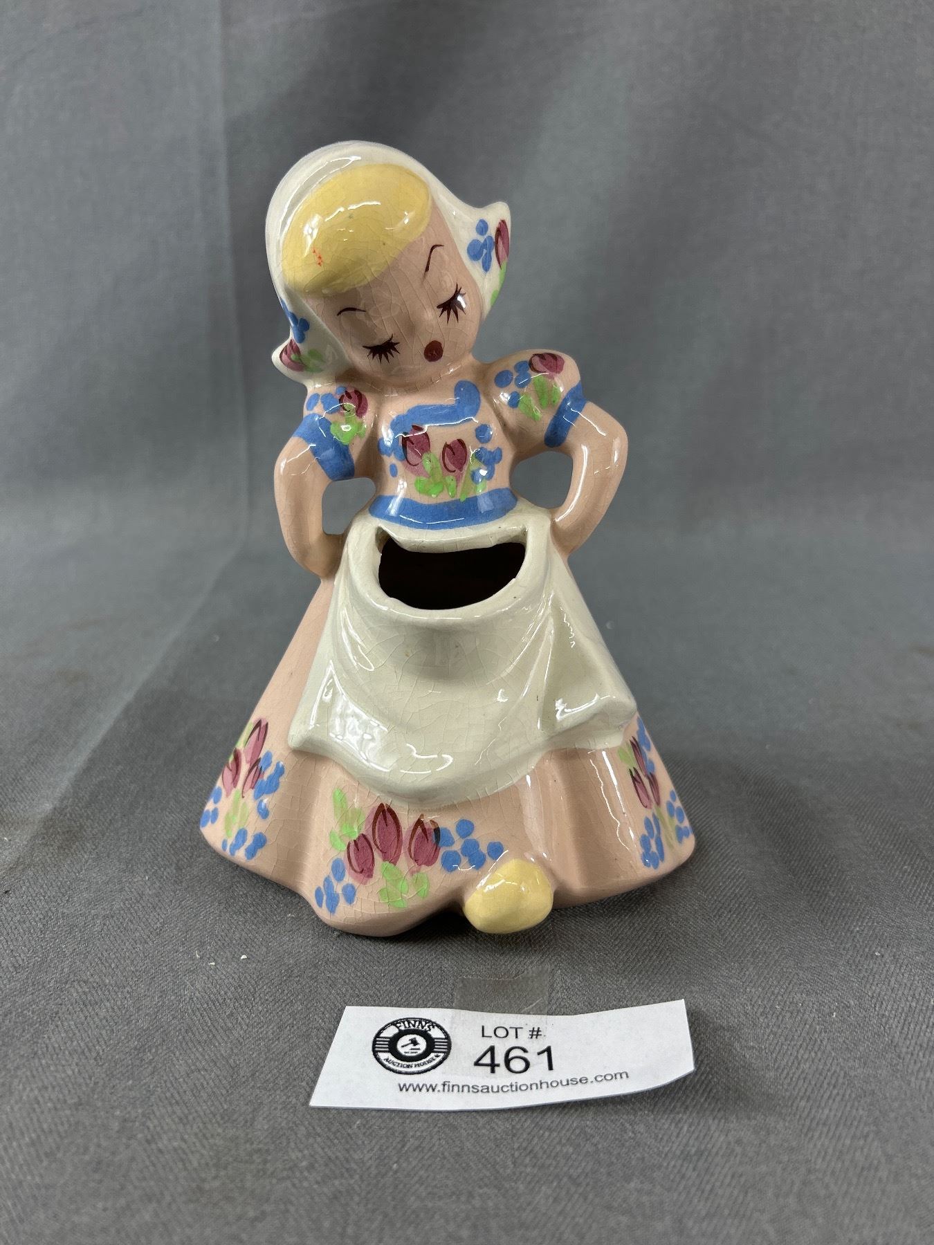 Vintage Hand Painted Dutch Women Planter, Porcleain DELEE ART