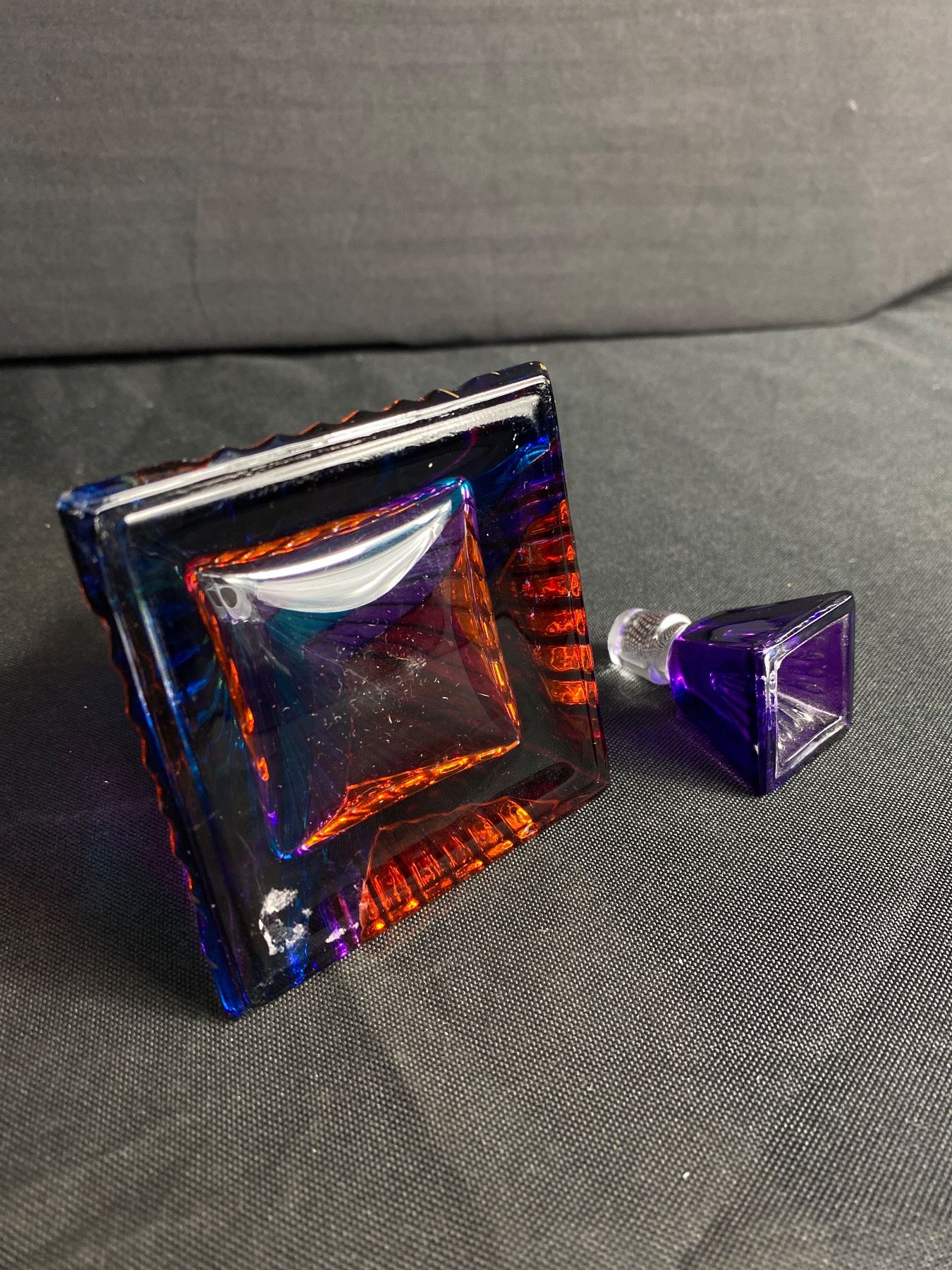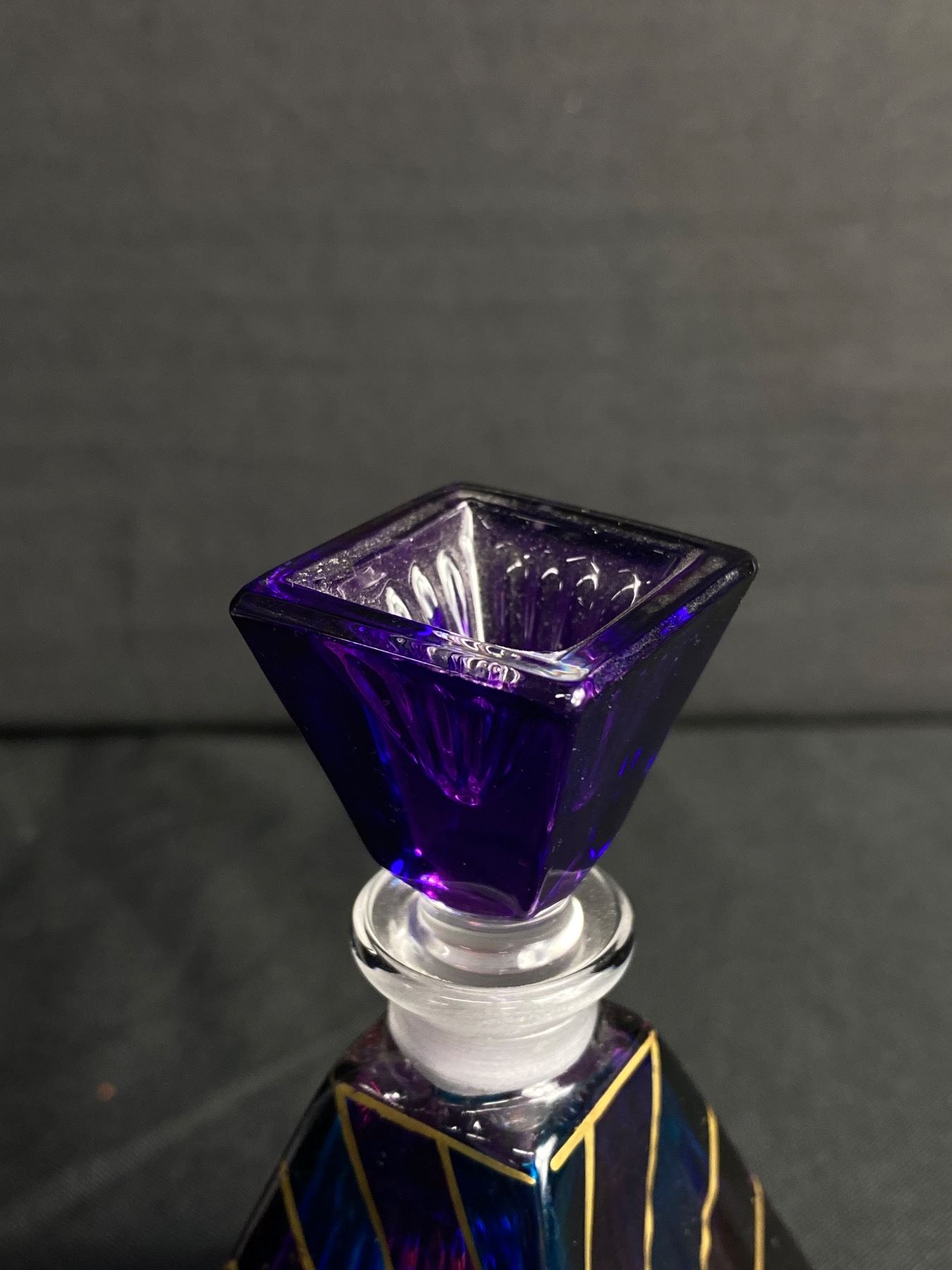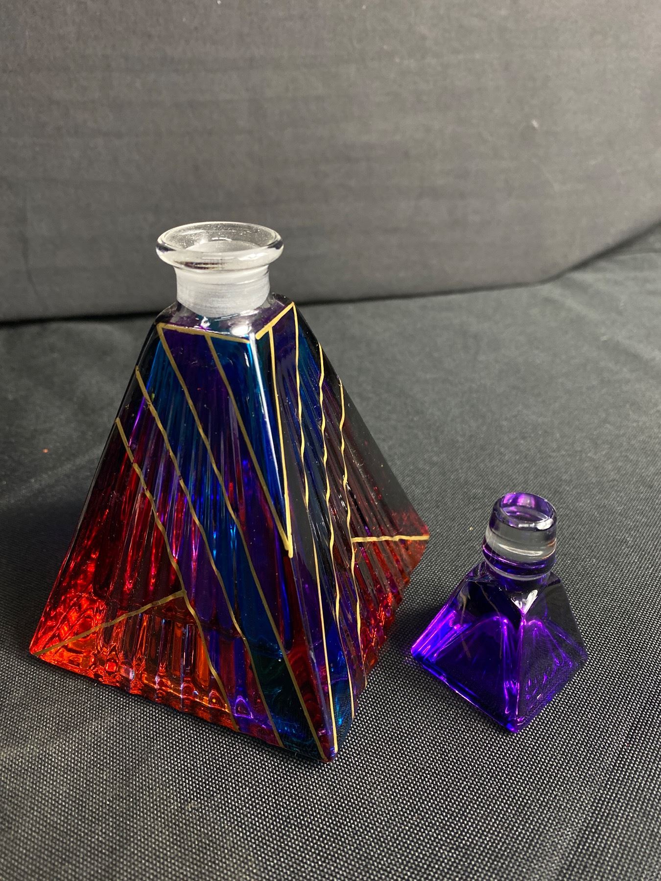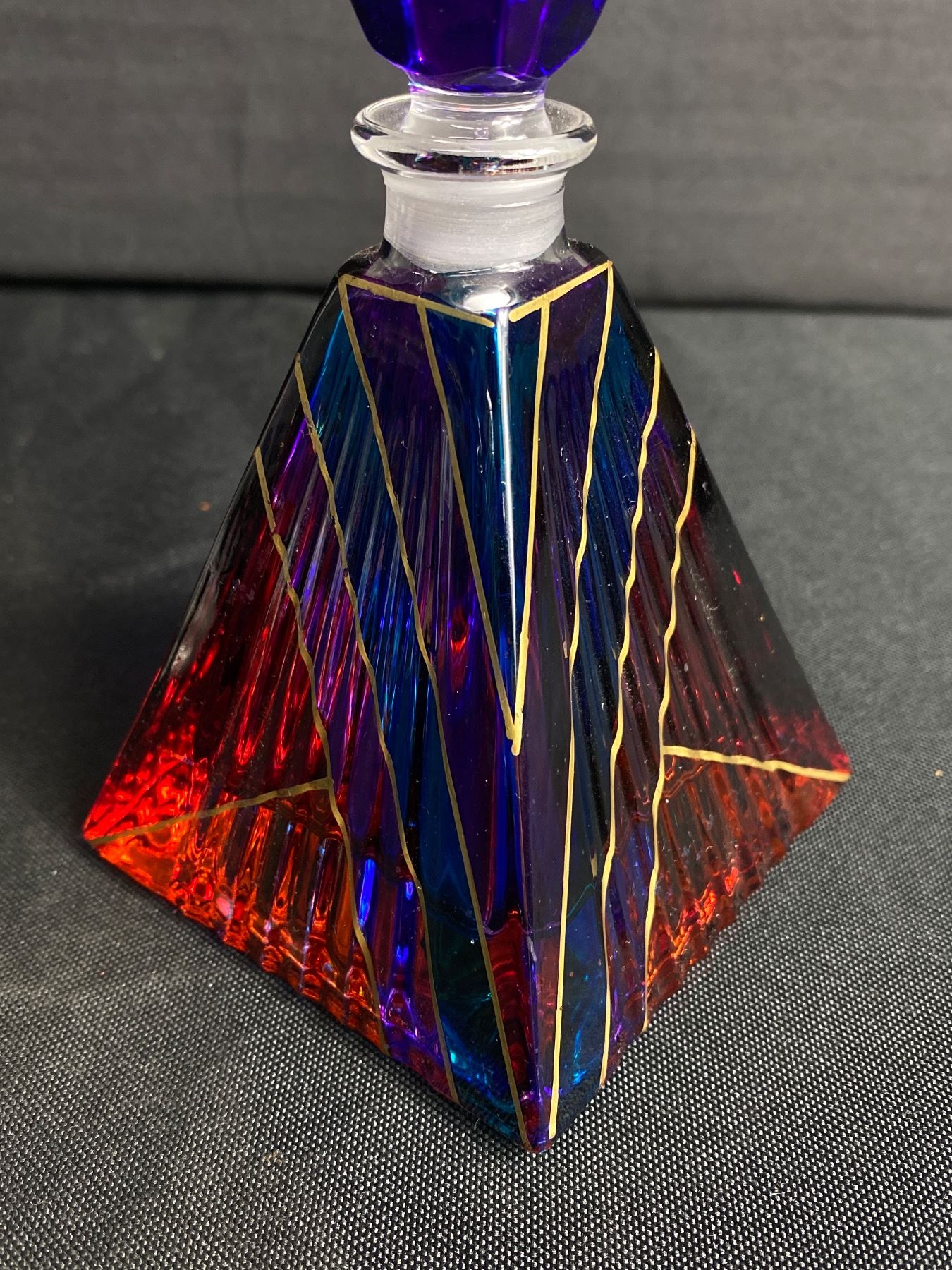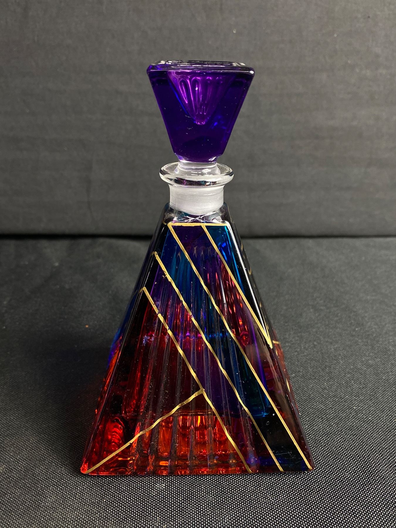 Vintage Hand Painted Murano Glass Pyramid Perfume Bottle