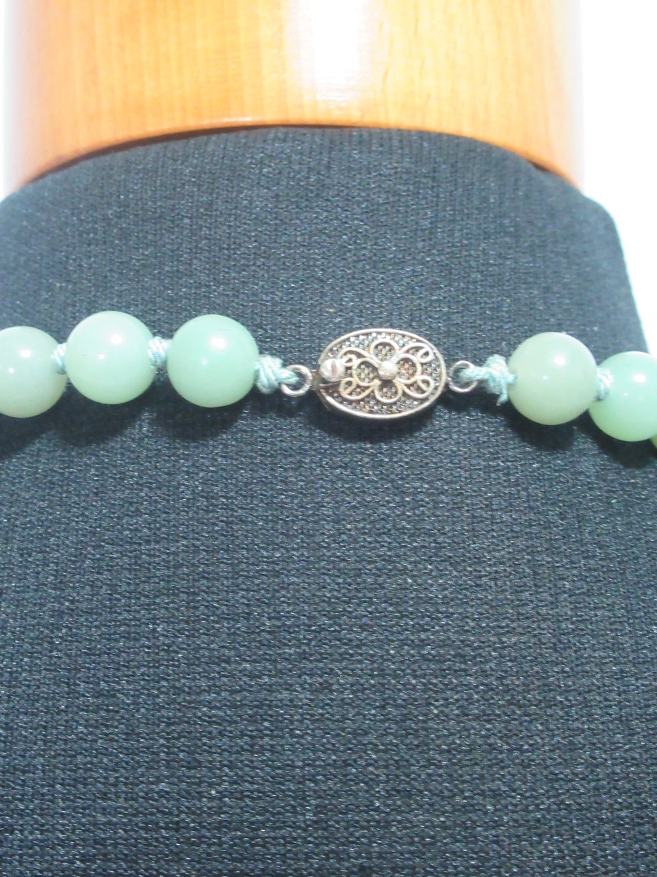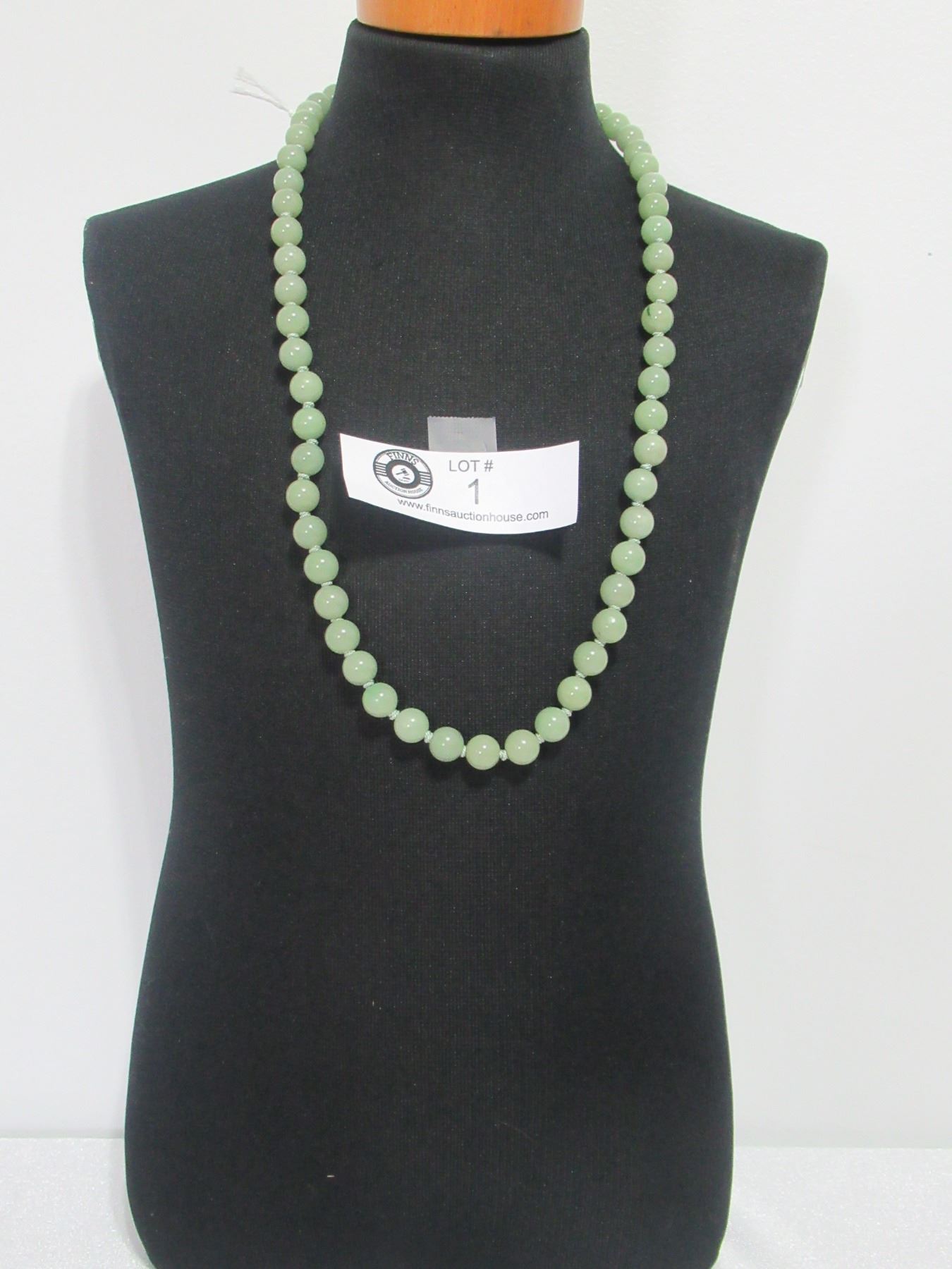 Vintage Hand knotted Genuine Jade Necklace 24" Long. Beads are 9-10mm with Sterling Silver Clasp