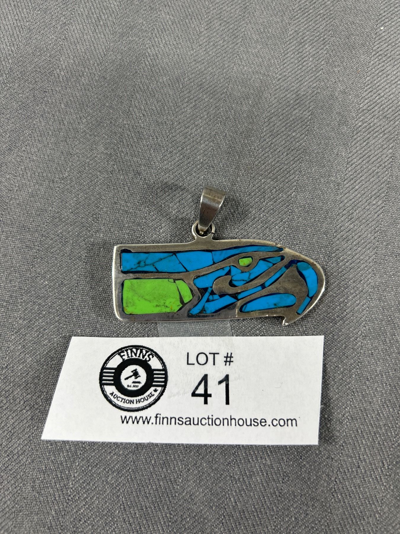 Vintage Handcrafted Southwest Sterling Eagle w/Inlaid Turquoise Pendant - 23.9g