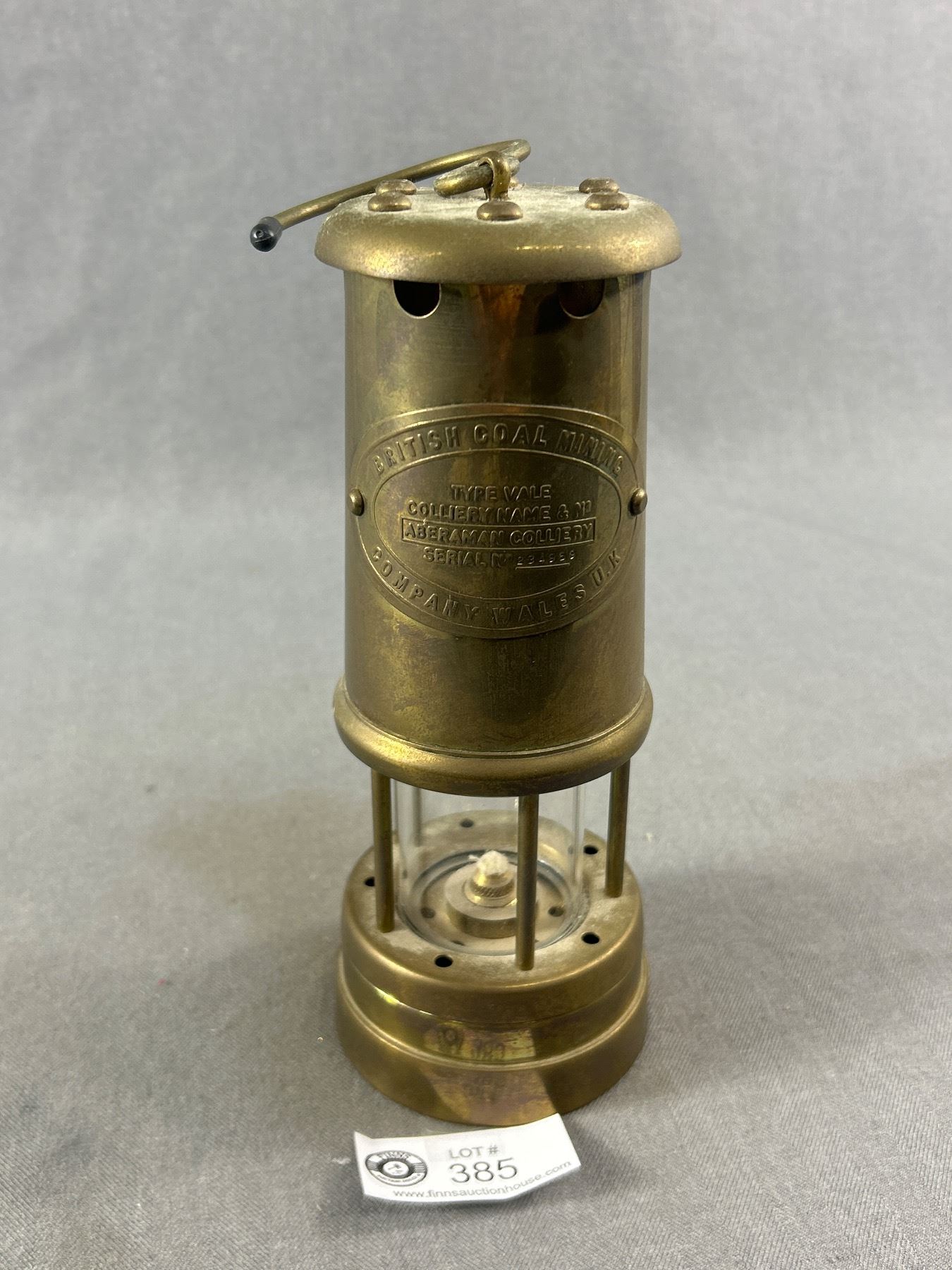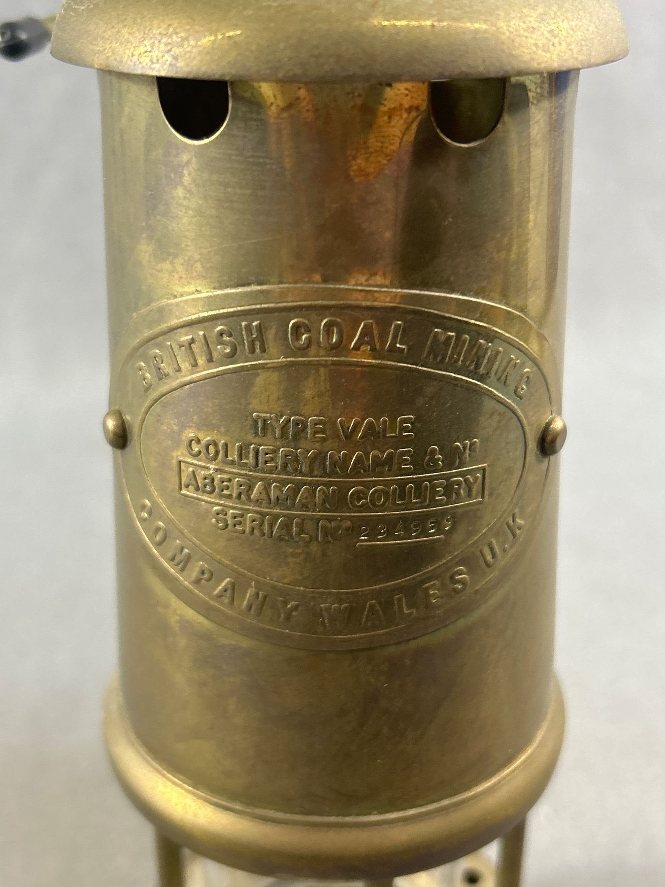 Vintage Heavy Brass "British Coal Mining Company, Wales U.K" 8.5" H Lamp w/ Glass Insert & 3" Hook