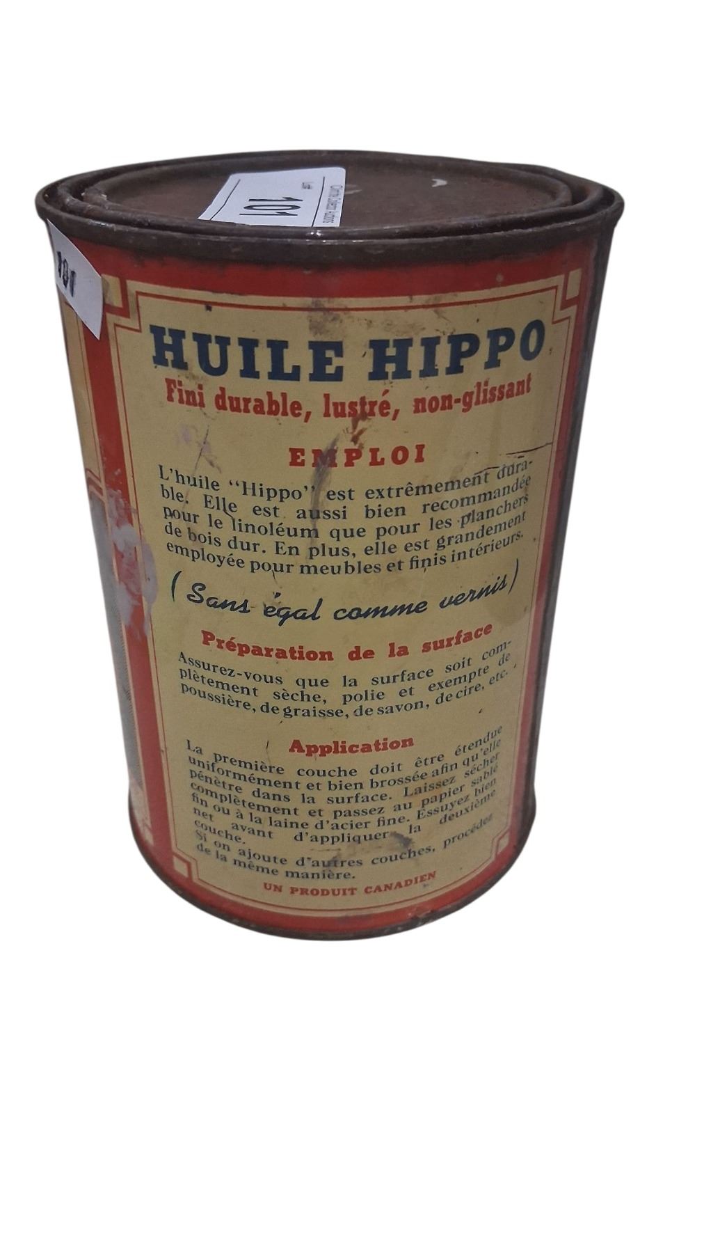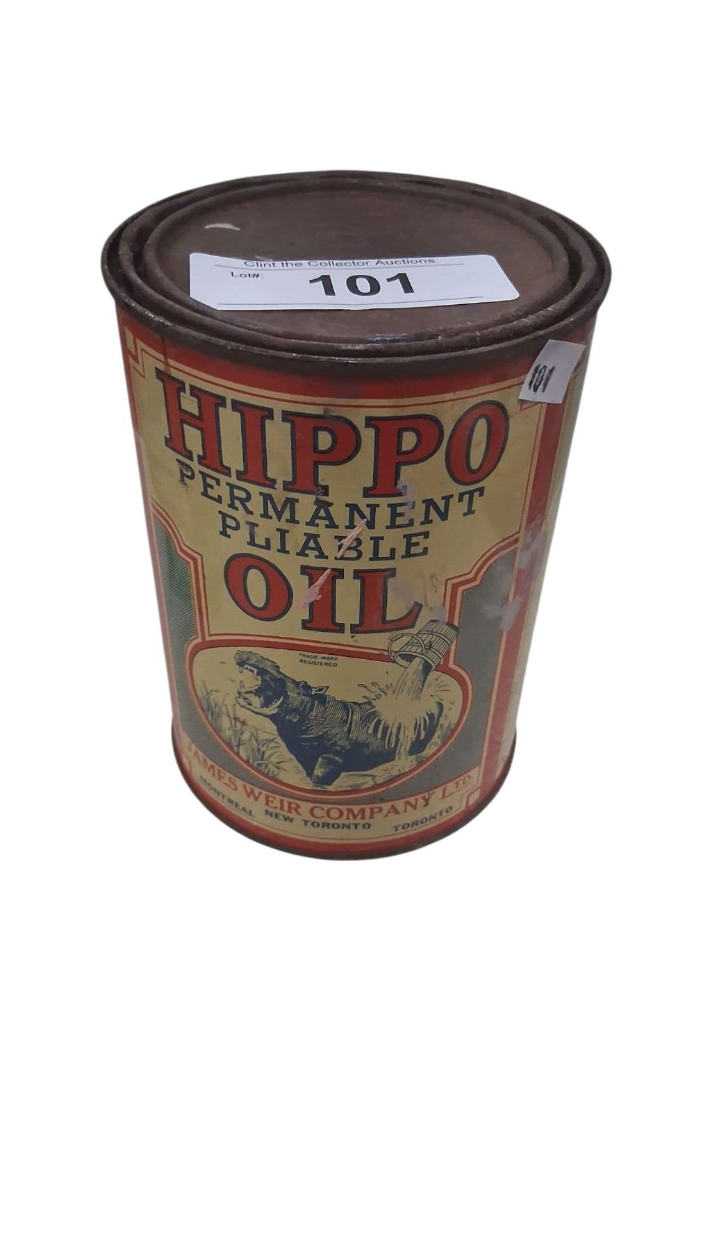 Vintage Hippo Oil tin, great graphics, full, 1 quart