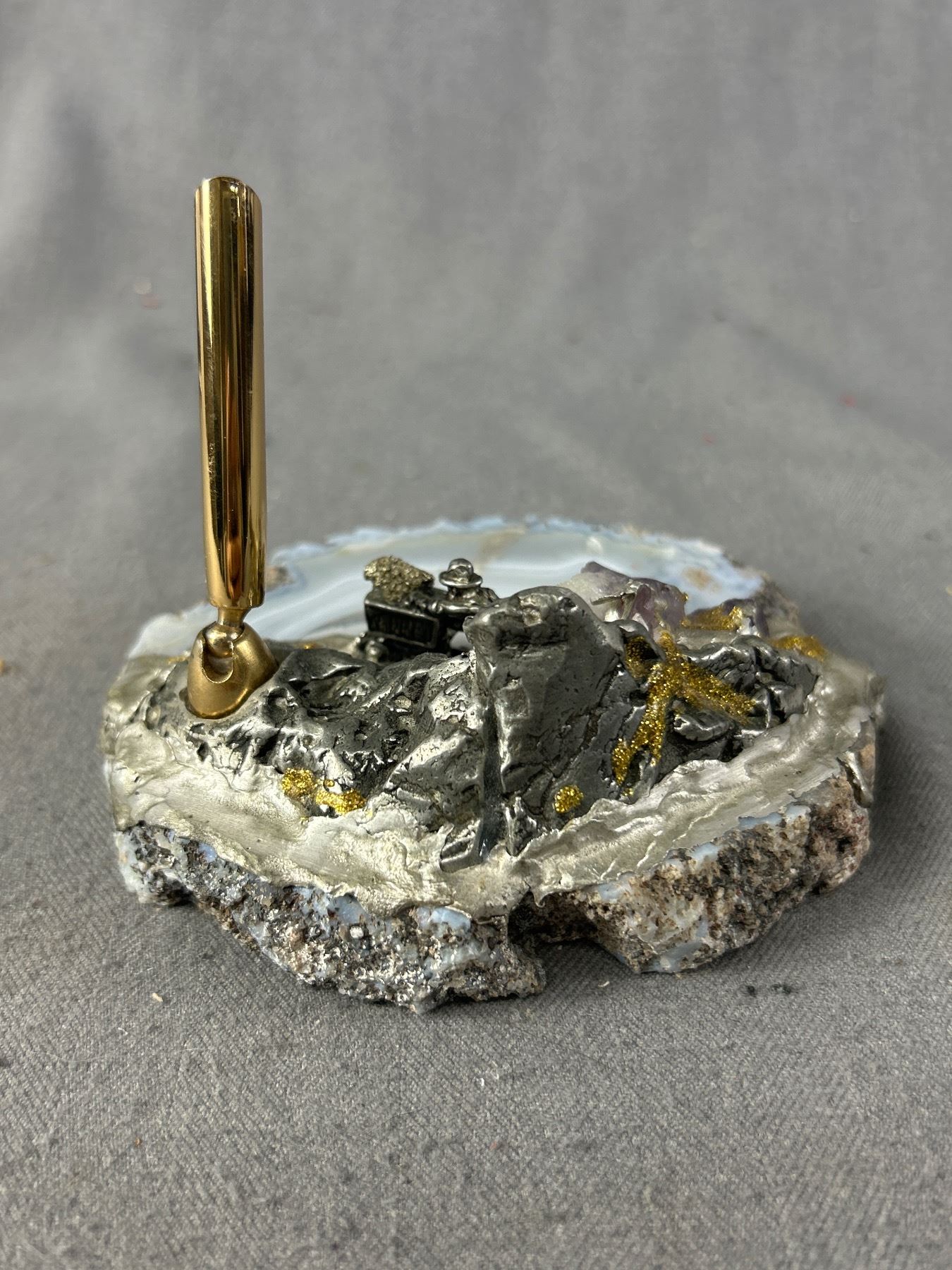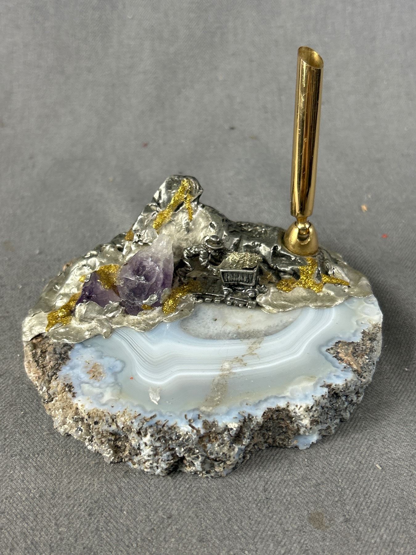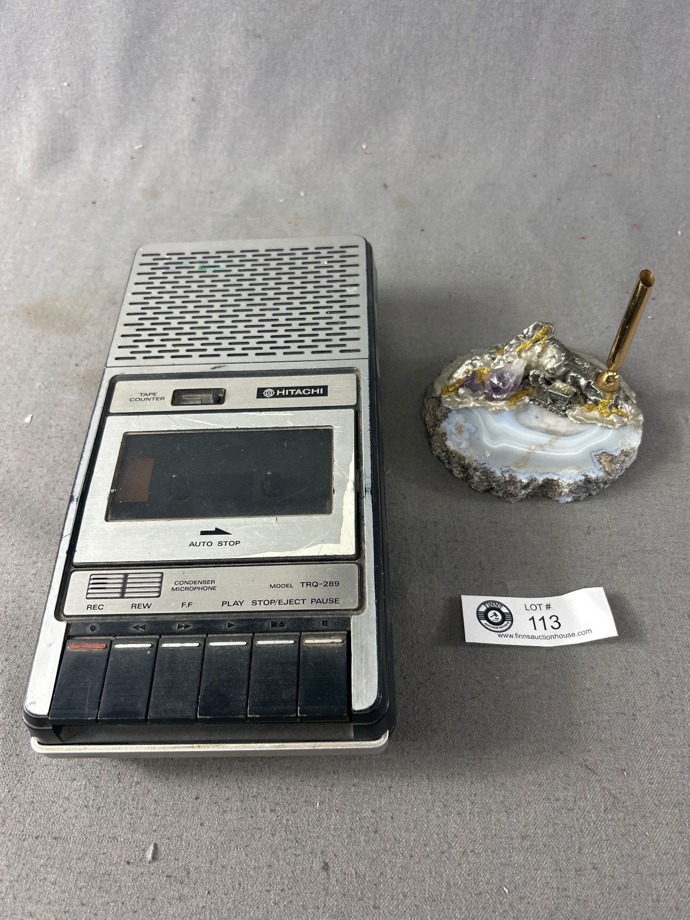 Vintage Hitachi Cassette Tape Rec/Play (Untested) & Christian Salz Agate Miniature Pen Holder Scene