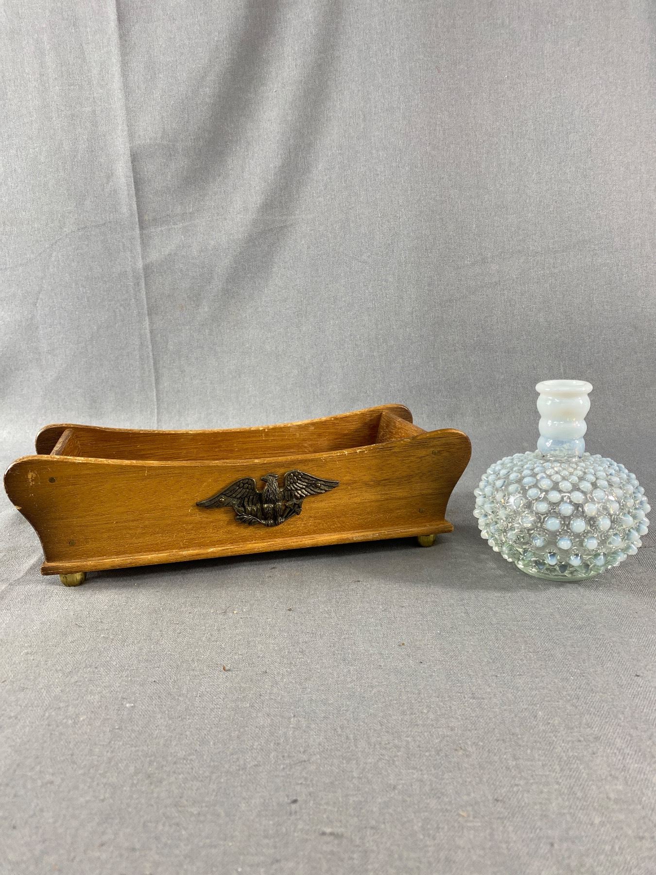 Vintage Hobnail Vase Approx. 5" T & Wood Letter Box w/ Eagle Emblem. Approx. .12" x 5"