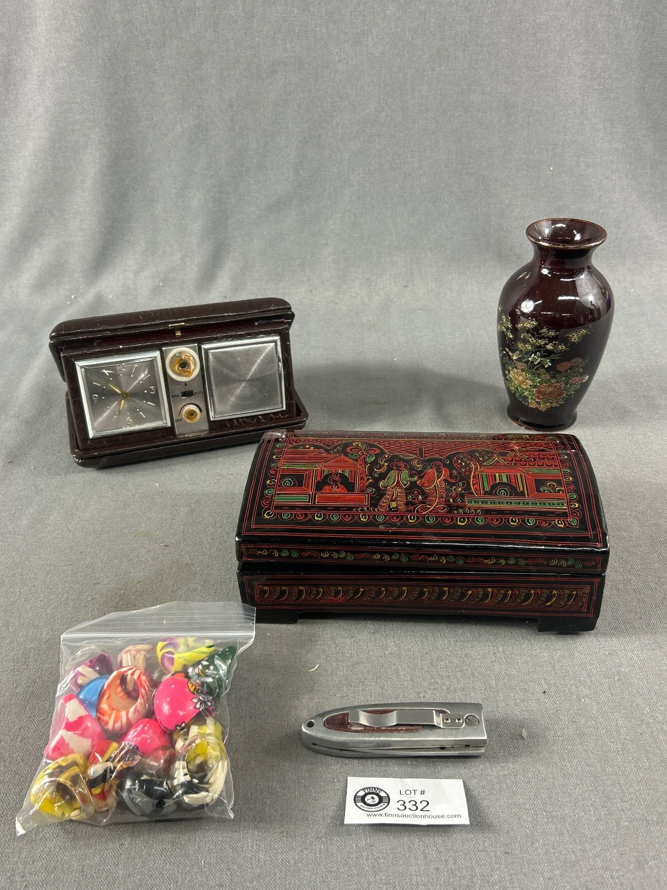 Vintage Home Décor Lot. Vase, Carved Box Etc