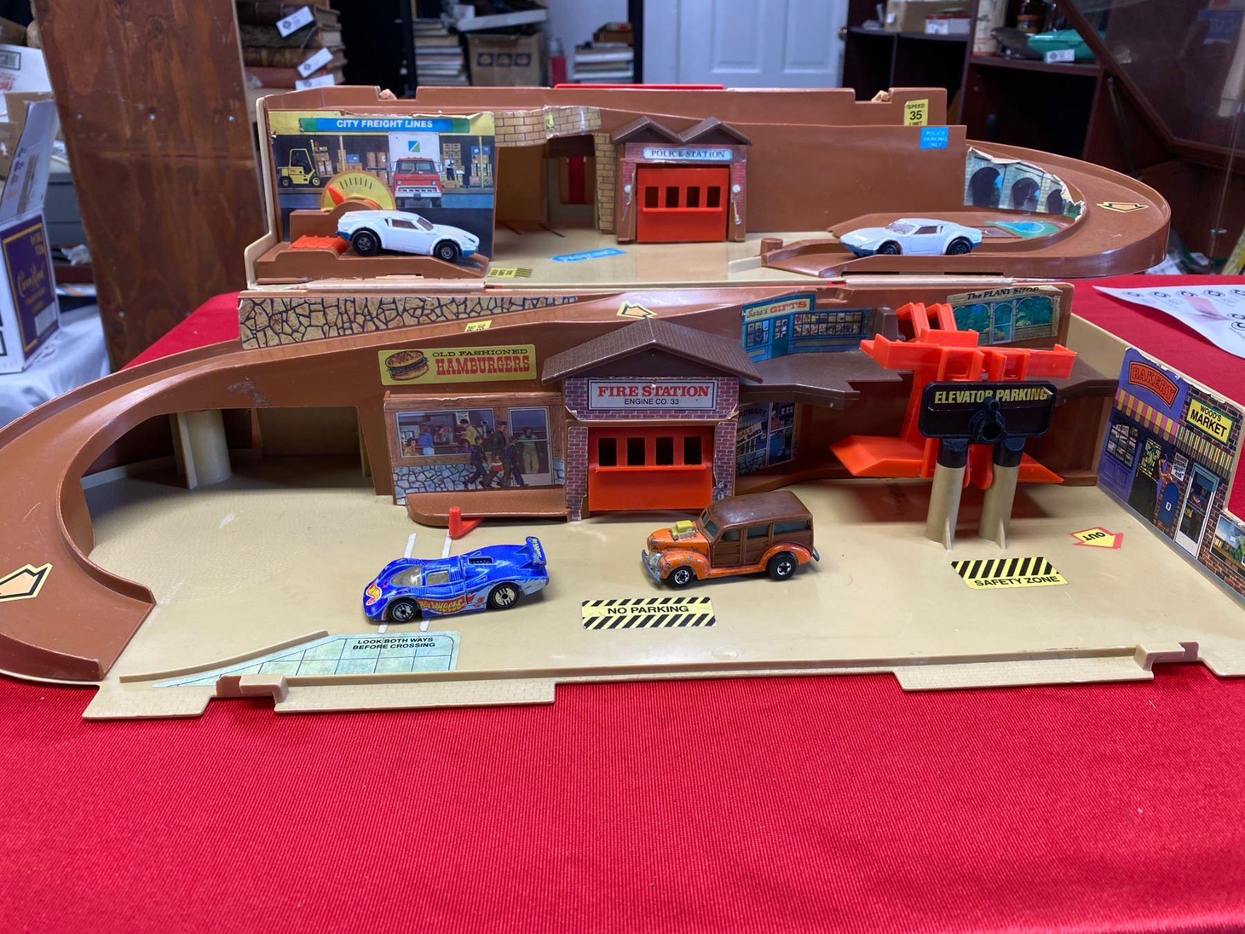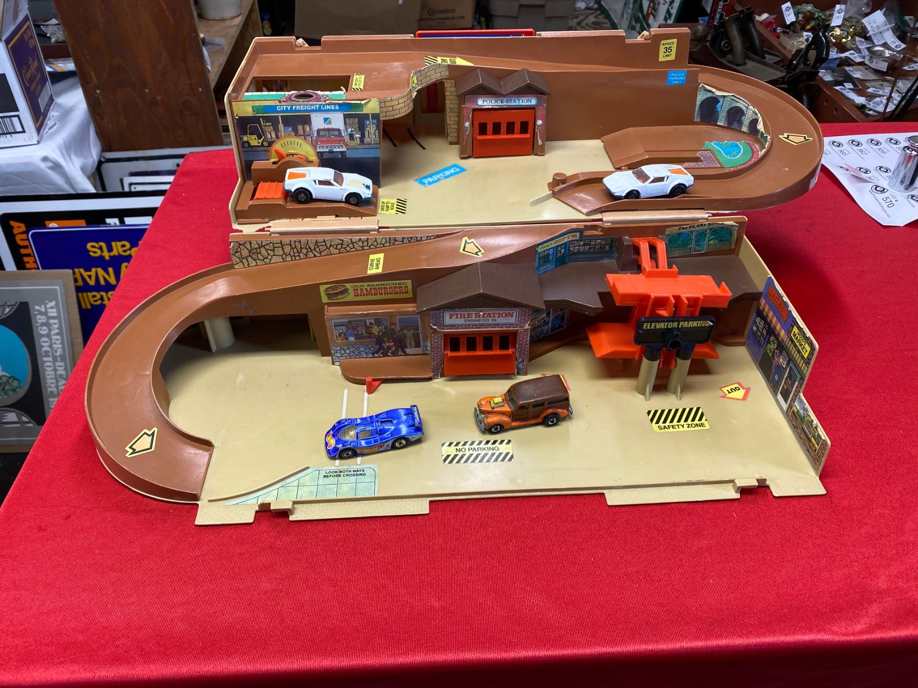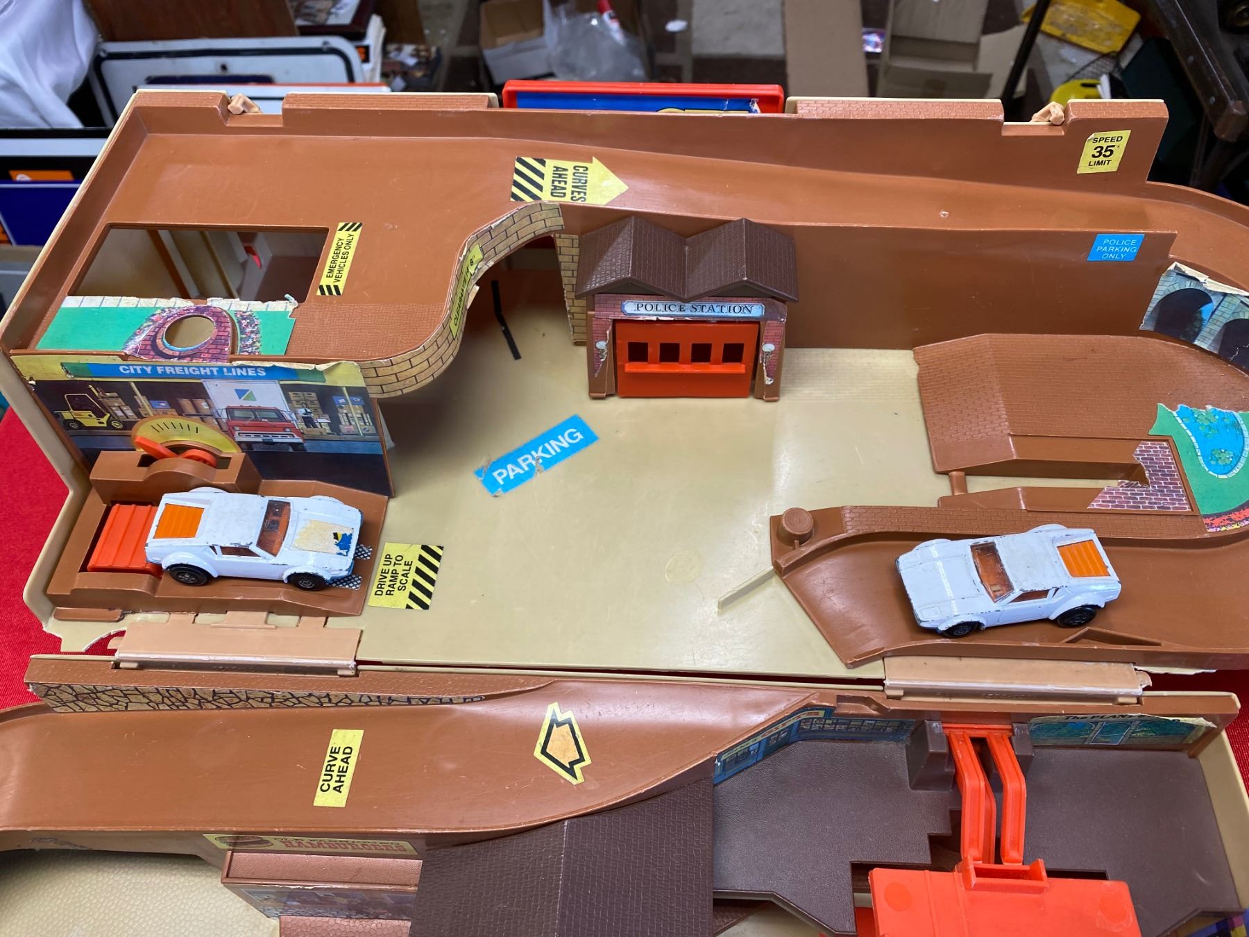 Vintage Hotwheels play set with 4 hot wheels