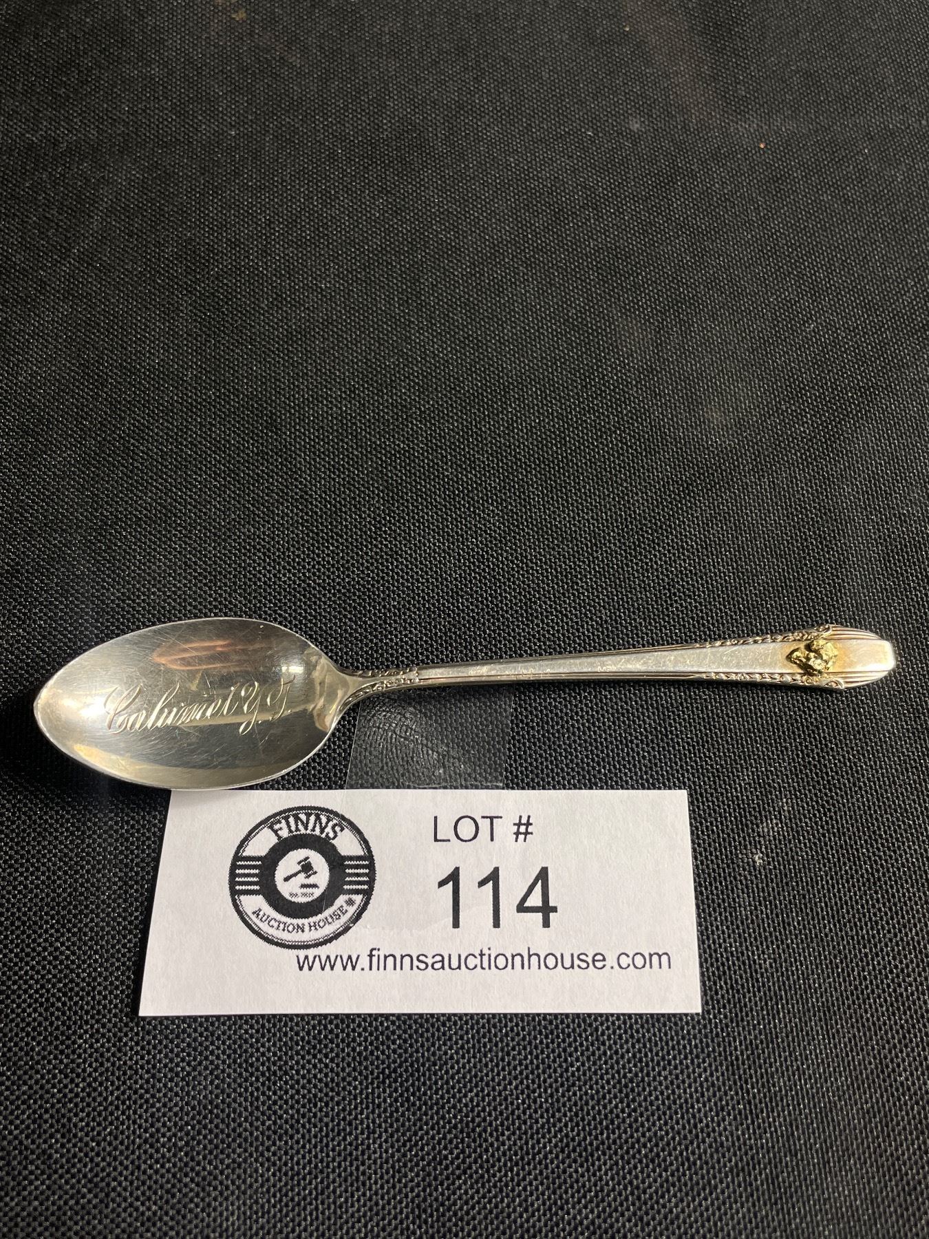 Vintage International Sterling Silver Spoon w/ Gold Nugget