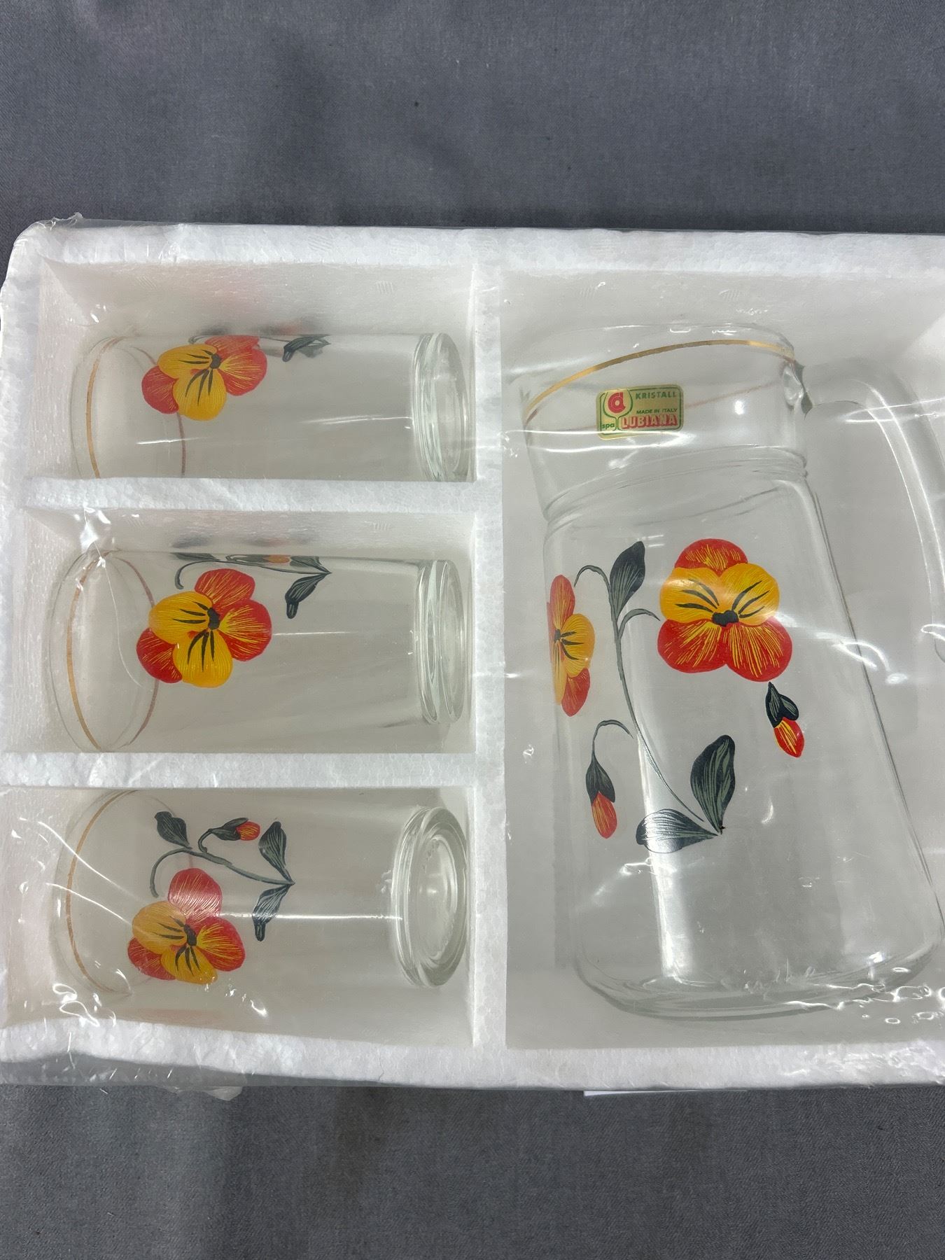 Vintage Italian Kristalll Lubiana Glass Pitcher & Glasses Set