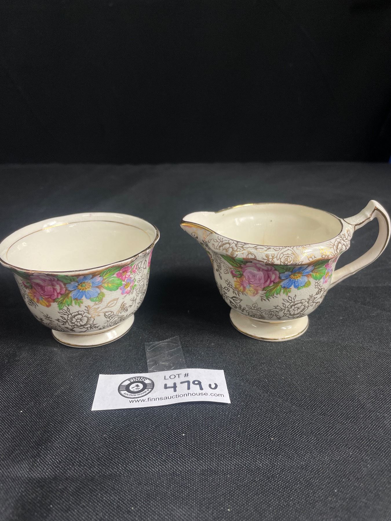Vintage James Kent England 'Balmoral' Chintz Cream & Sugar Set