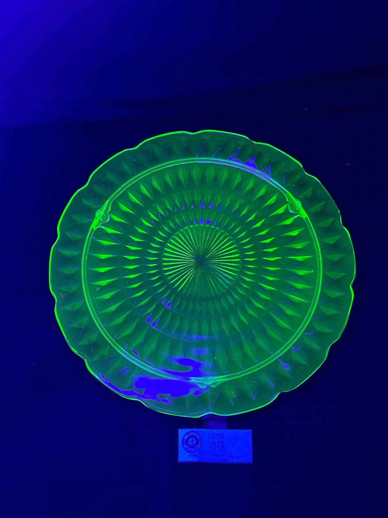 Vintage Jeanette Windsor URANIUM Green Depression Glass 10" Tri-Footed Tray