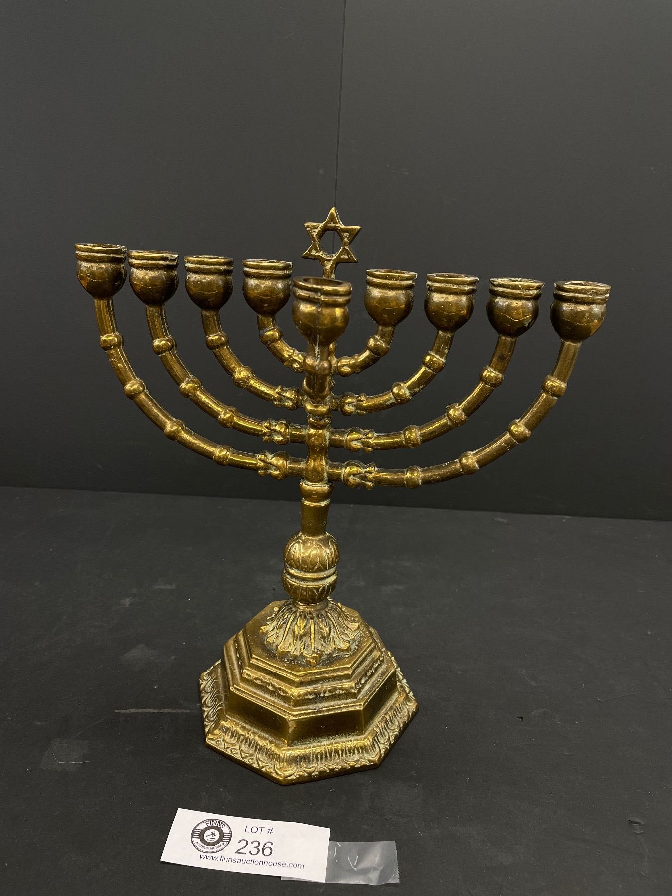 Vintage Jewish Brass/Bronze Menorah Candle Holder 10.5" Tall