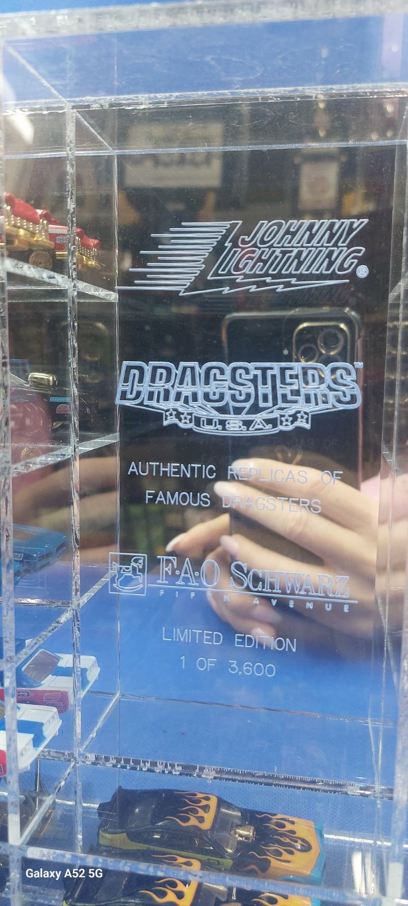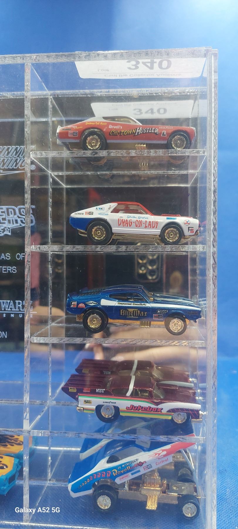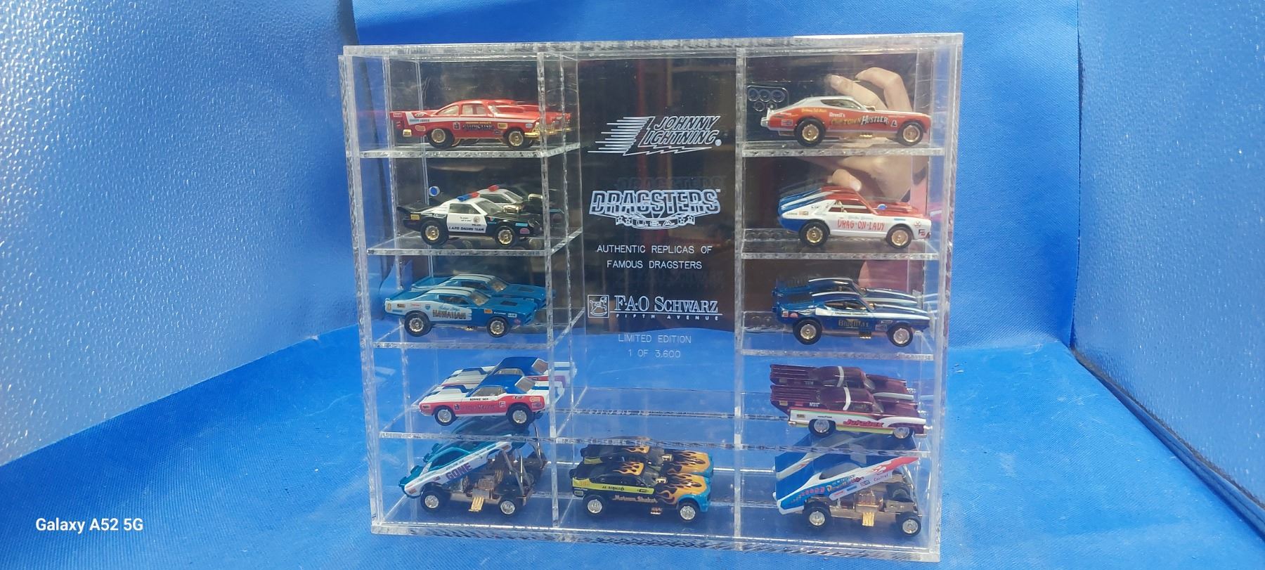 Vintage Johnny Lighning dragster display case with eleven 1:64 cars limited edition 1/3600
