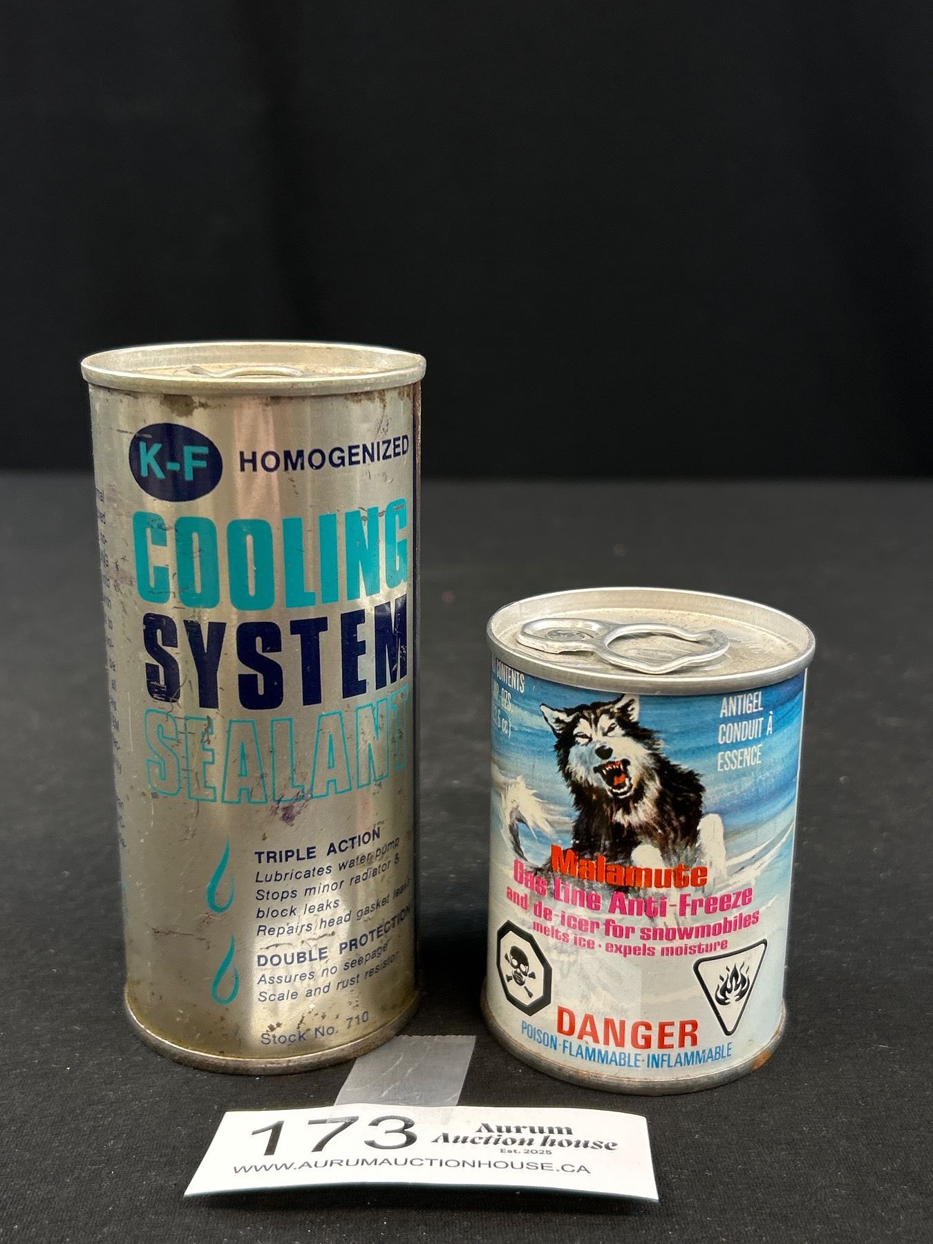 Vintage K-F Cooling System Tin + Malamute Gas Line Anti Freeze Tin