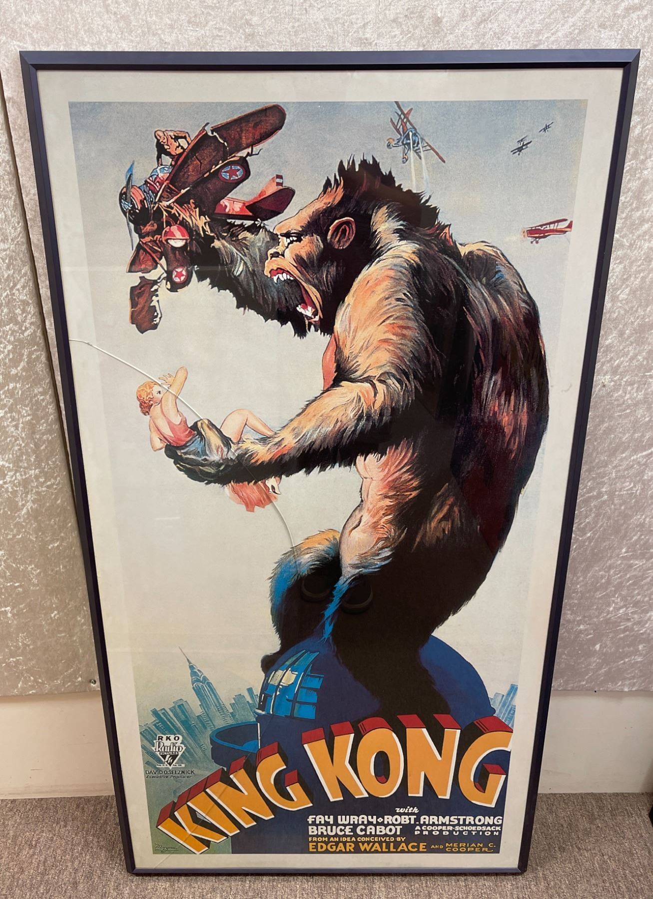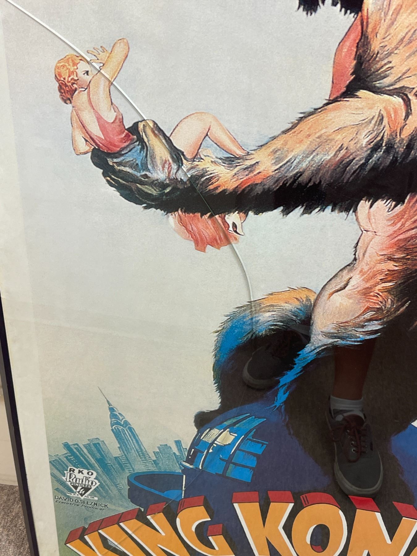 Vintage "King Kong" movie poster - approx. 30in x 55 1/2in (framed glass front cracked)