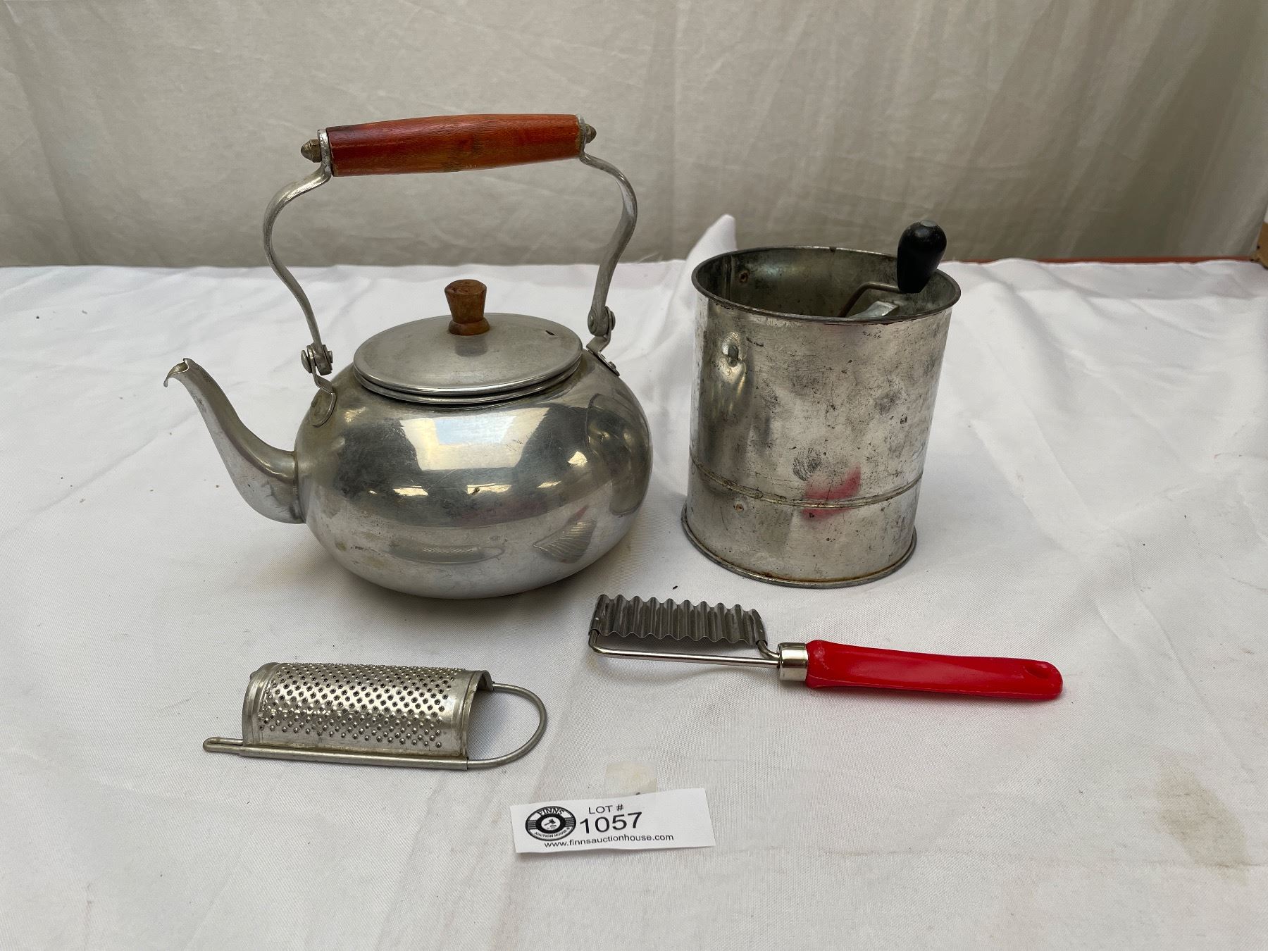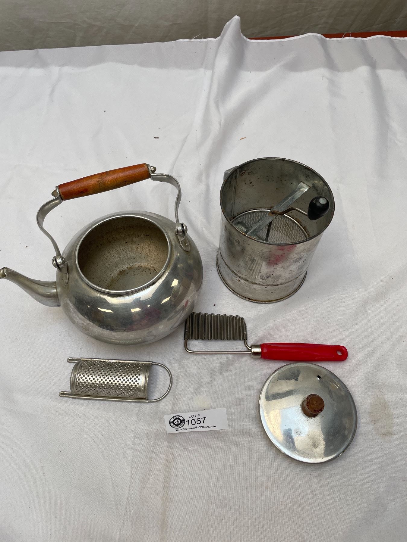 Vintage Kitchen Lot, Kettle, Sifter Etc