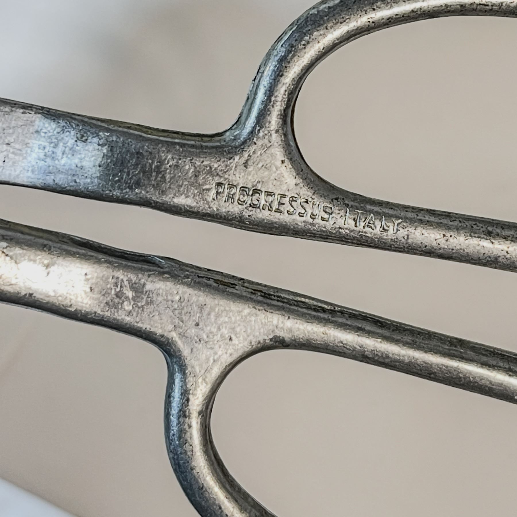 Large mixed lot of vintage and mid-century kitchenware featuring a pair of Italian green glass fish wine/oil bottles with corks, a boxed Sears electric knife with wall-mount station, and a classic metal kitchen scale. Also included are a vintage Melitta 102 ceramic coffee dripper, vintage glass hen egg cup, Vintantonio ravioli mold, Progressos Italy meatball scoop scissors, Log Cabin syrup dispenser, Gemco nut/onion chopper, Ebaloy aluminum juicer, vintage ladle, toy muffin tin, and various utensils. A fun and functional assortment for collectors of retro kitchen décor. All items in good vintage condition with light wear consistent with age.