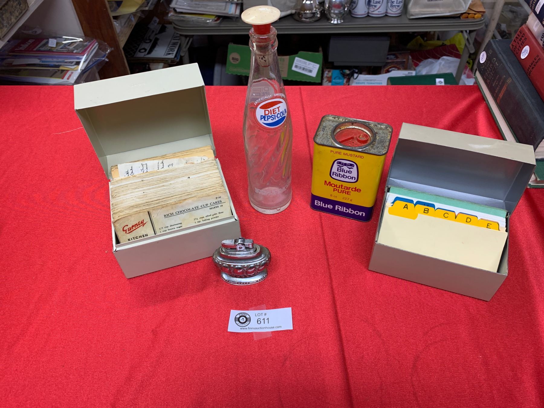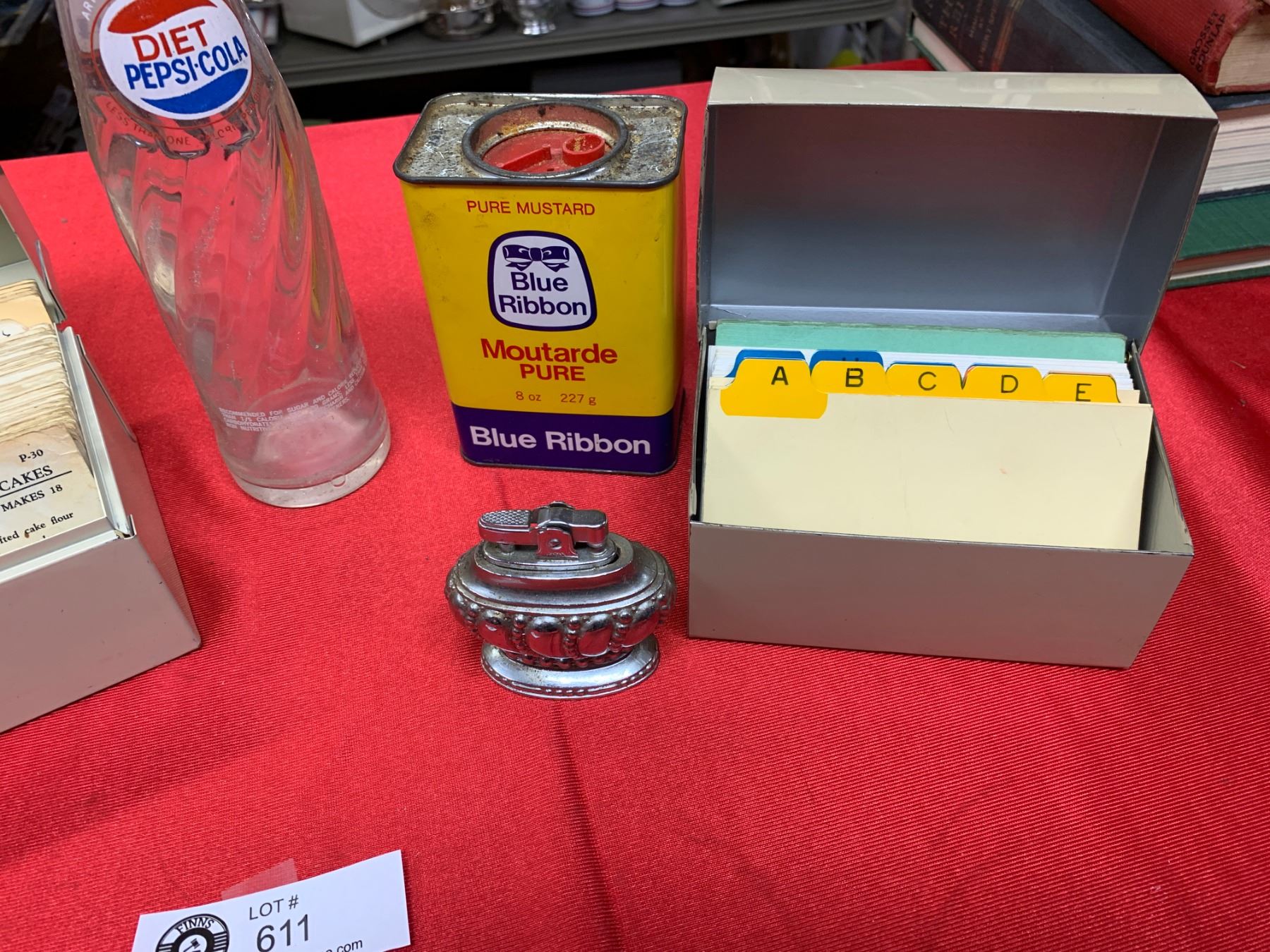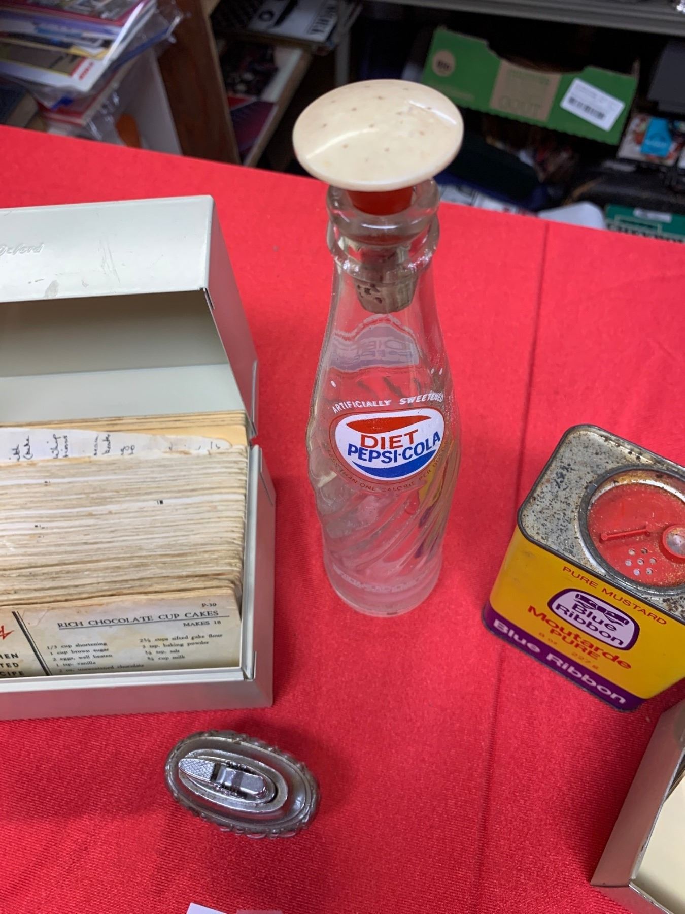 Vintage Kitchen lot with lighter recipe cards in case blue ribbon tin old pepsi cola bottleVintage Kitchen lot with lighter recipe cards in case blue ribbon tin old pepsi cola bottle
