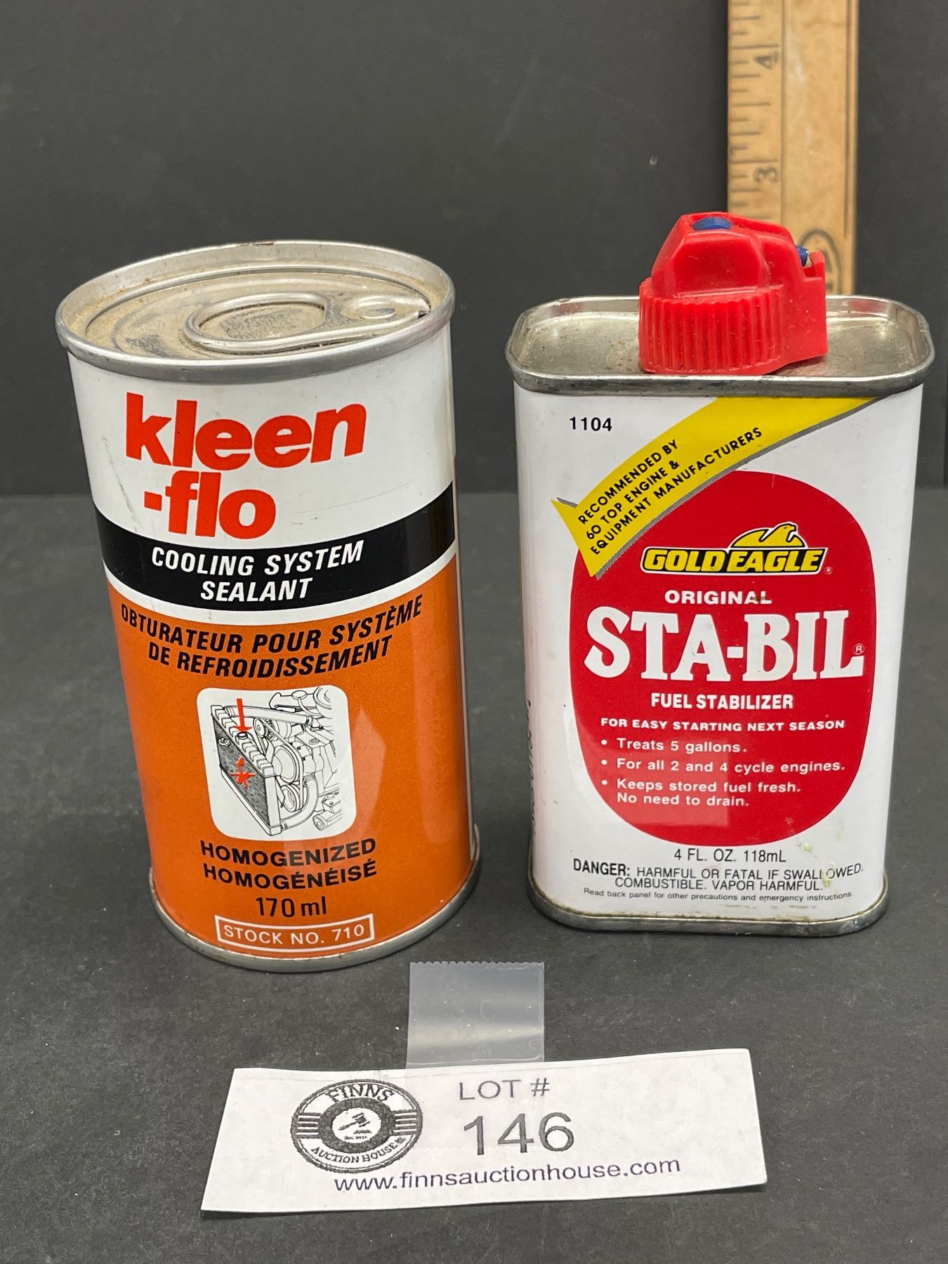 Vintage Kleen-Flo and Gold Eagle Sta-Bil Full 4 oz Tins