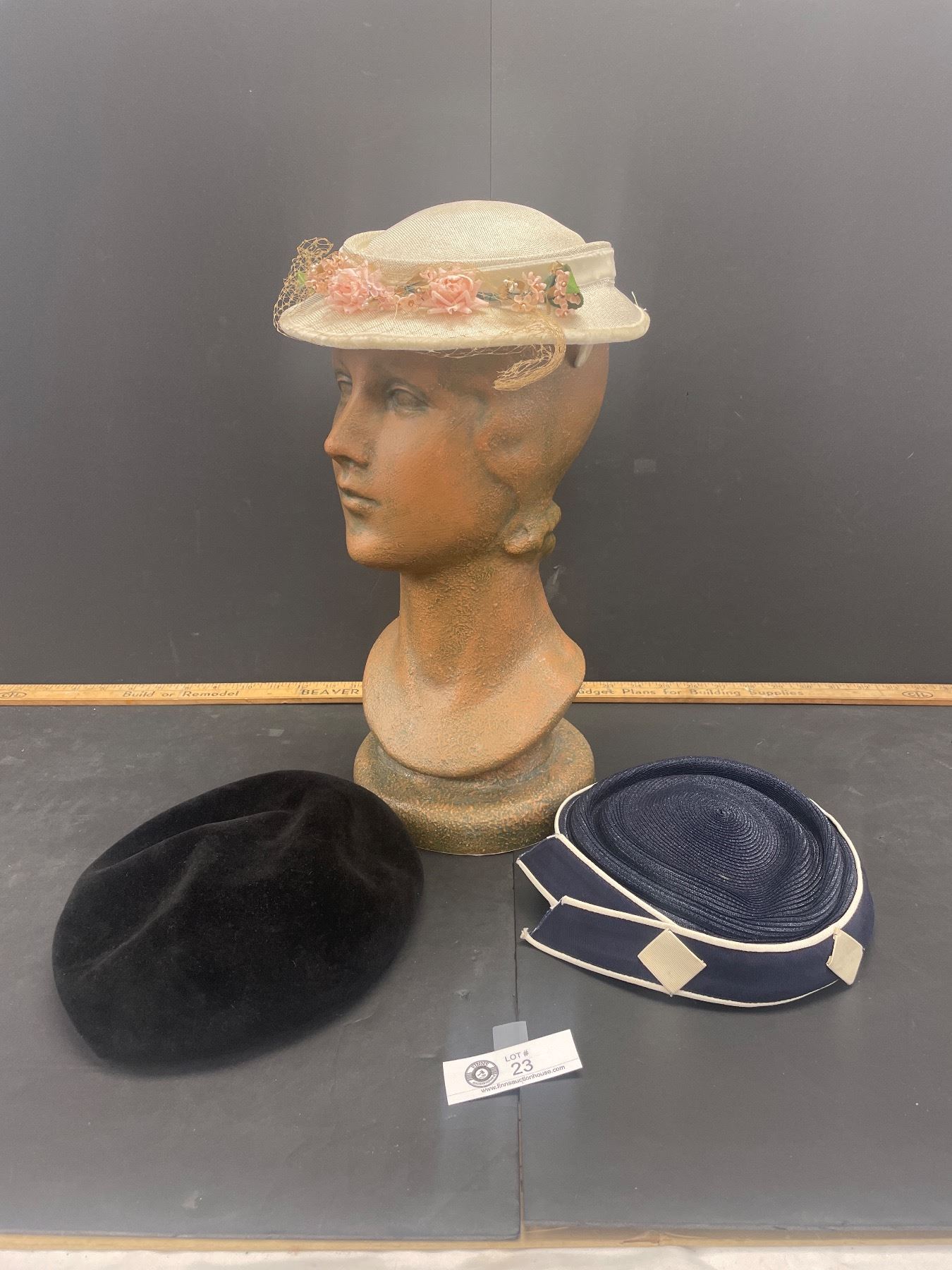 Vintage Ladies Hats Includes Velvet Tam Ostrich Italy