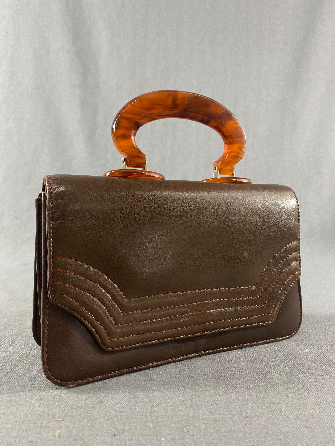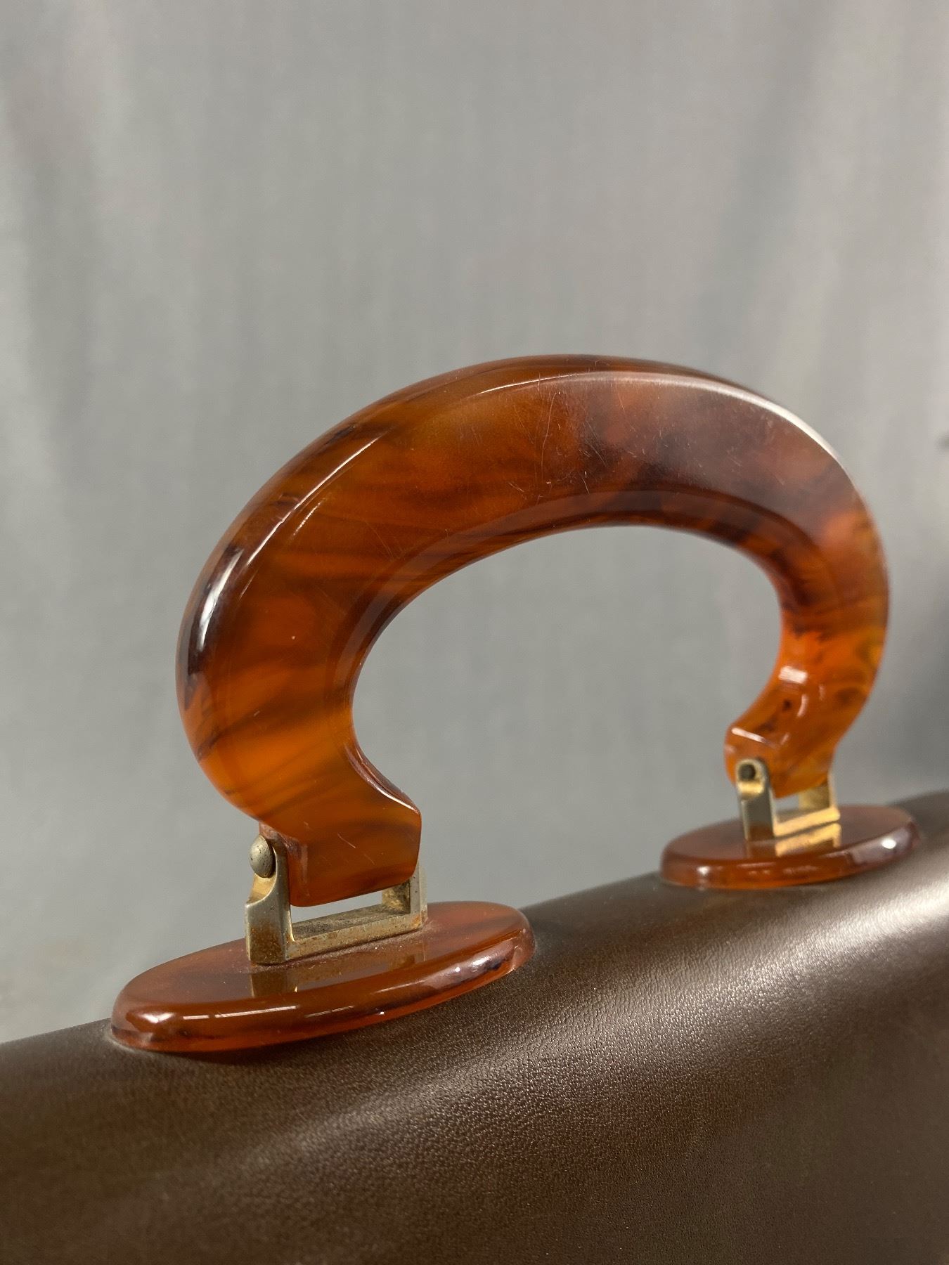 Vintage Leather Handbag with Plastic Handle in Very Good Condition