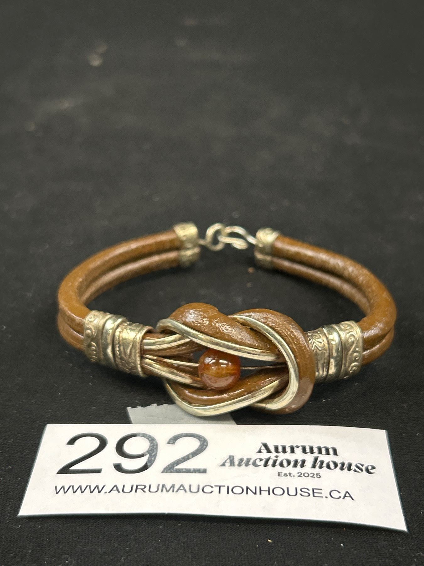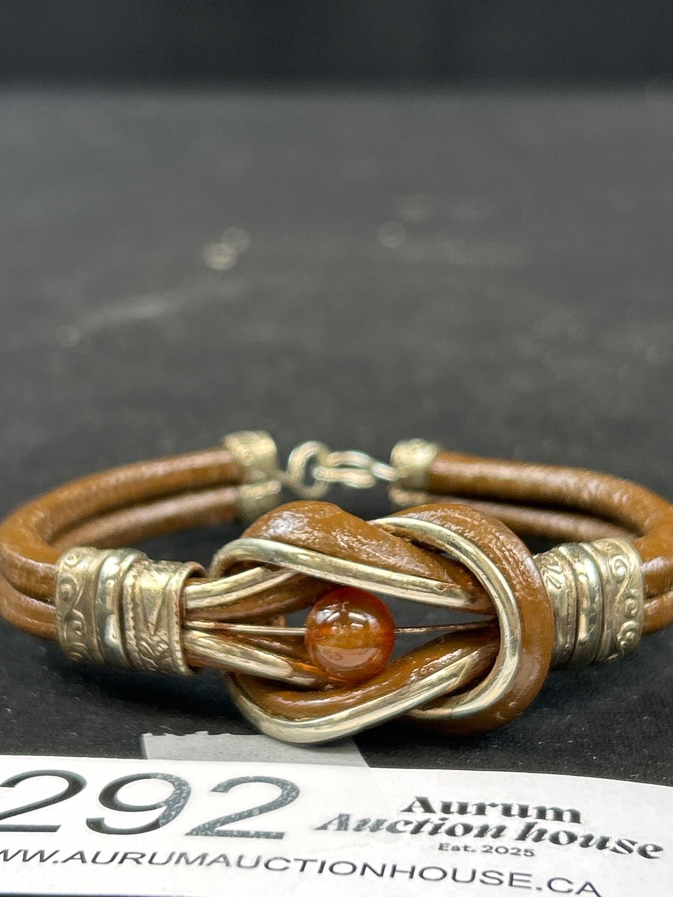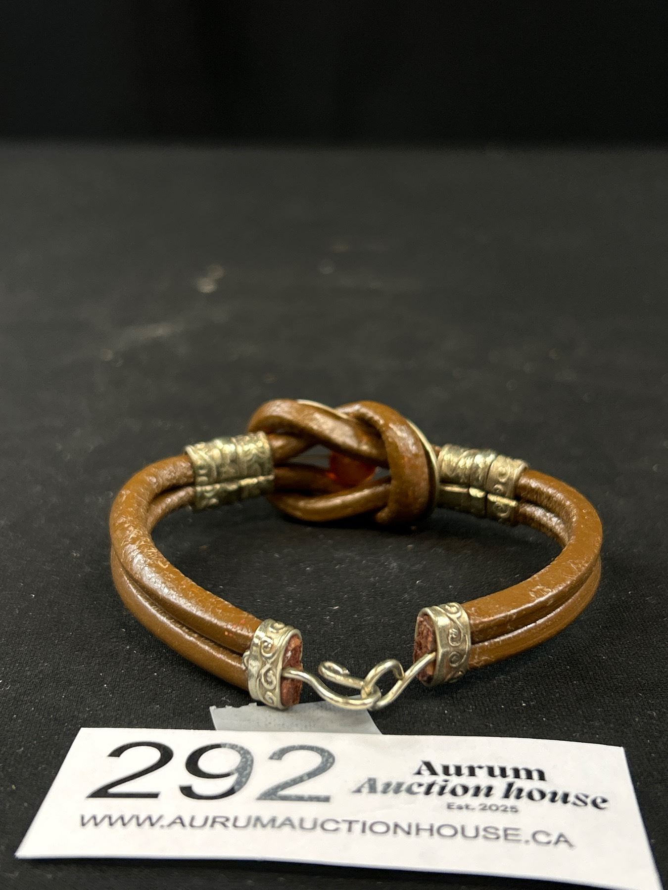 Vintage Leather w/ Silver + Amber Bracelet