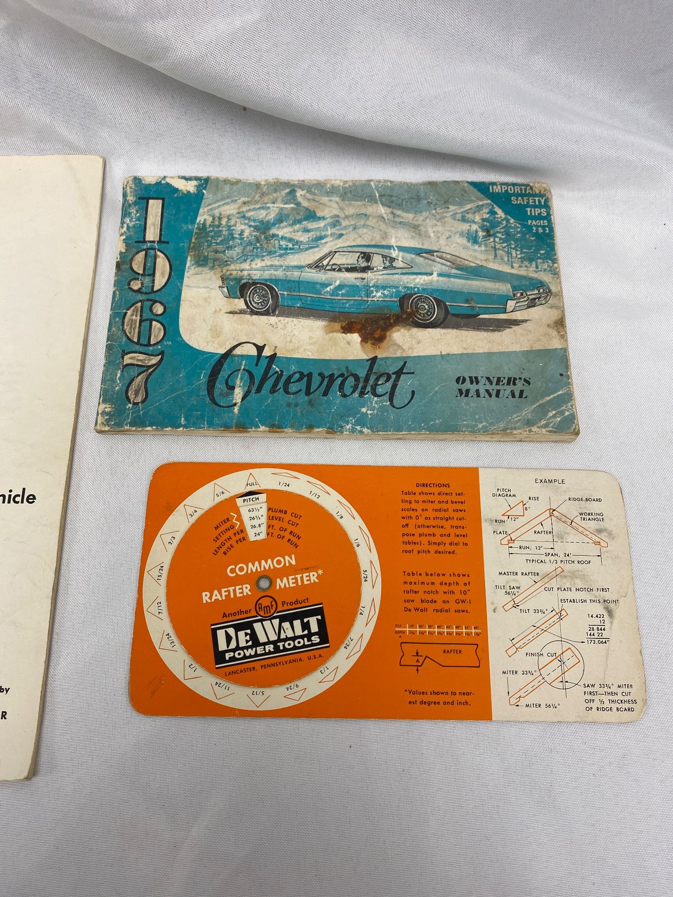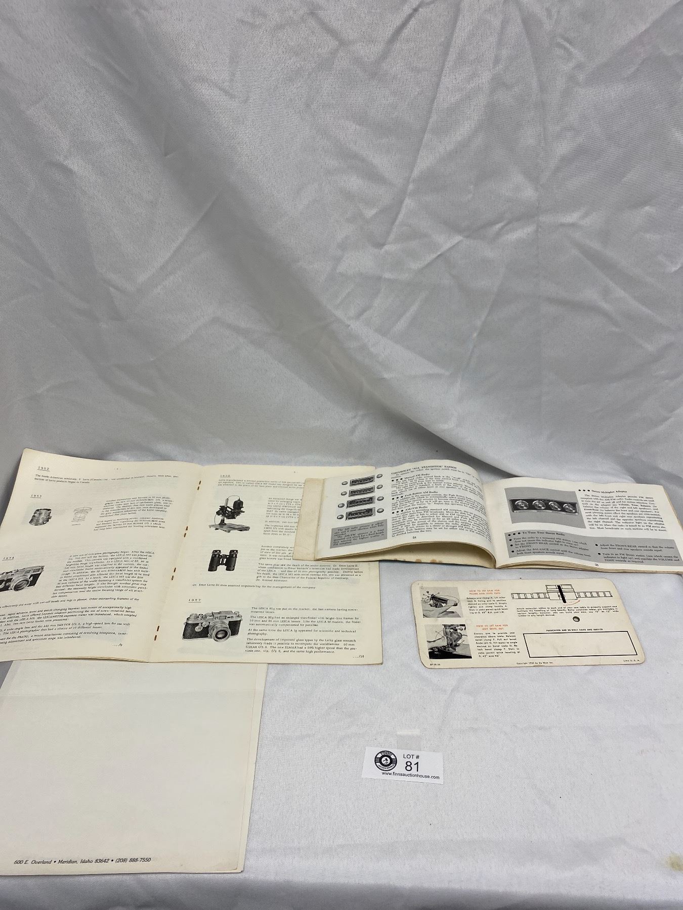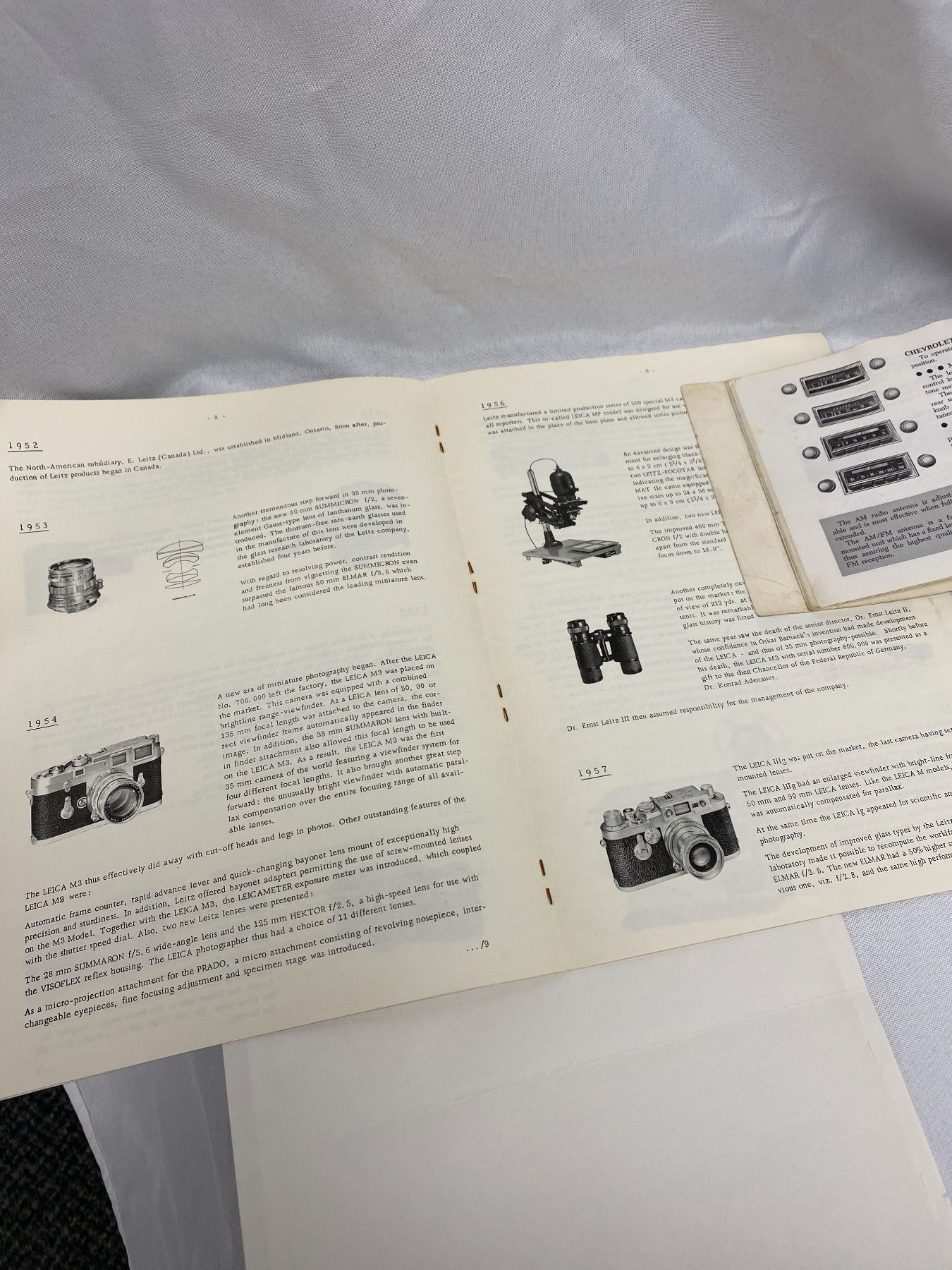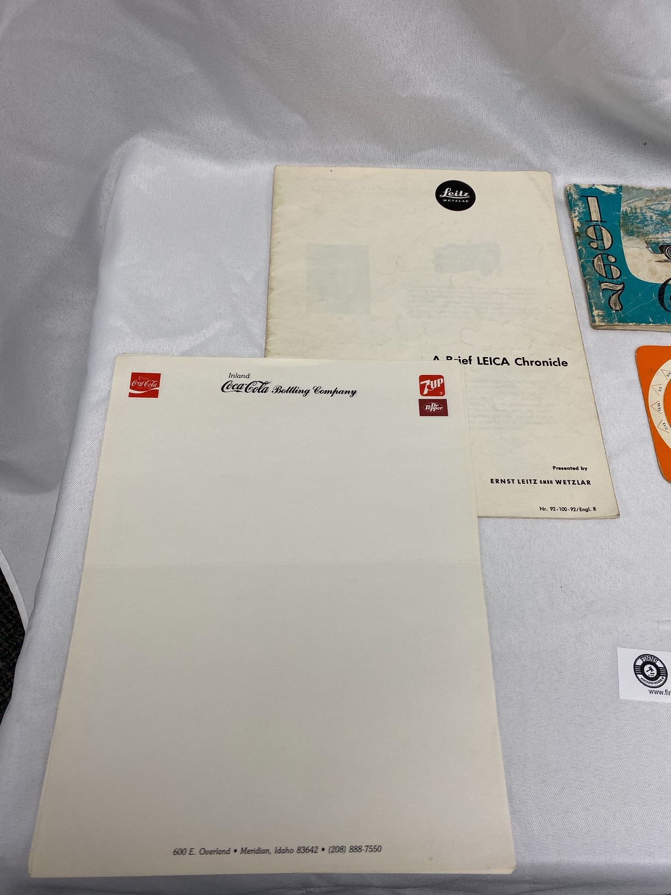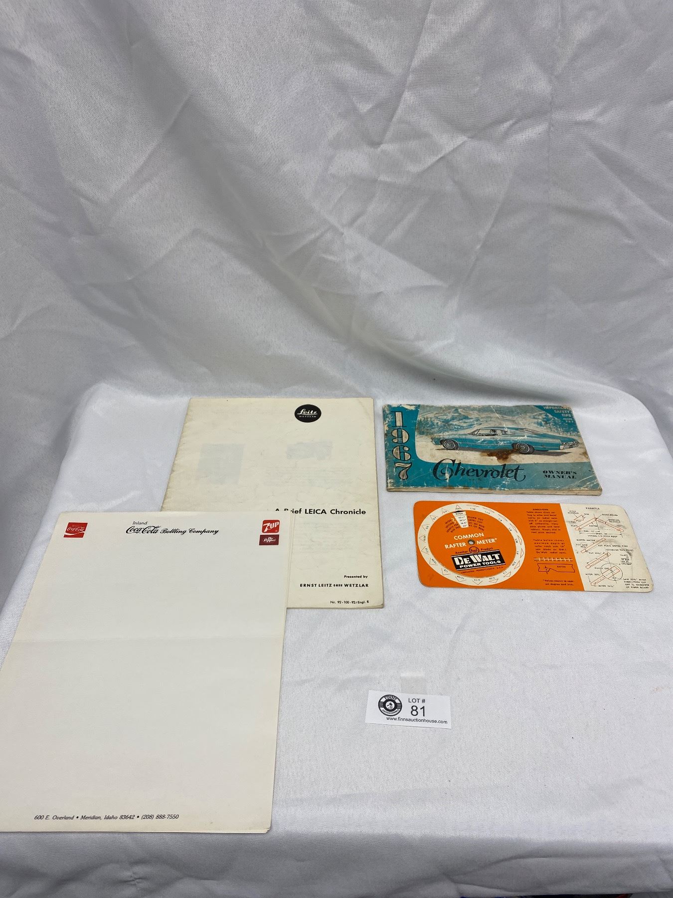 Vintage Leitz Wetzlar Leica Chronicle, 1967 Chev Owners Manual, Coca Cola Letterhead and Rafter Meter