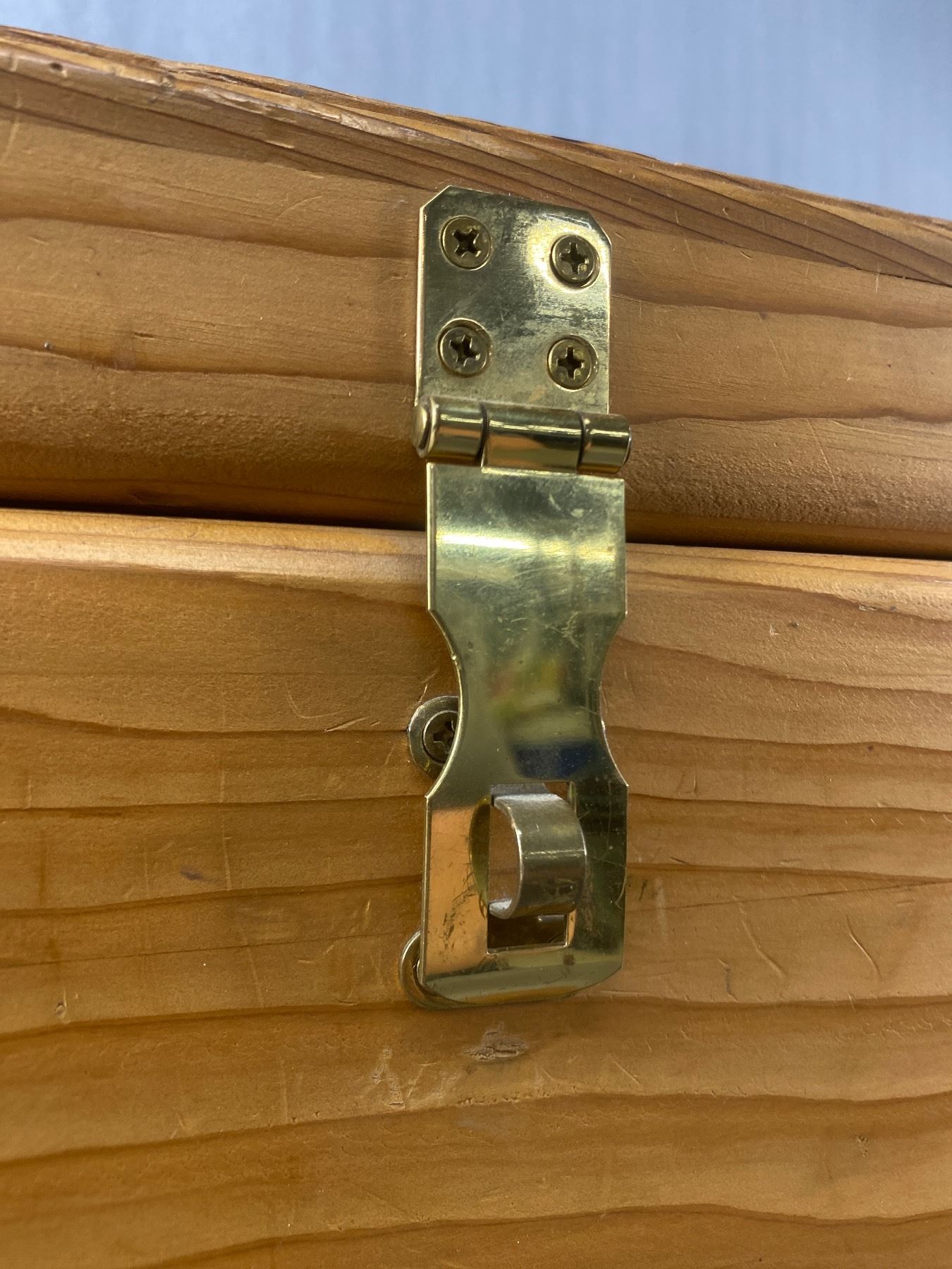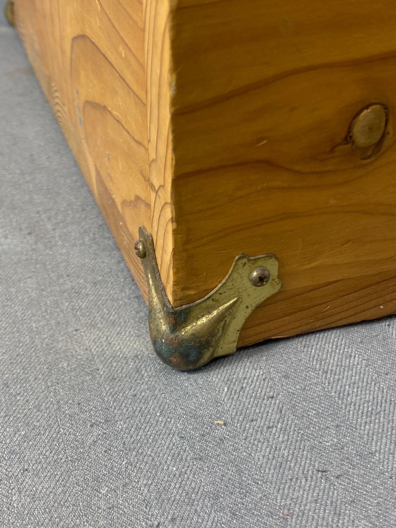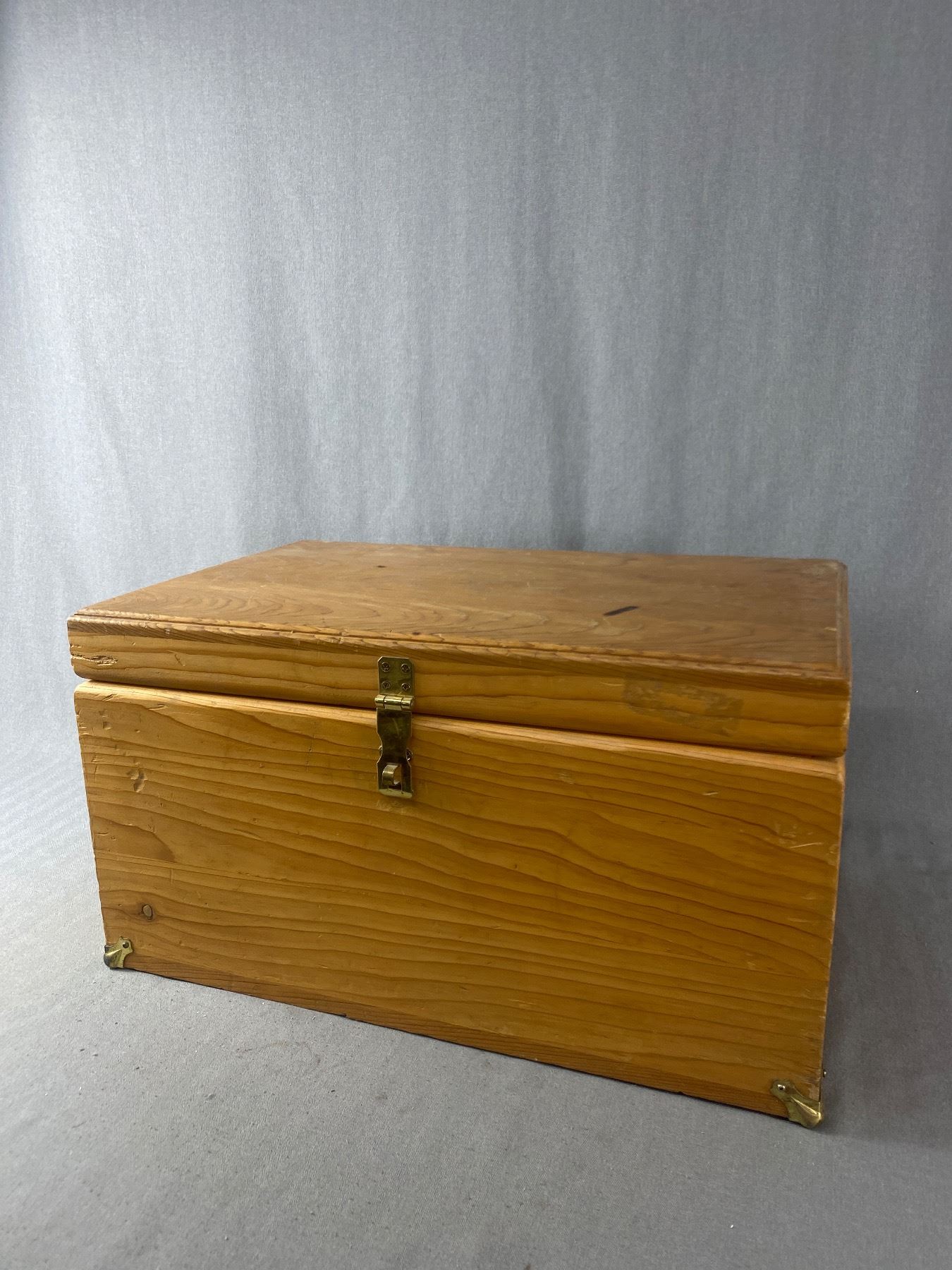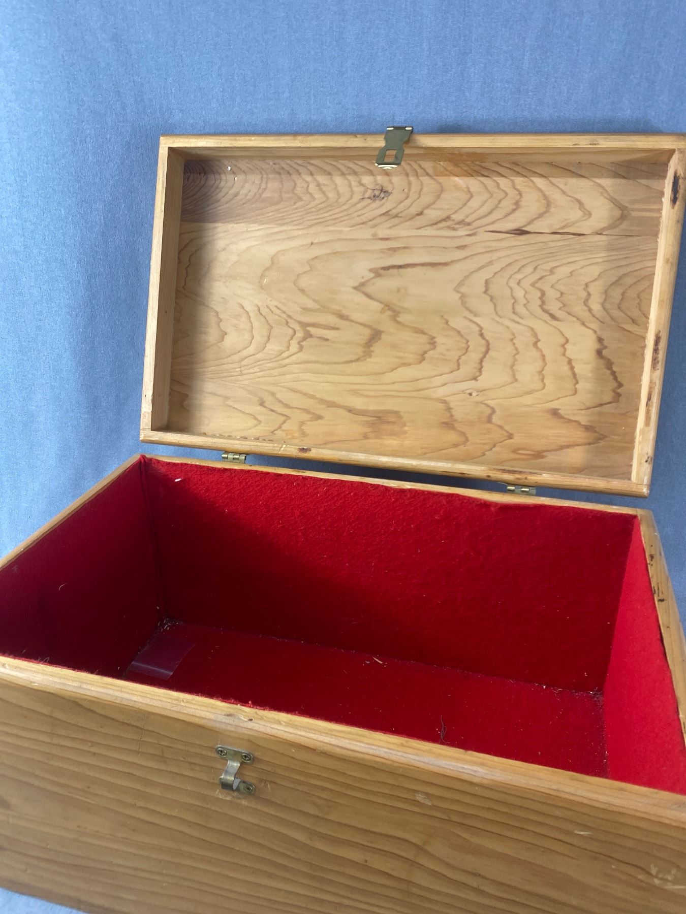 Vintage Lined Wood Box w/ Hinged Lid & Metal Accents. Approx. 21.5" x 11.5" x 13.75"