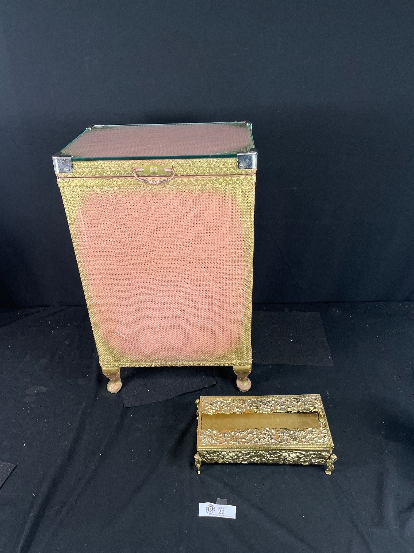 Vintage Lloyd Loom Laundry Hamper w/Glass Lid & Hollywood Regency Tissue Box Holder -Great Condition No Shipping