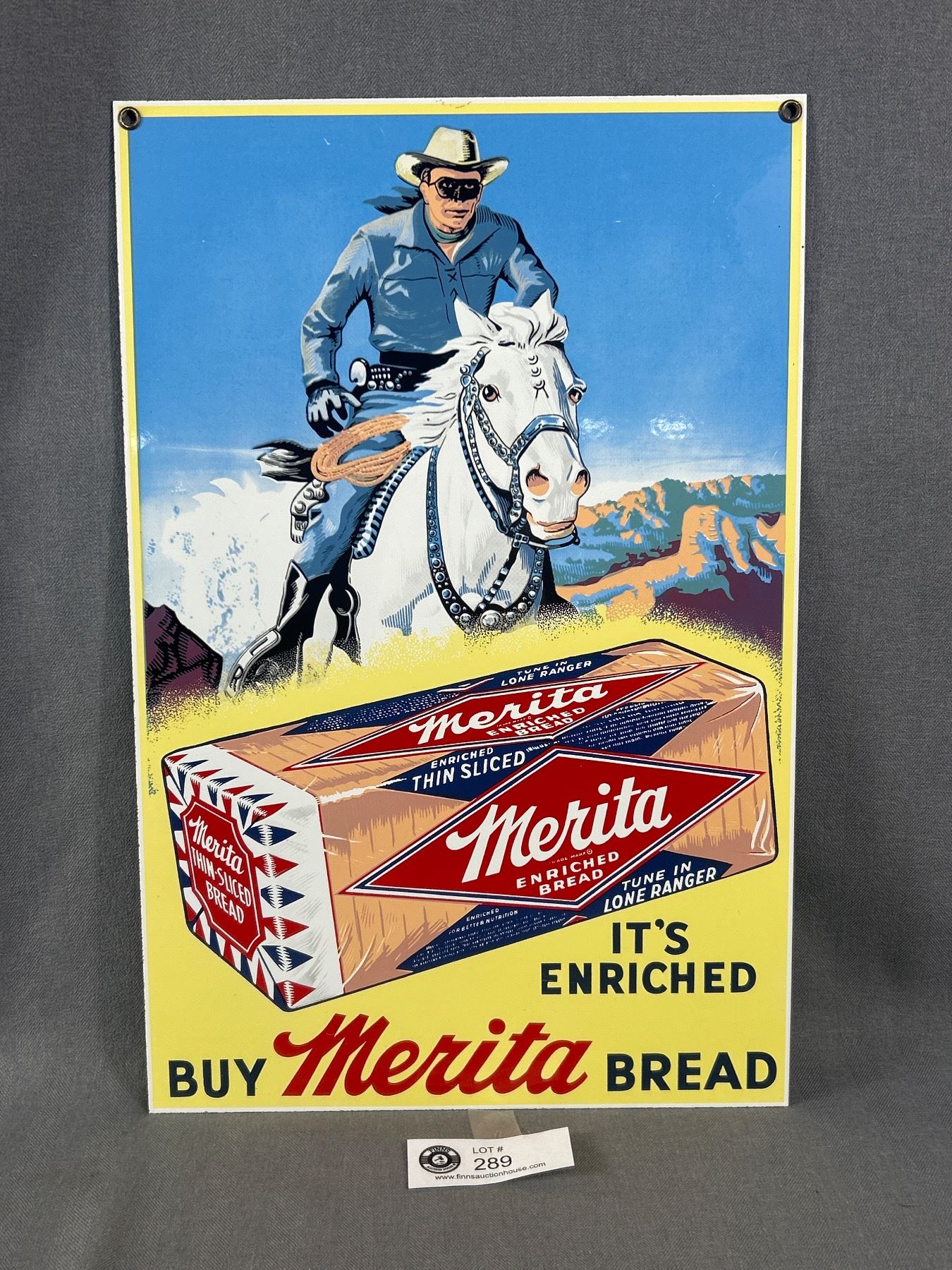 Vintage "Lone Ranger Merita Enriched Bread" Andy Rooney Porcelain Sign. Approx. 10.5" x 16"