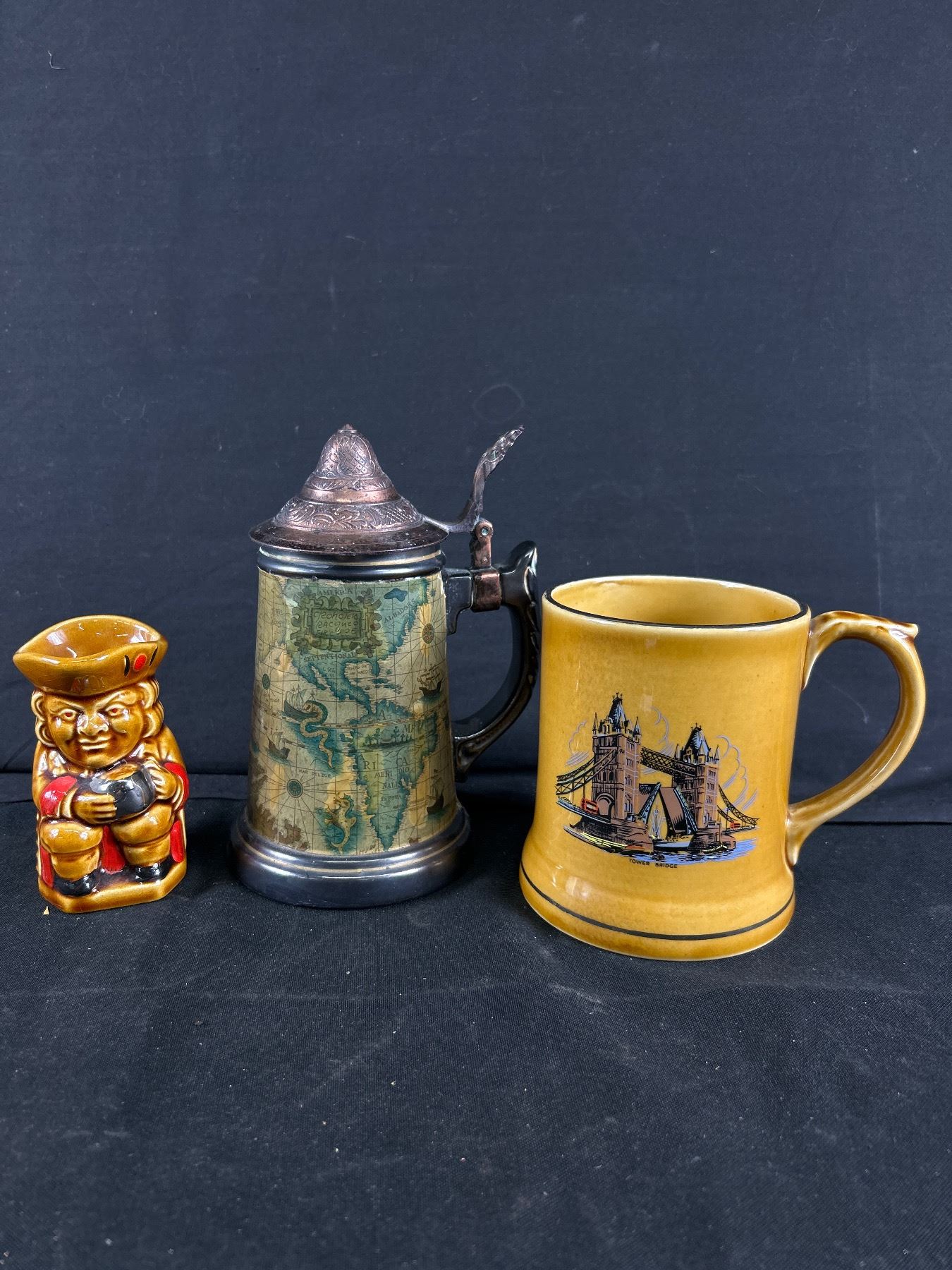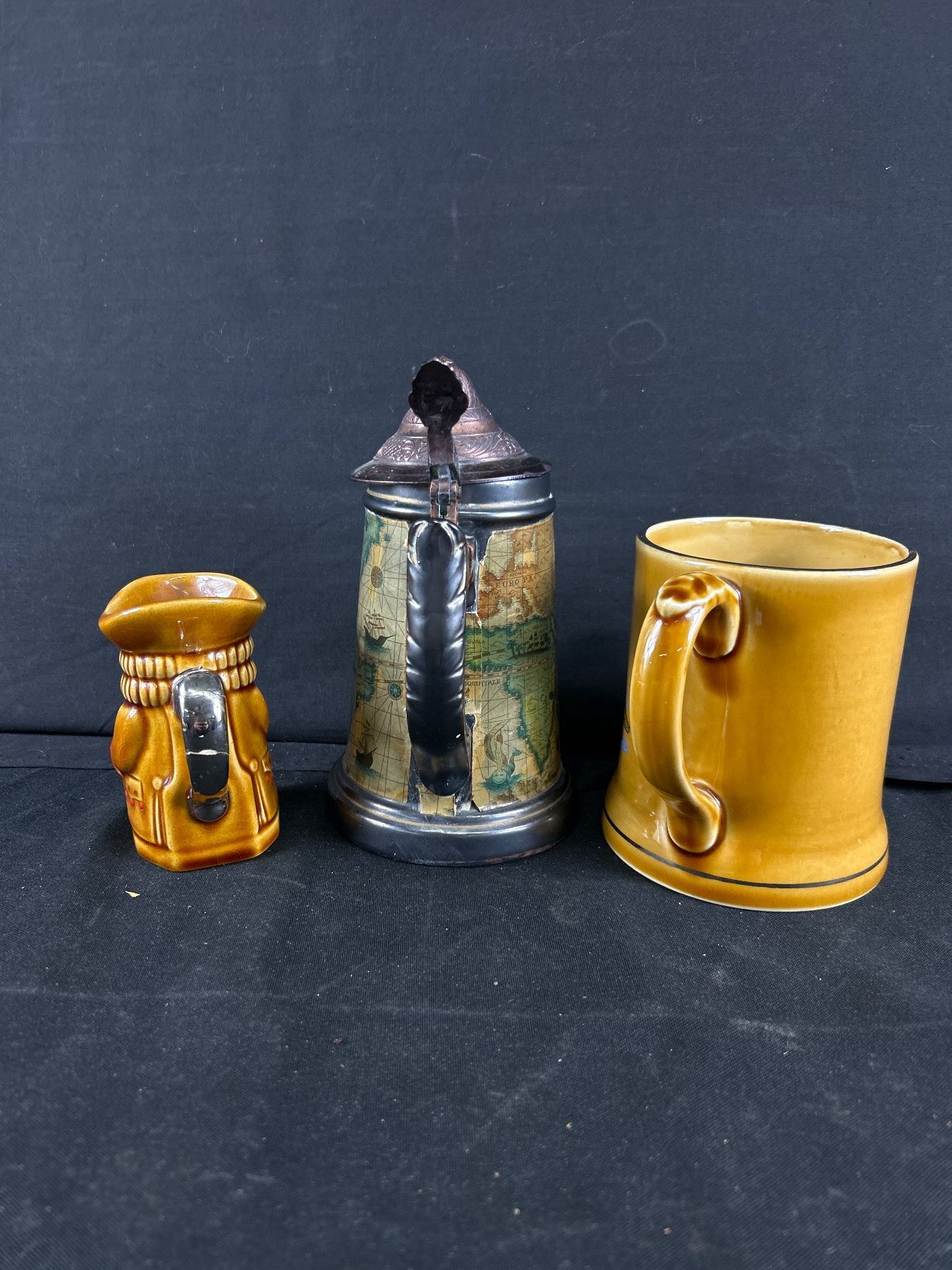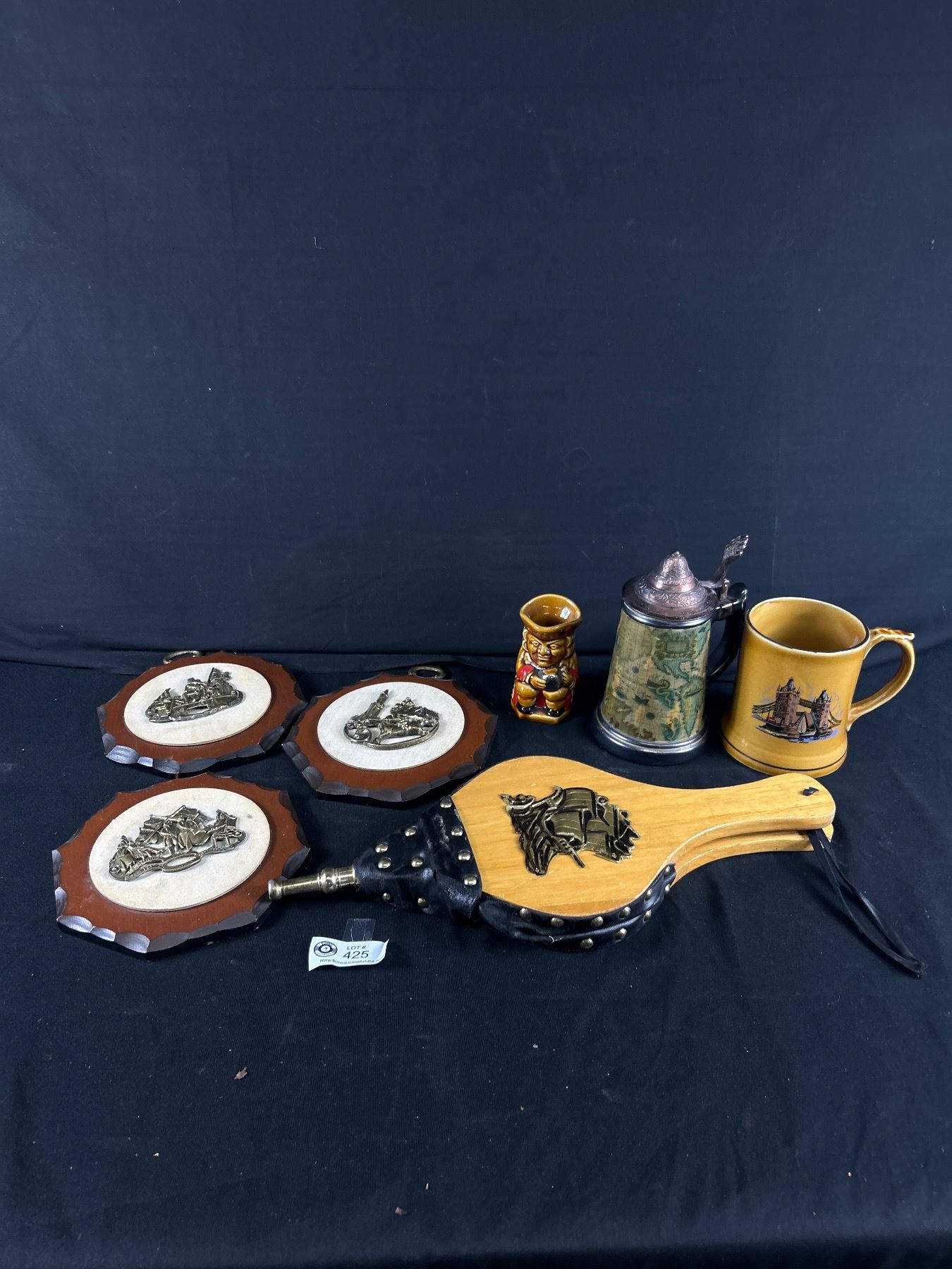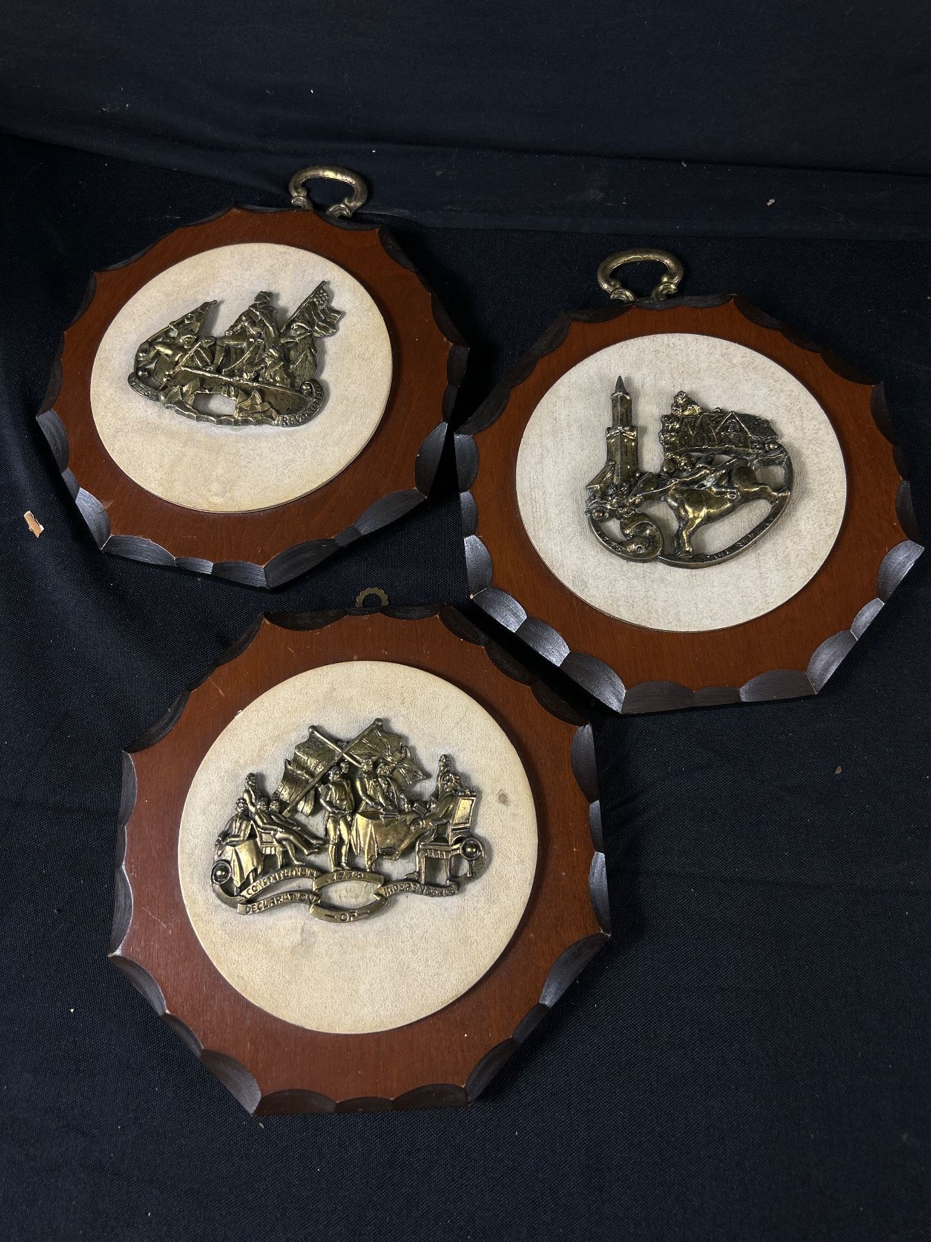 Vintage Lot - 3 1776 Commemorative U.S. Plaques, Wood w/ Leather & Brass Accents & 3 Mugs