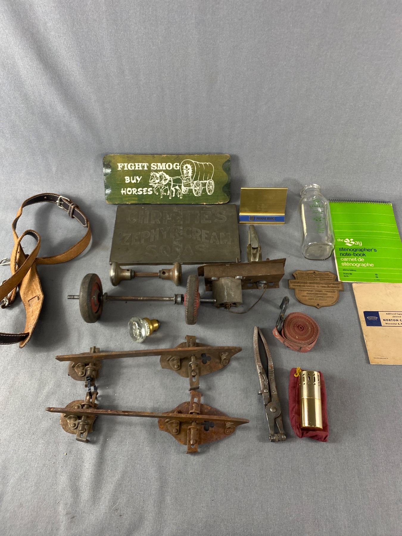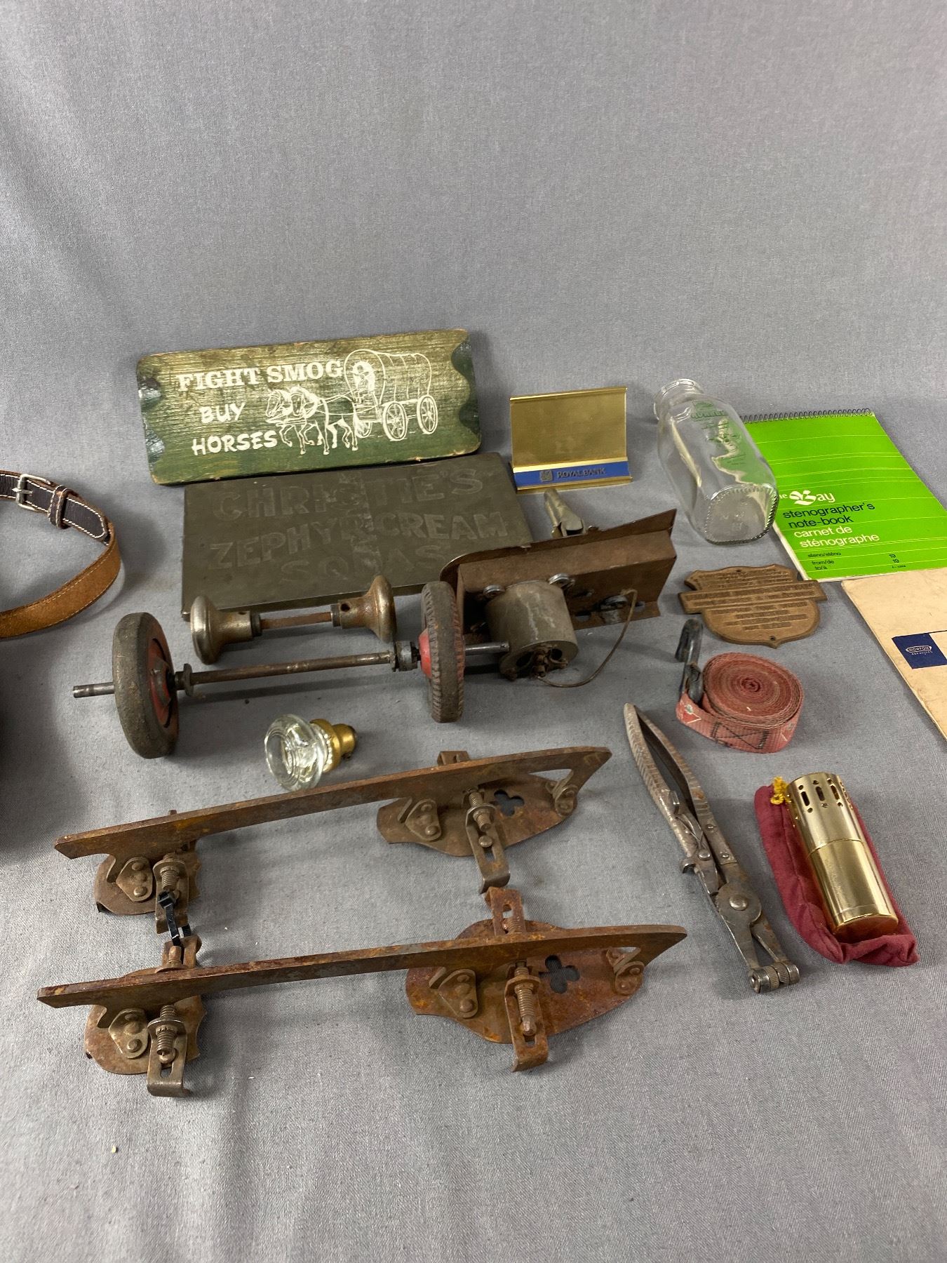 Vintage Lot - Bolt On Ice Skates, Door Knobs, Toy Wheels & More