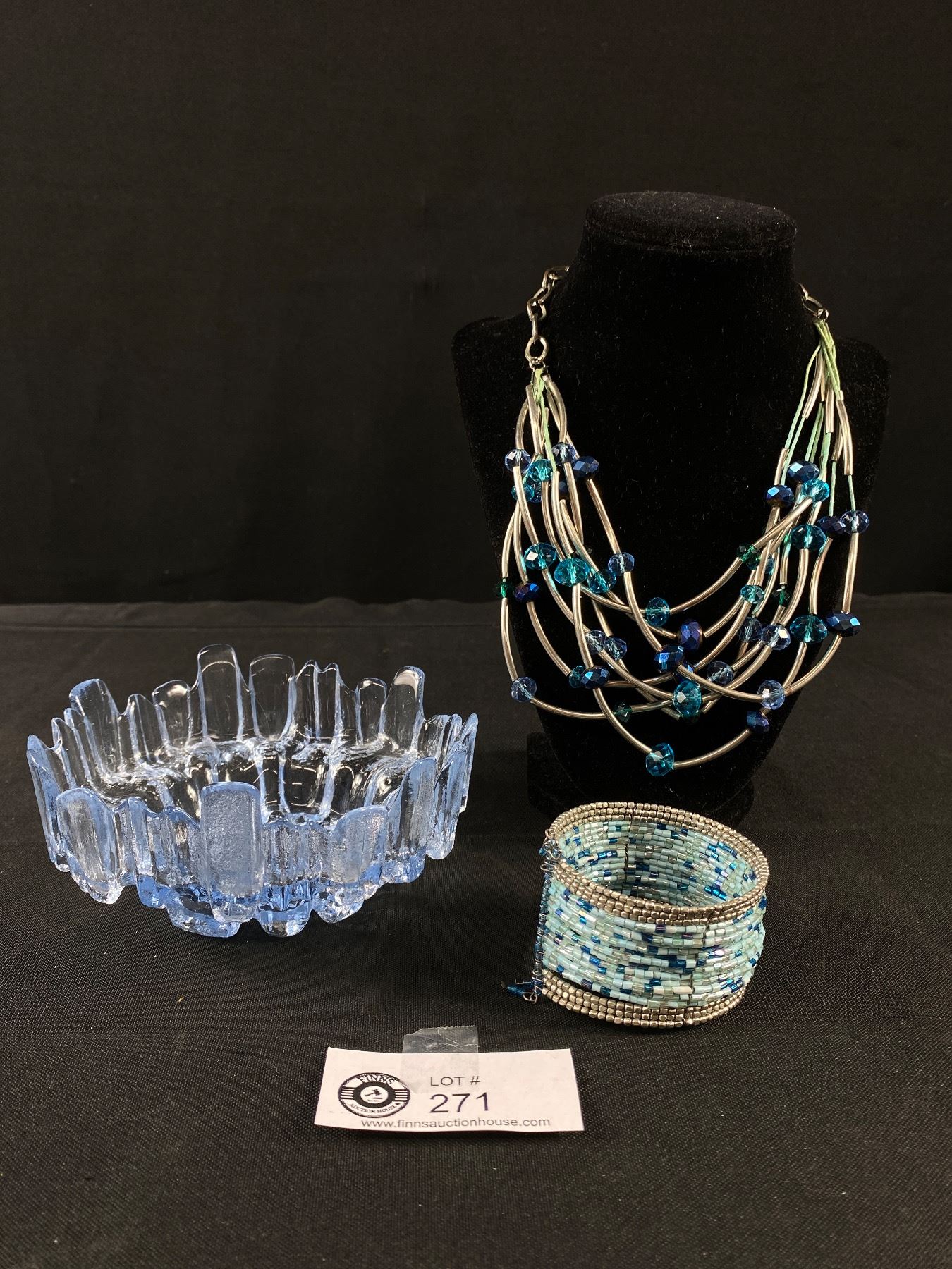 Vintage Lot - Glass Bowl & Costume Jewelry
