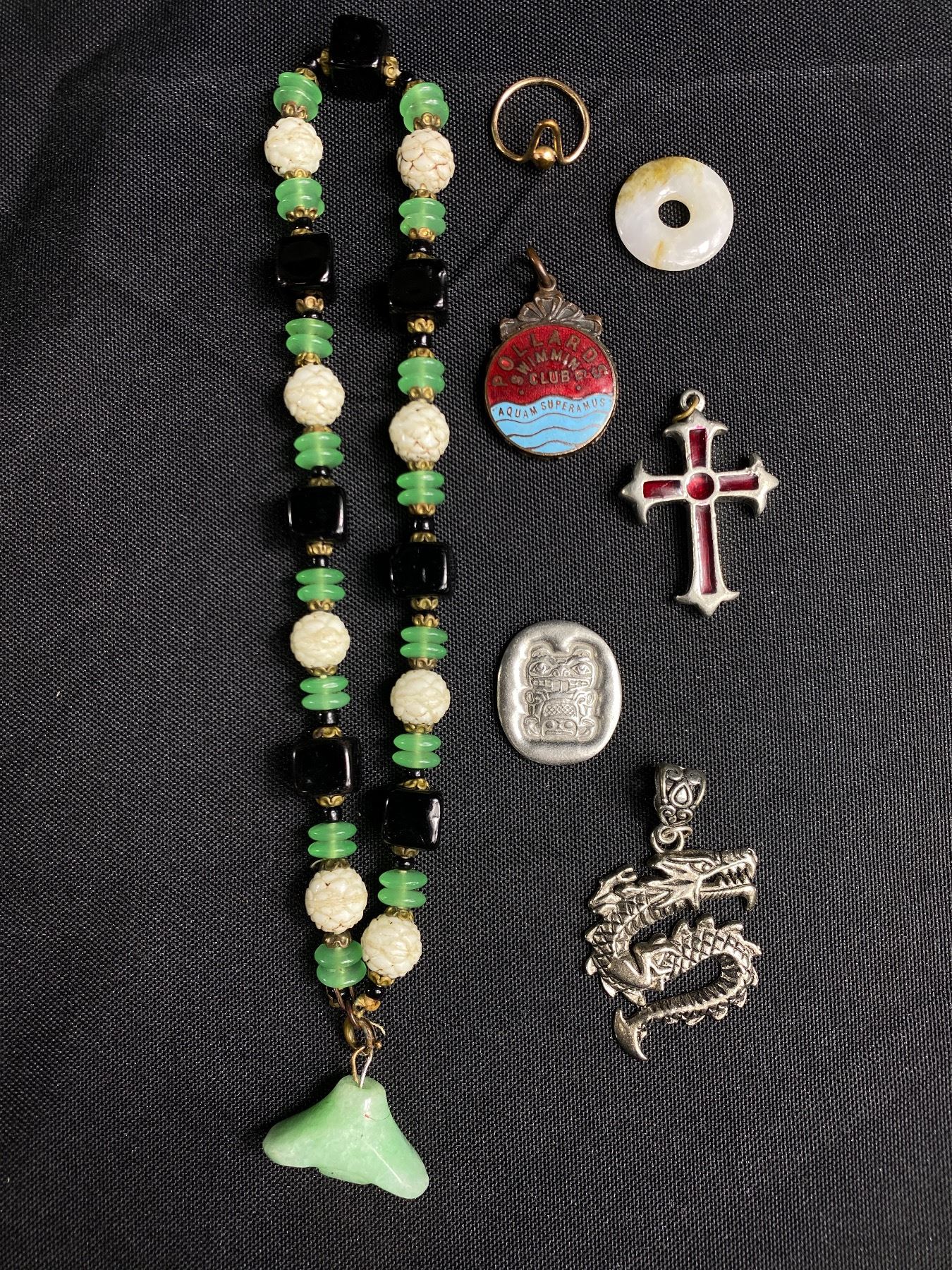 Vintage Lot, Greeen Bead Necklace with Jade Polt with 4 Misc Vintage Patts, Jade Disc and Ring