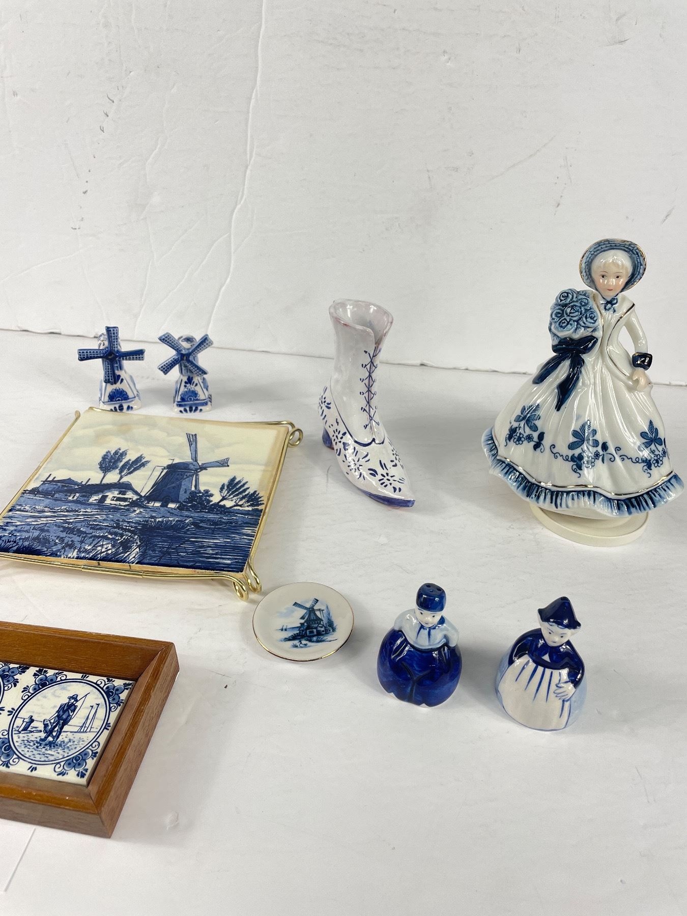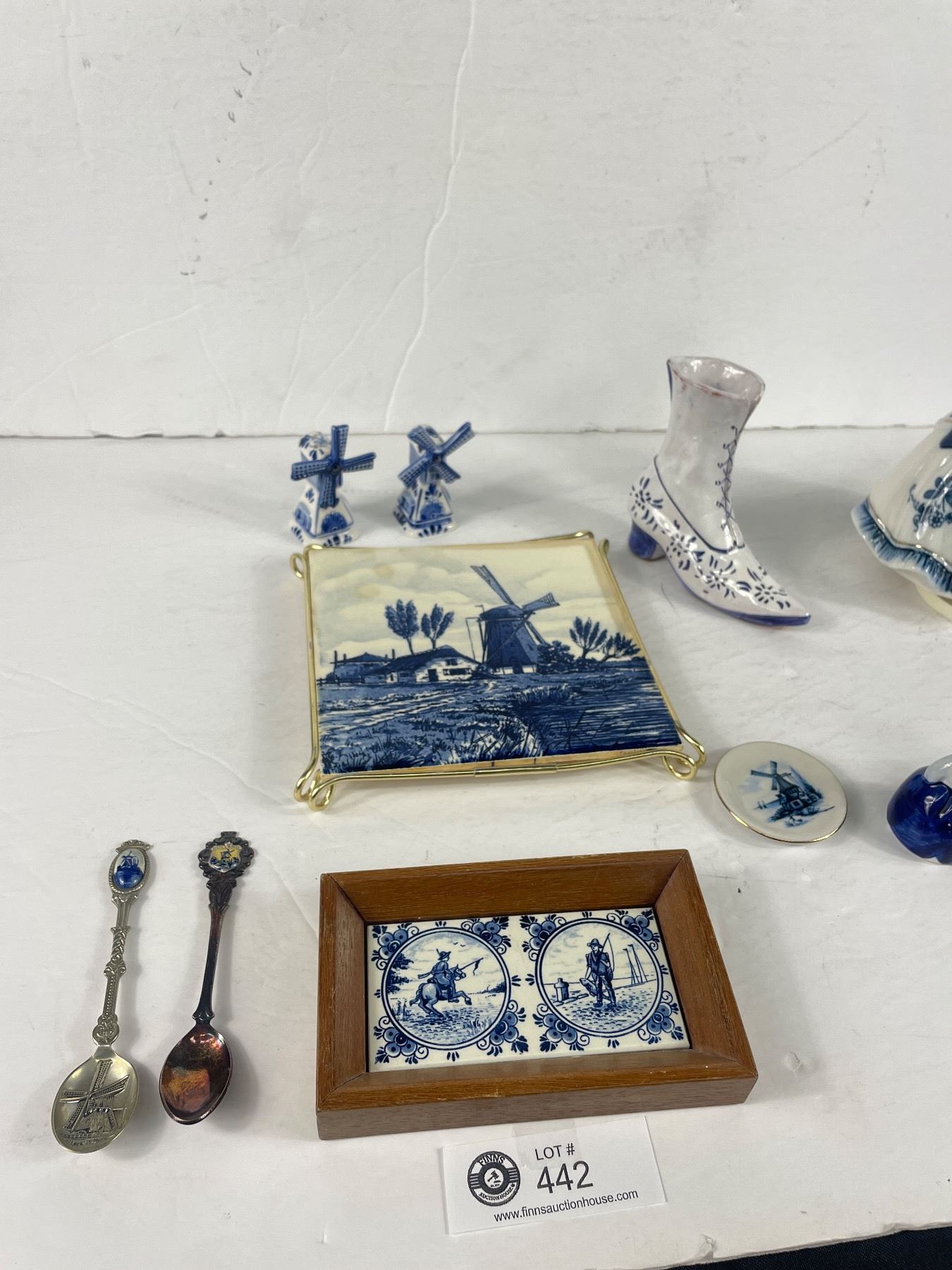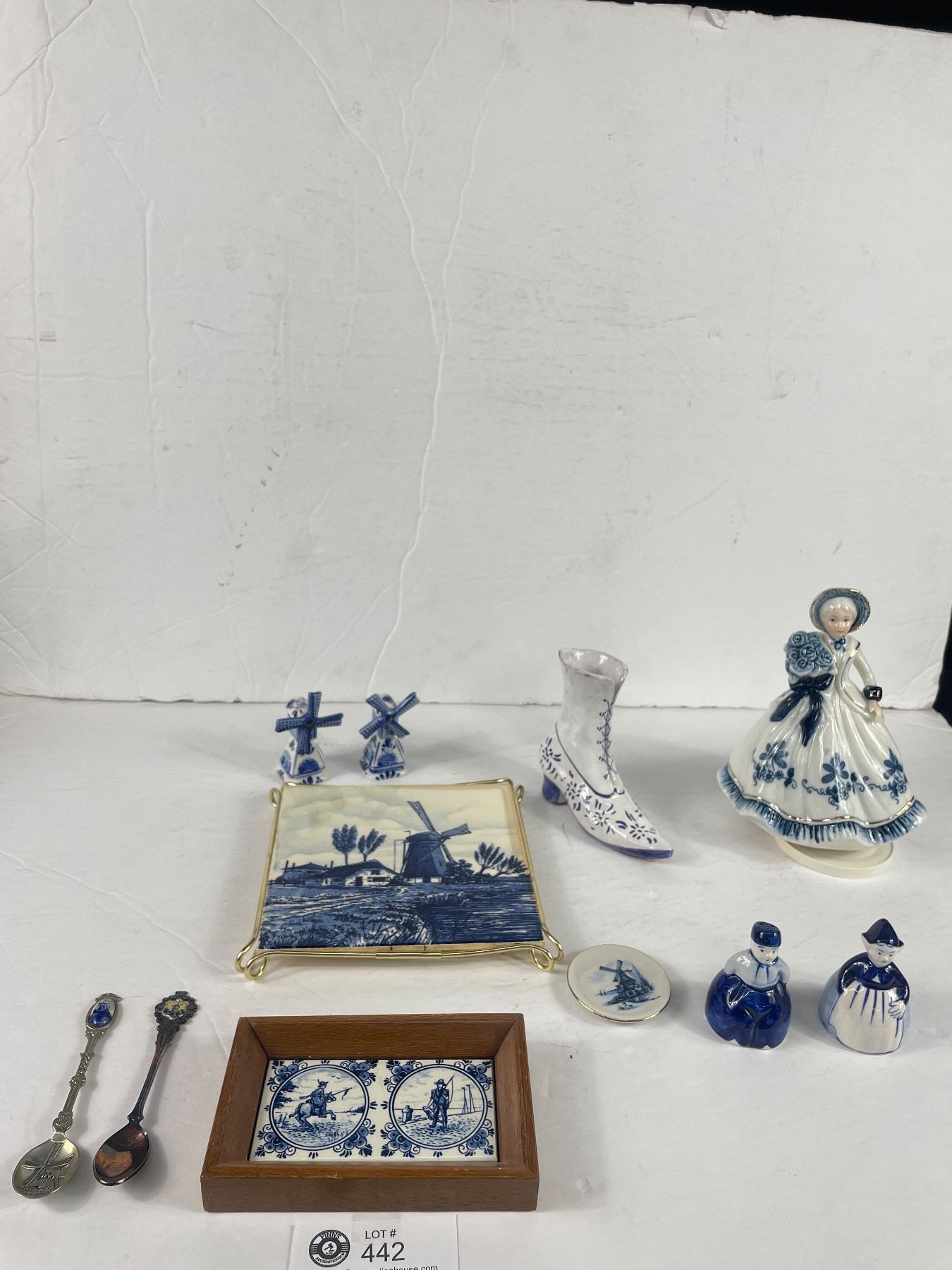 Vintage Lot Of Delft Blue, Etc Collectibles, Salt & Pepper Shakers, Spoons, Music Box etc
