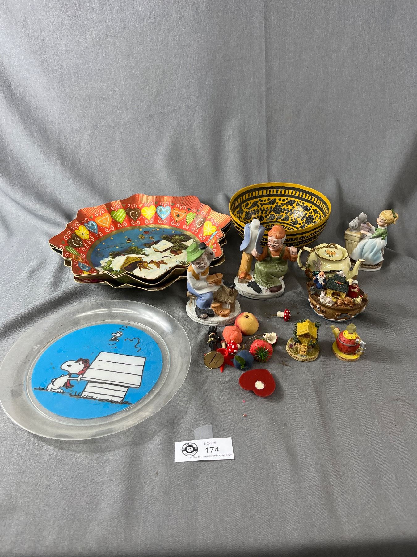 Vintage Lot - Paper Christmas Trays, Mini Dragon Fly Teapot, Tailor Figurines & More