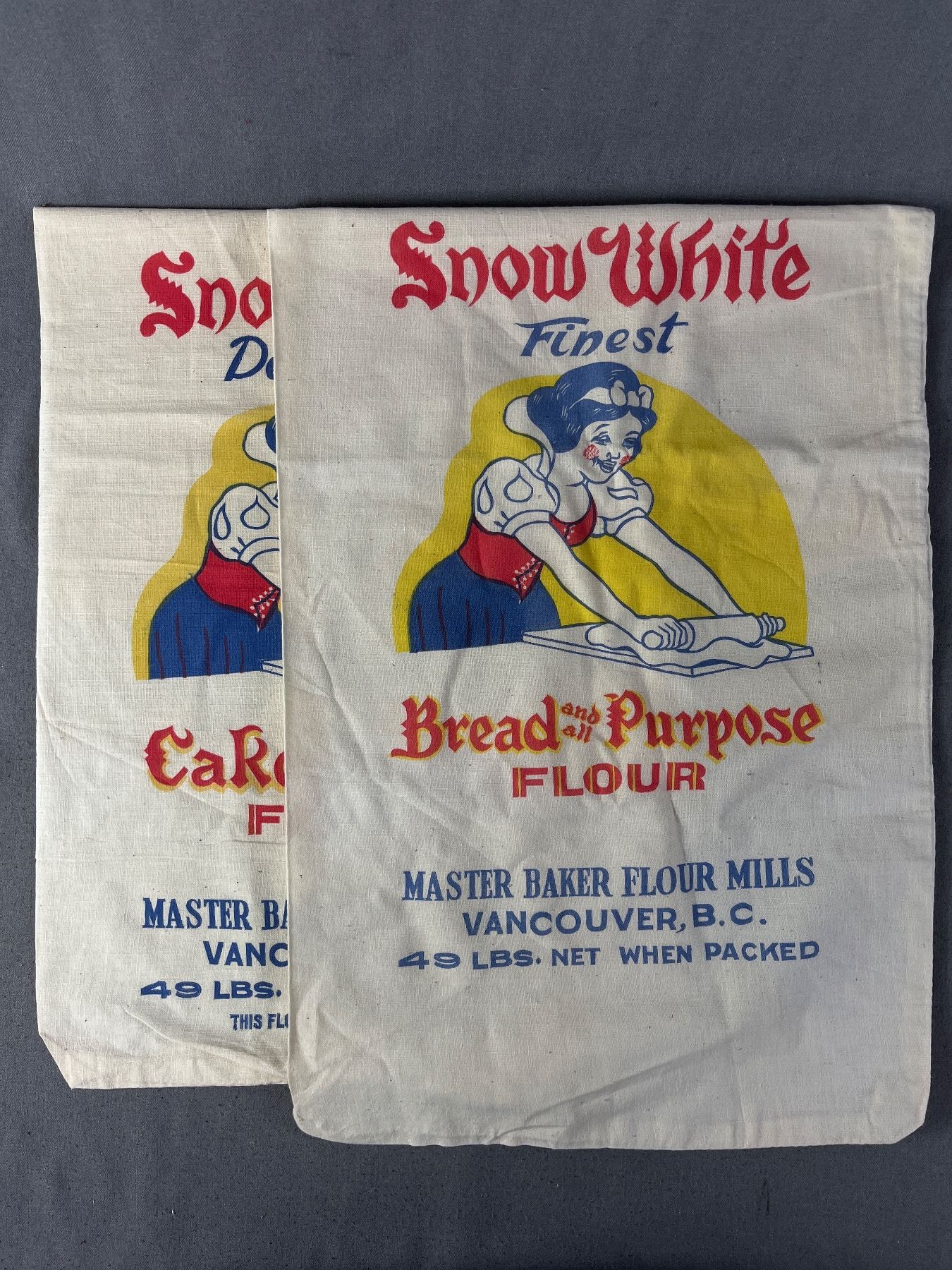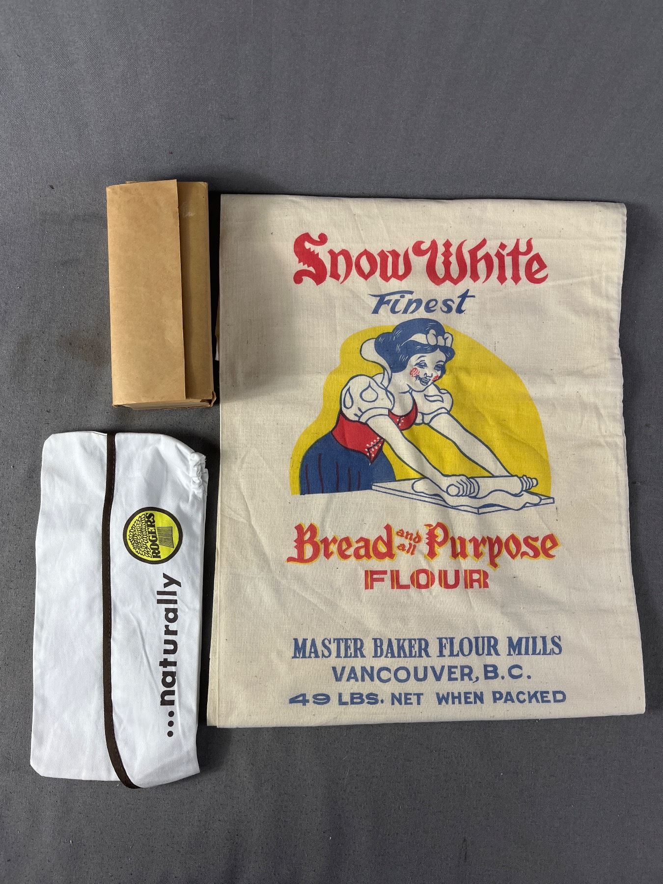 Vintage Lot - Vancouver BC Master Baker Flour Mills Sacks, Rogers Cap/Hat & Velvet Ice Cream Stickers
