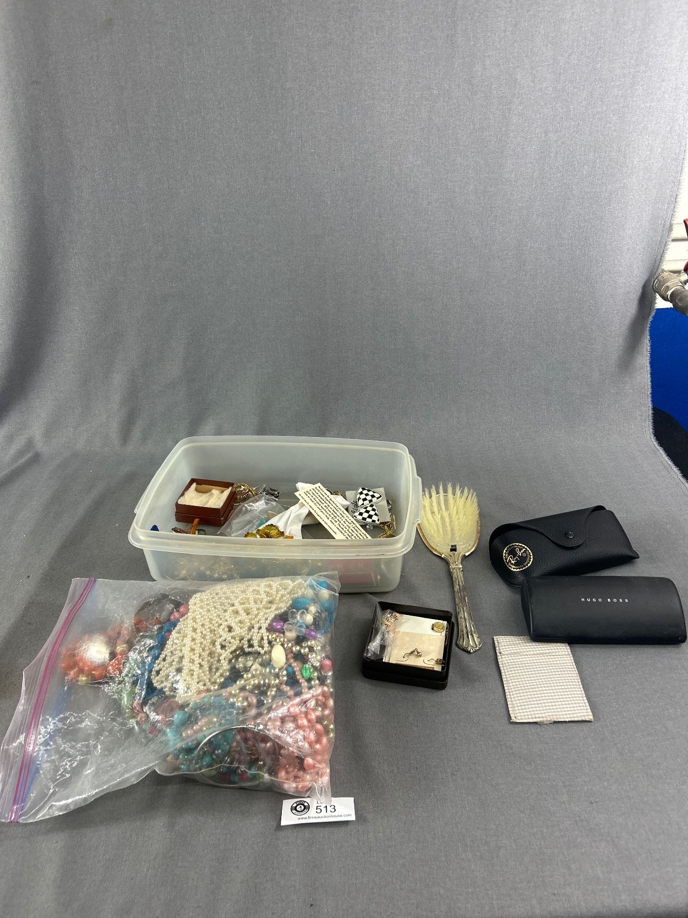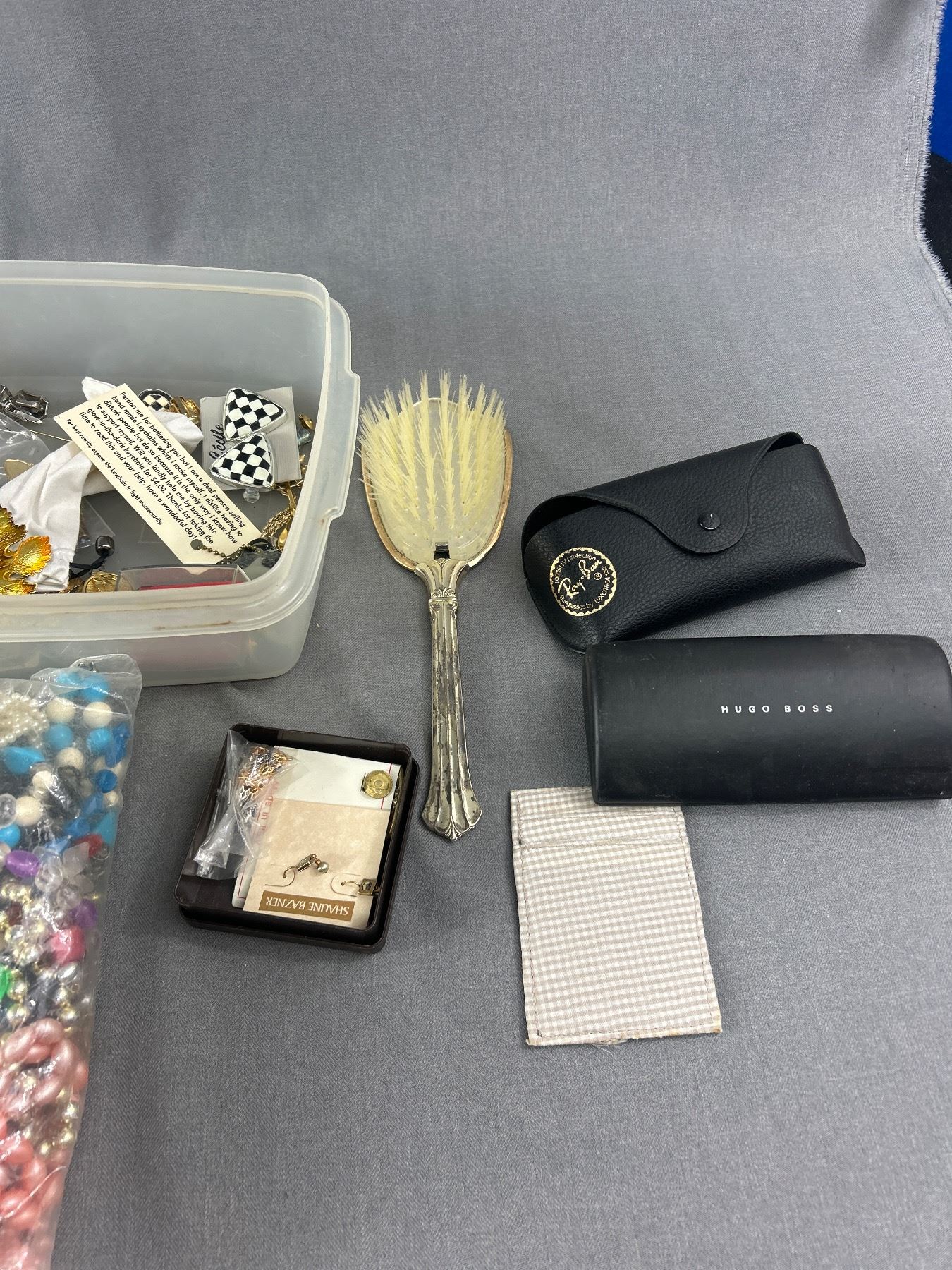 Vintage Lot of Costume Jewelry, Hairbrush etc