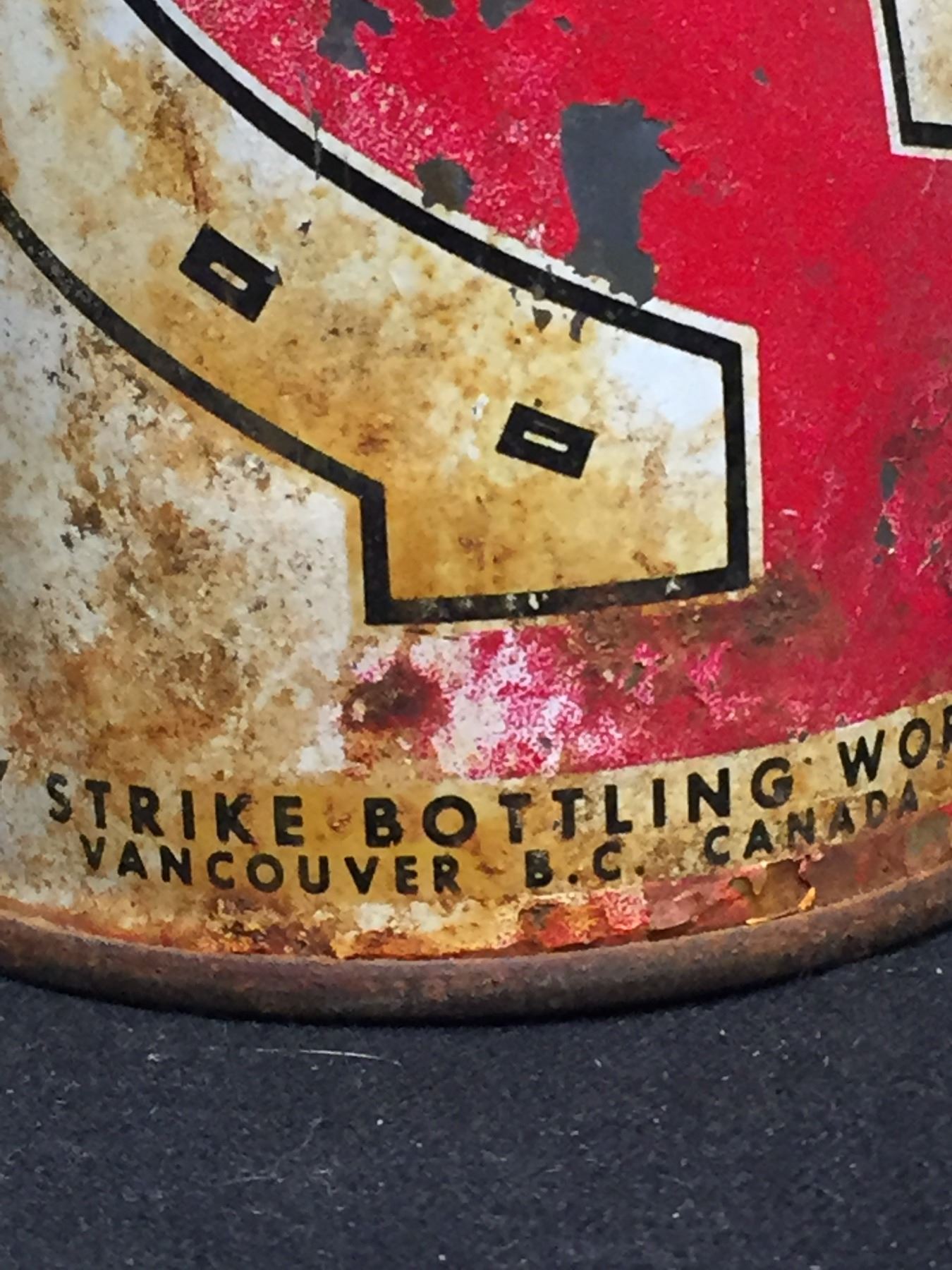 Vintage Lucky Strike Cola Pop Can. Lucky Strike Bottling Works Limited, Vancouver, BC Canada