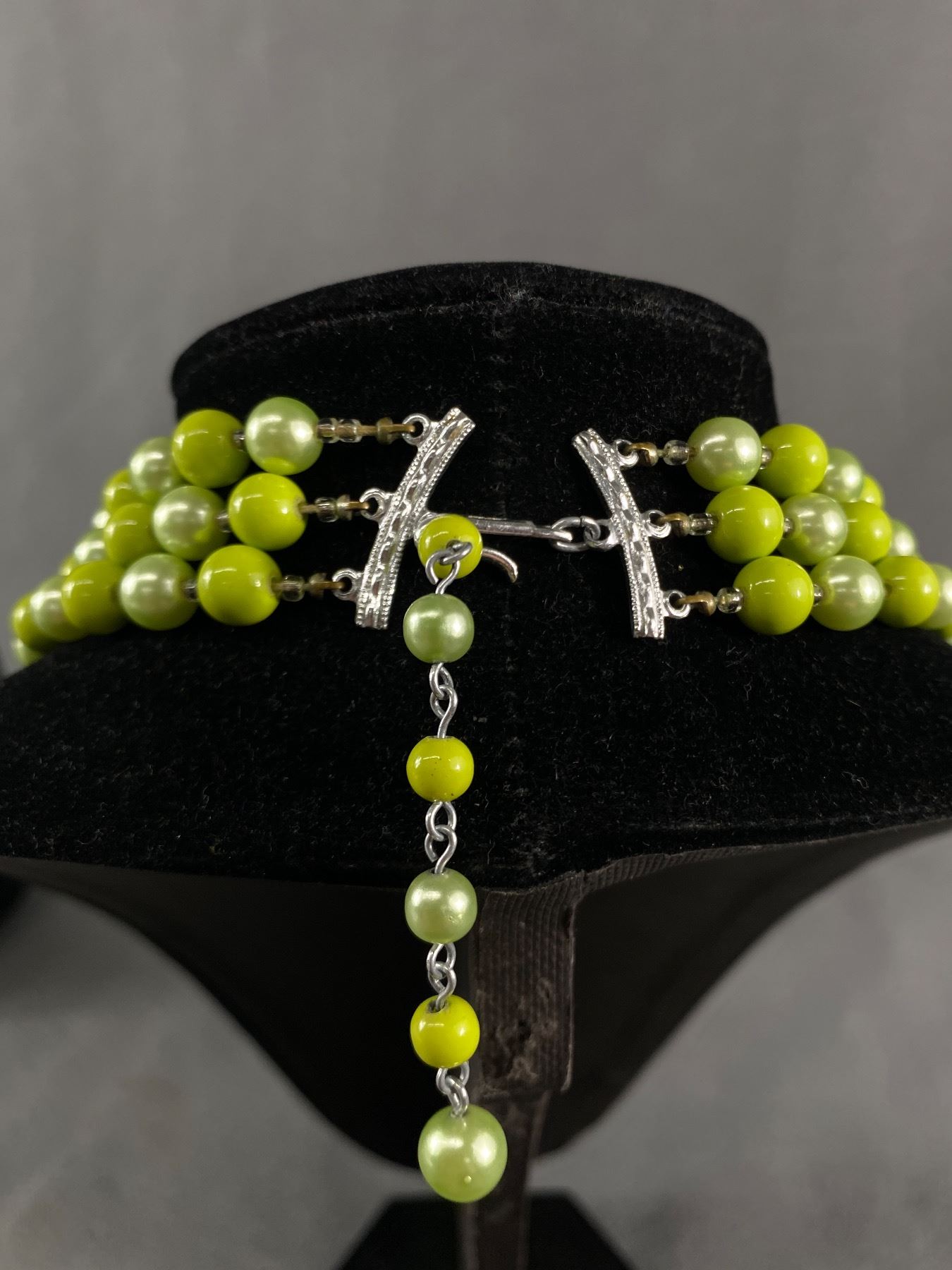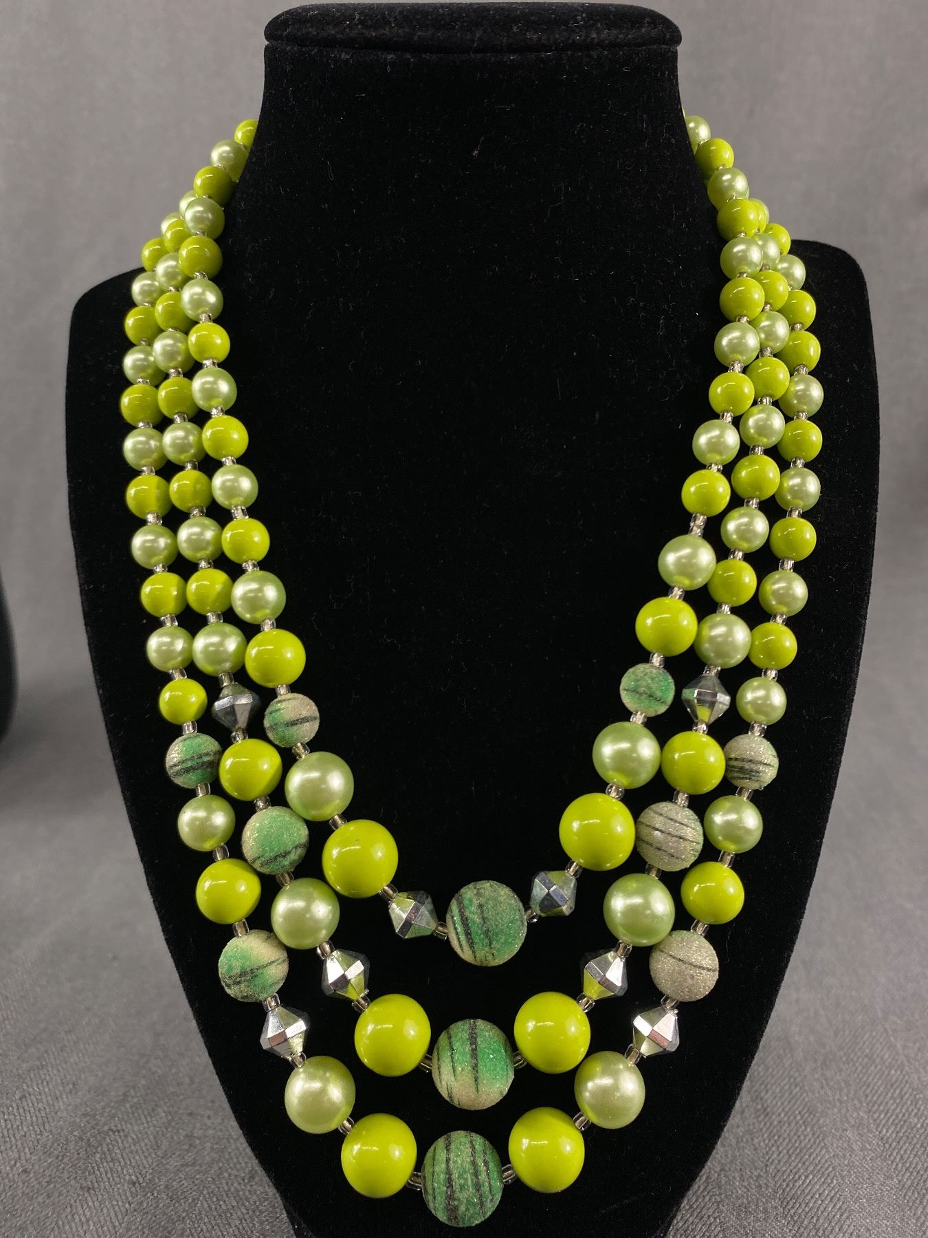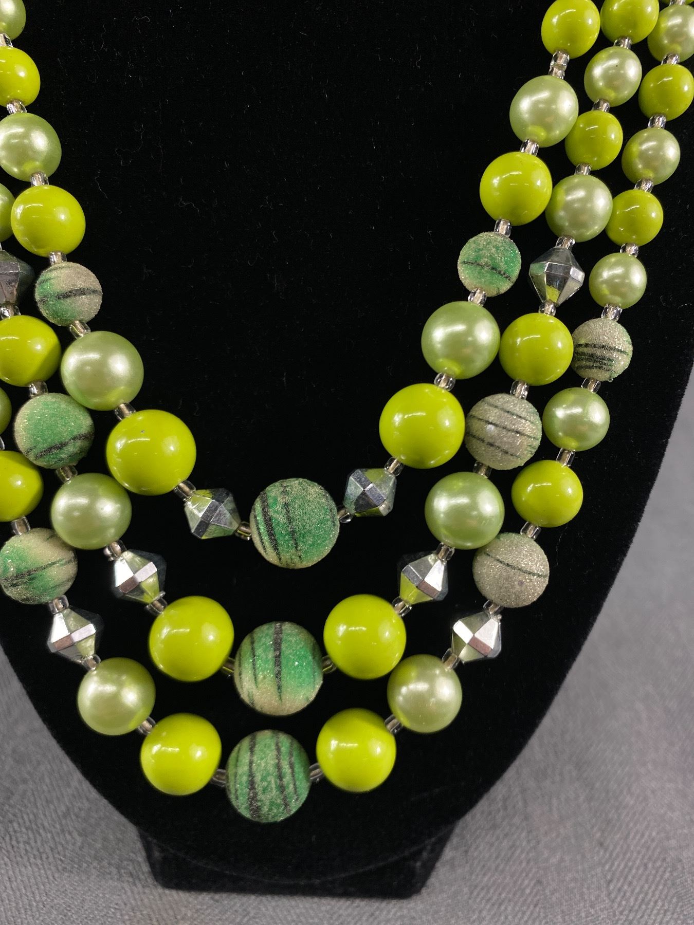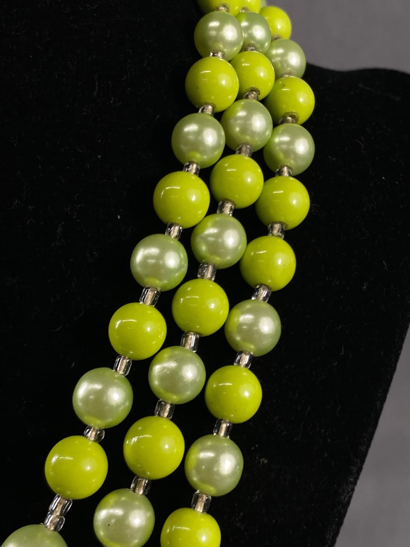 Vintage Made in Japan 3 Strand Multicoloured Pastel Greens Necklace