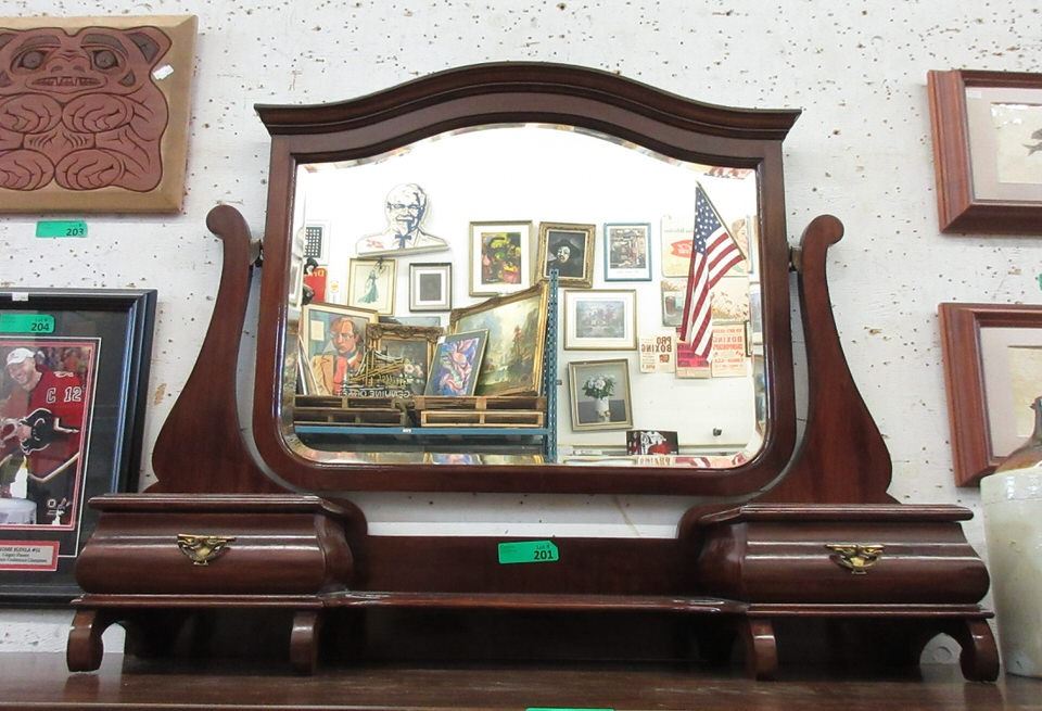 Beveled glass. 2 Drawers. 9" x 32" x 38".