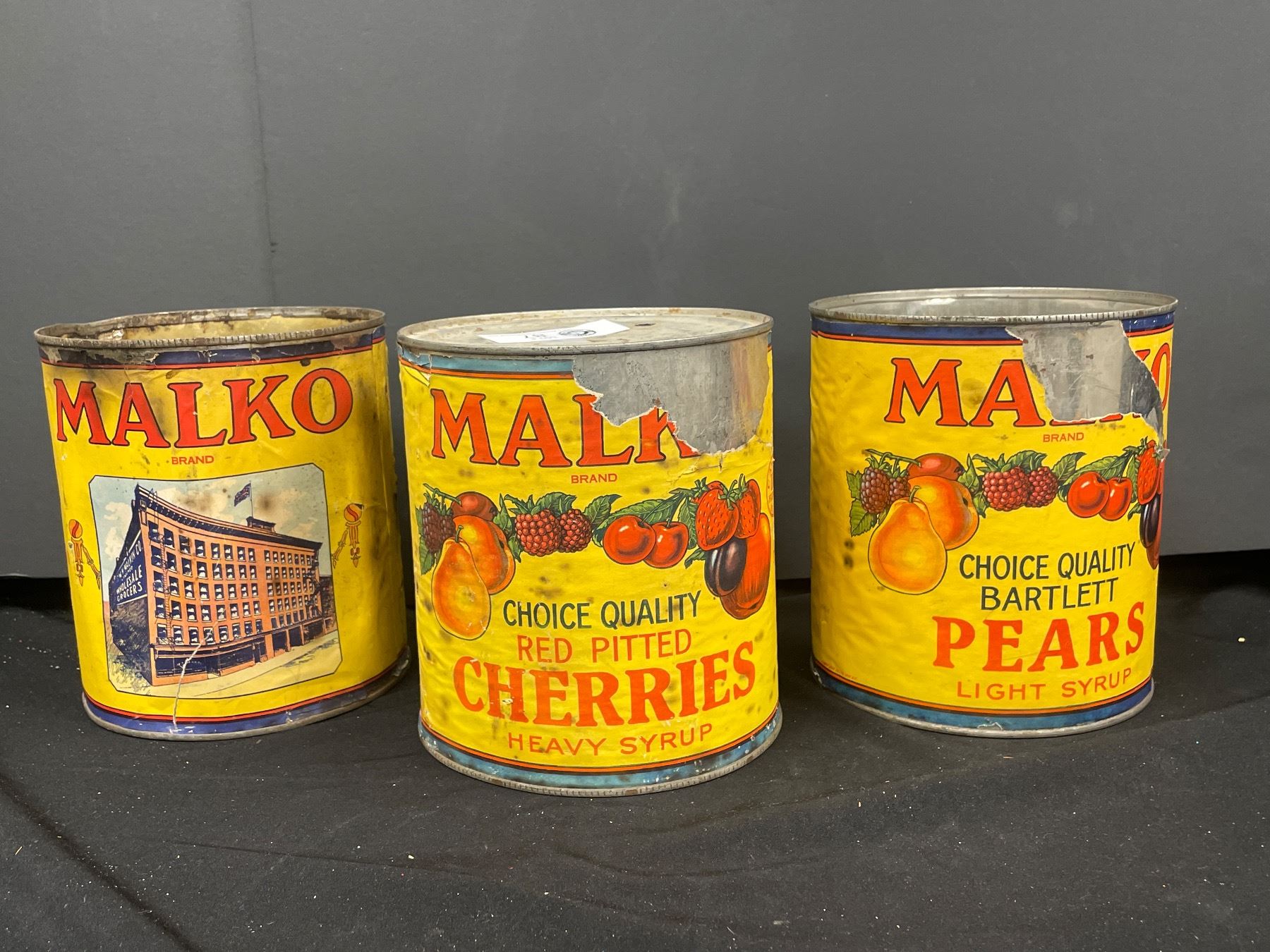 Vintage Malko Brand Fruit Malkin Co. Vancouver tin Cans