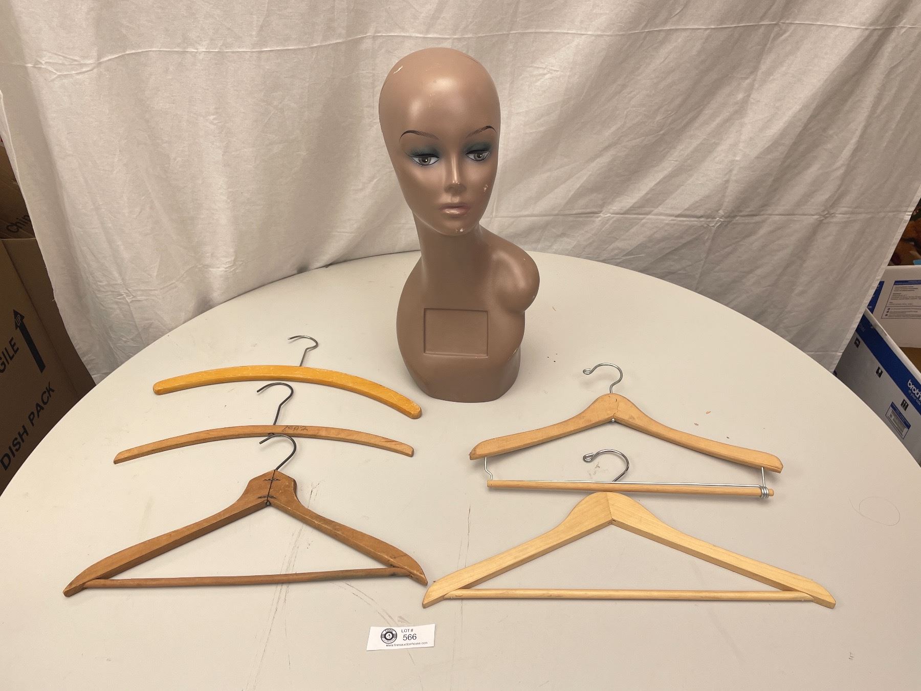 Vintage Mannequins Head with 5 Vintage Wooden Hangers