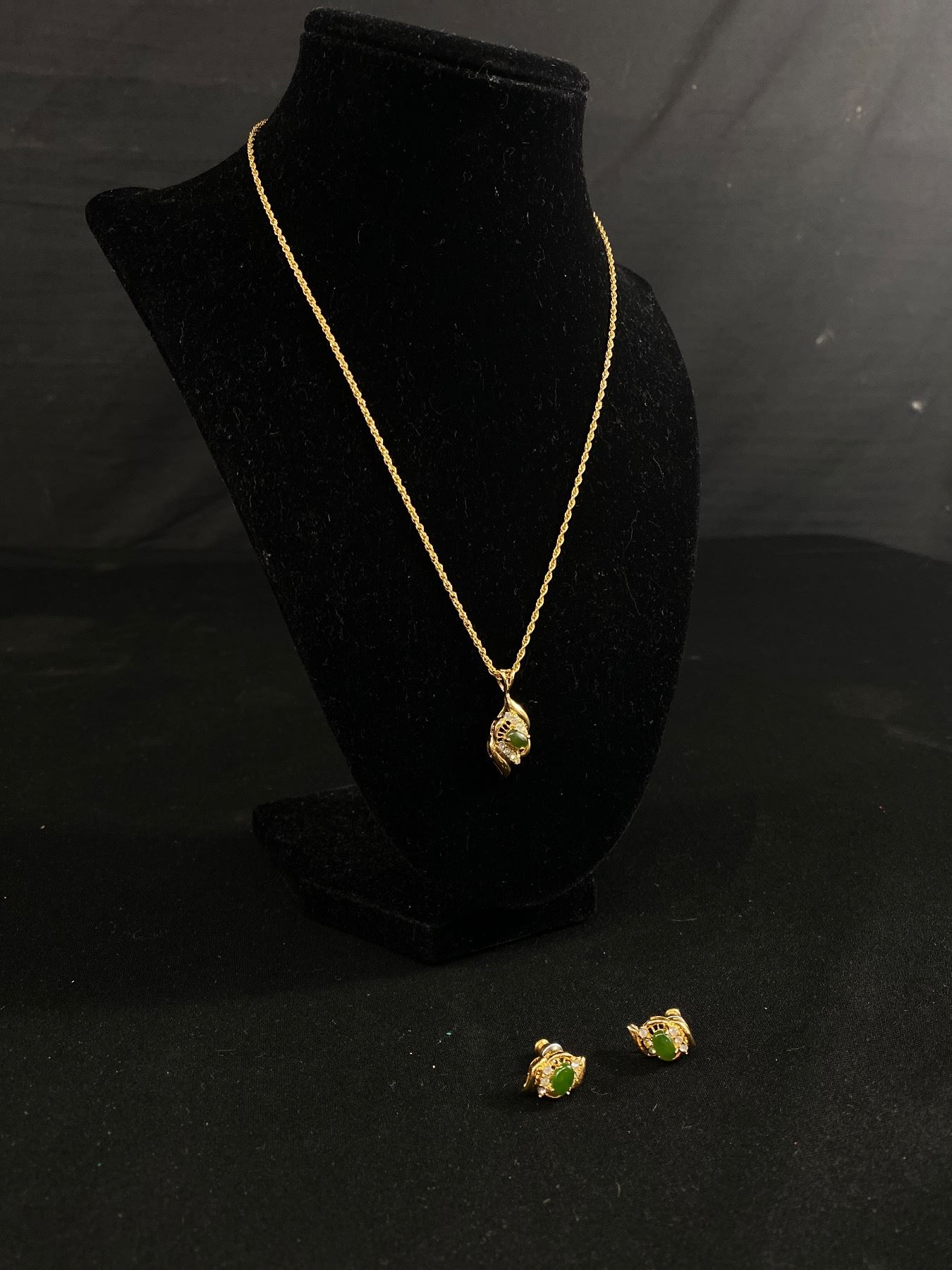 Vintage Mappin's Jewellers Jade Stone Necklace & Matching Earrings Set In Original Case