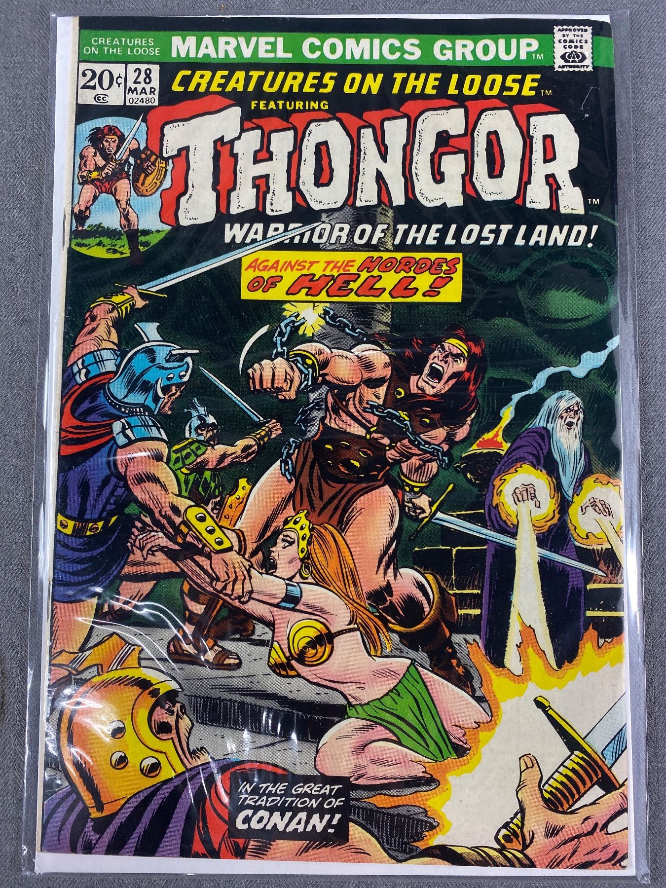 Vintage Marvel Comics "Creatures On The Loose Featuring Thongor:Warrior Of The Lost Land" No. 28. On Board In Bag